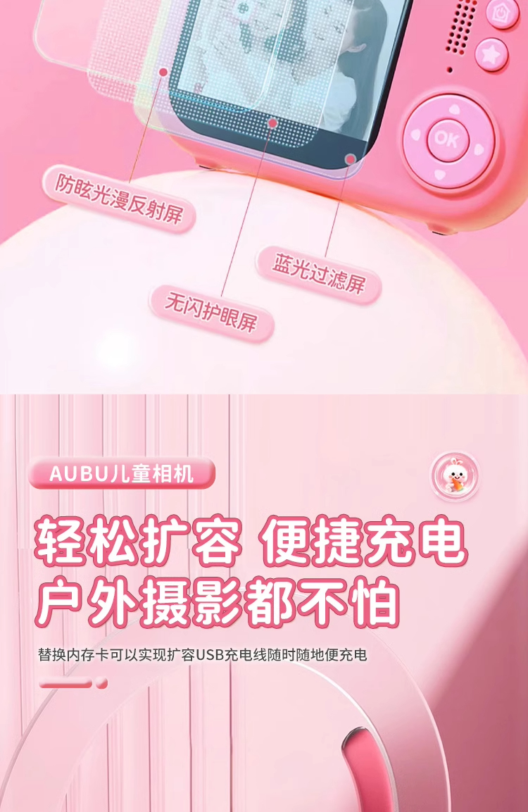 AUBU儿童相机卡通玩具多功能可拍照高清录像数码相机官方旗舰店