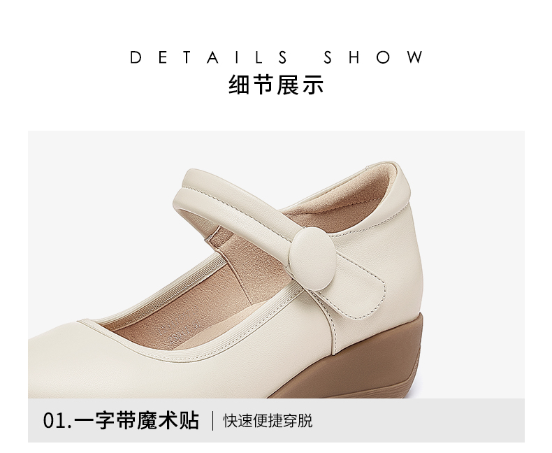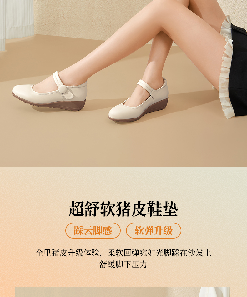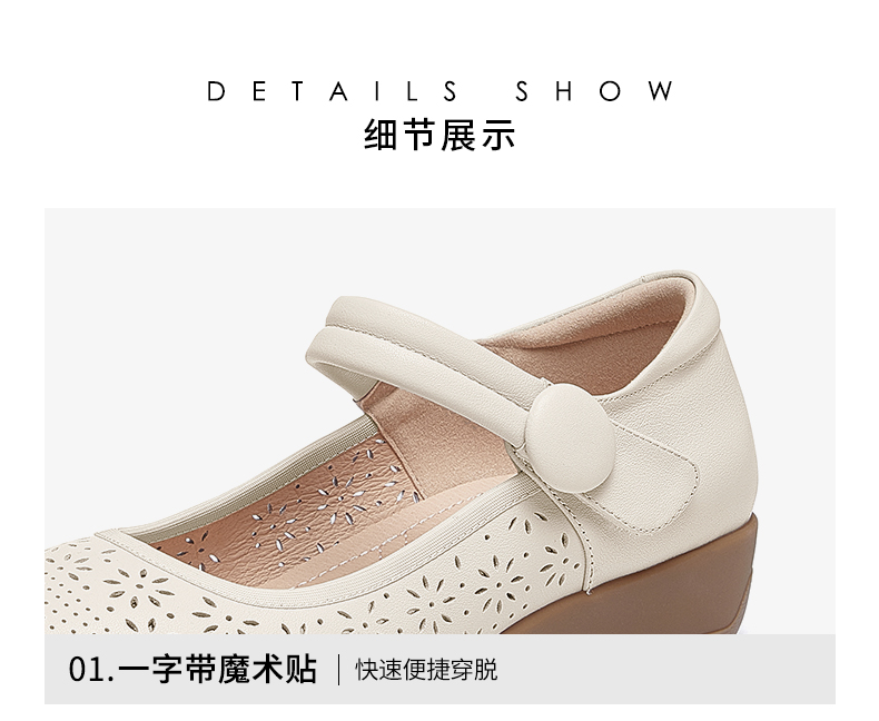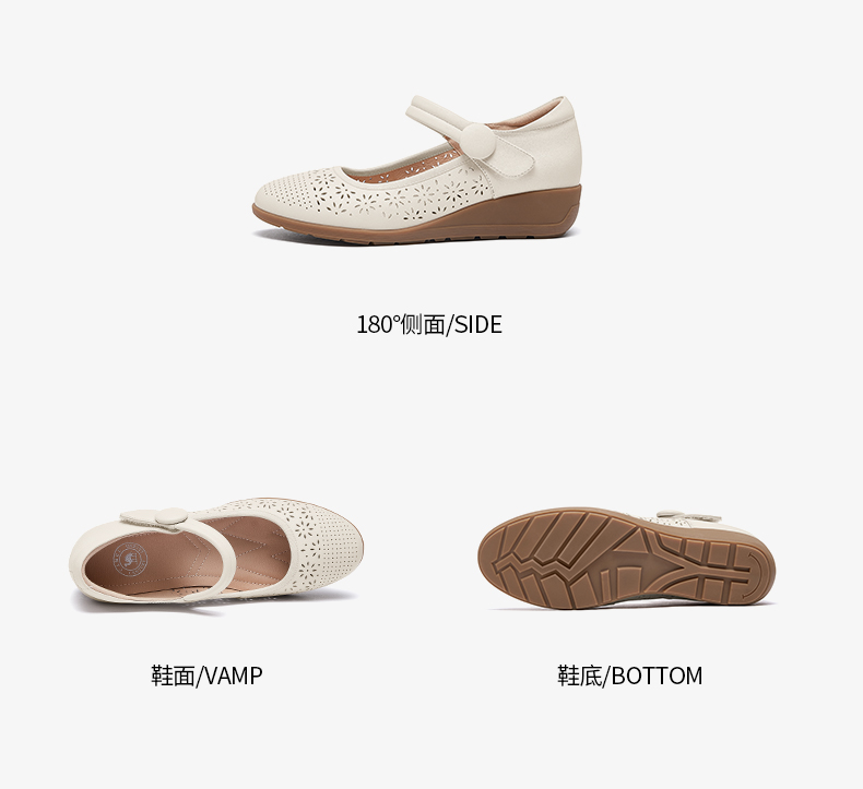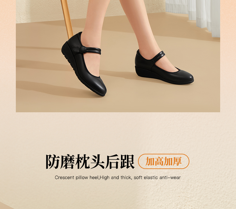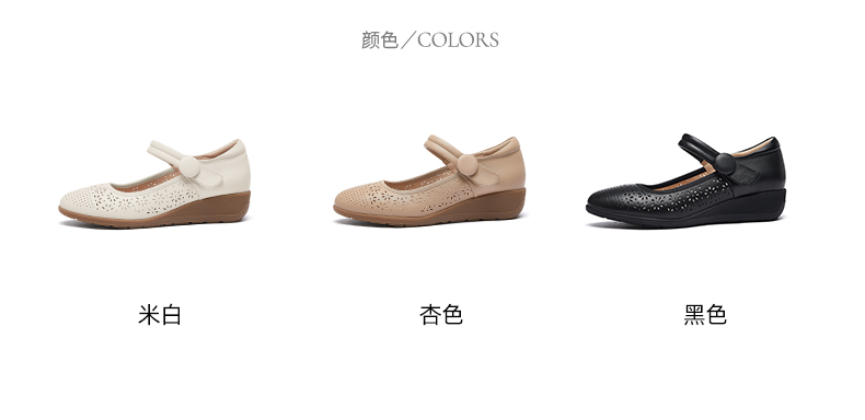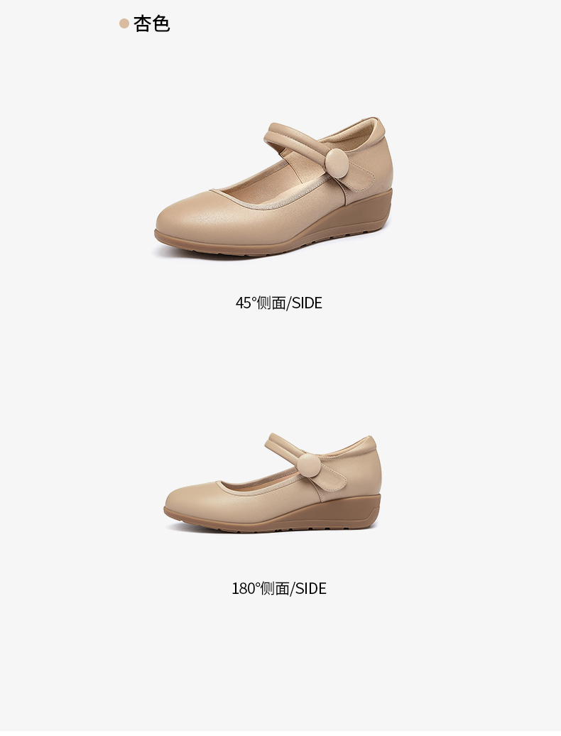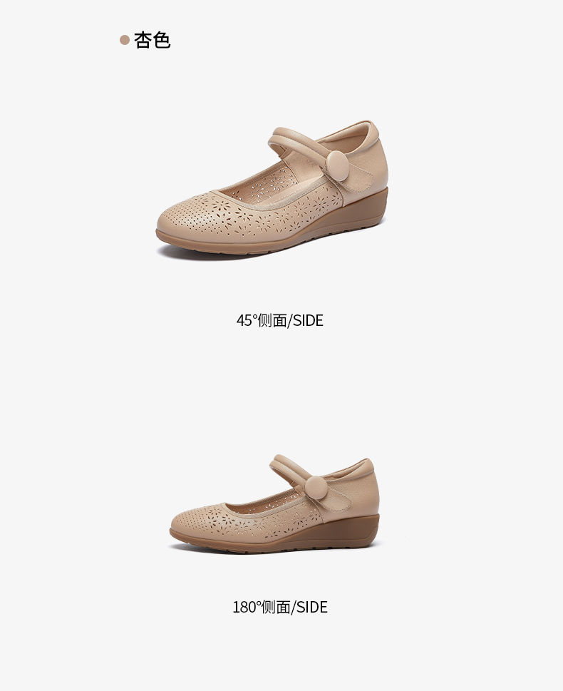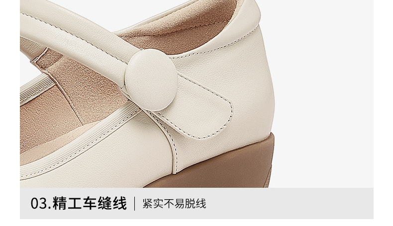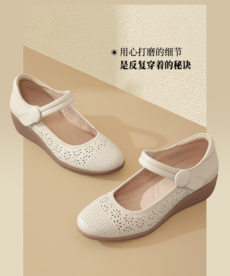 骆驼女鞋2025春秋季牛皮玛丽珍妈妈鞋坡跟镂空真皮单鞋女小皮鞋