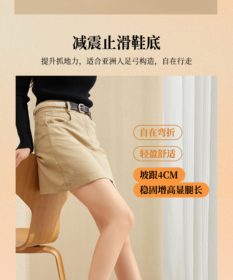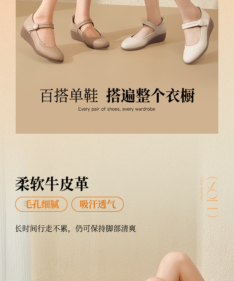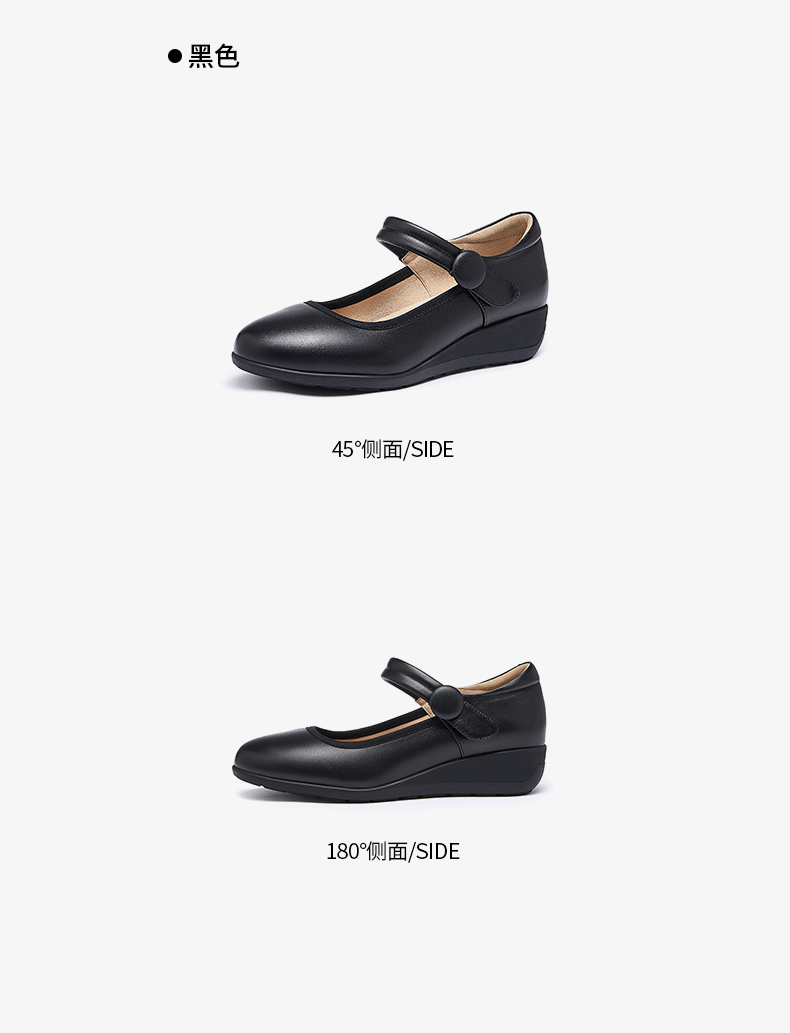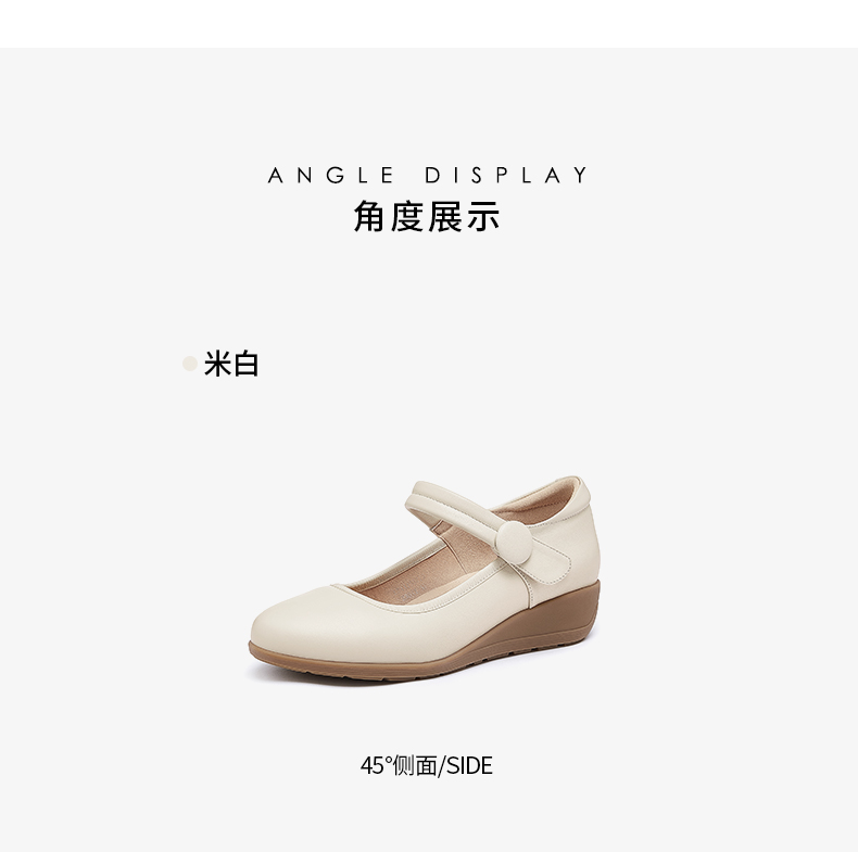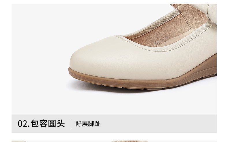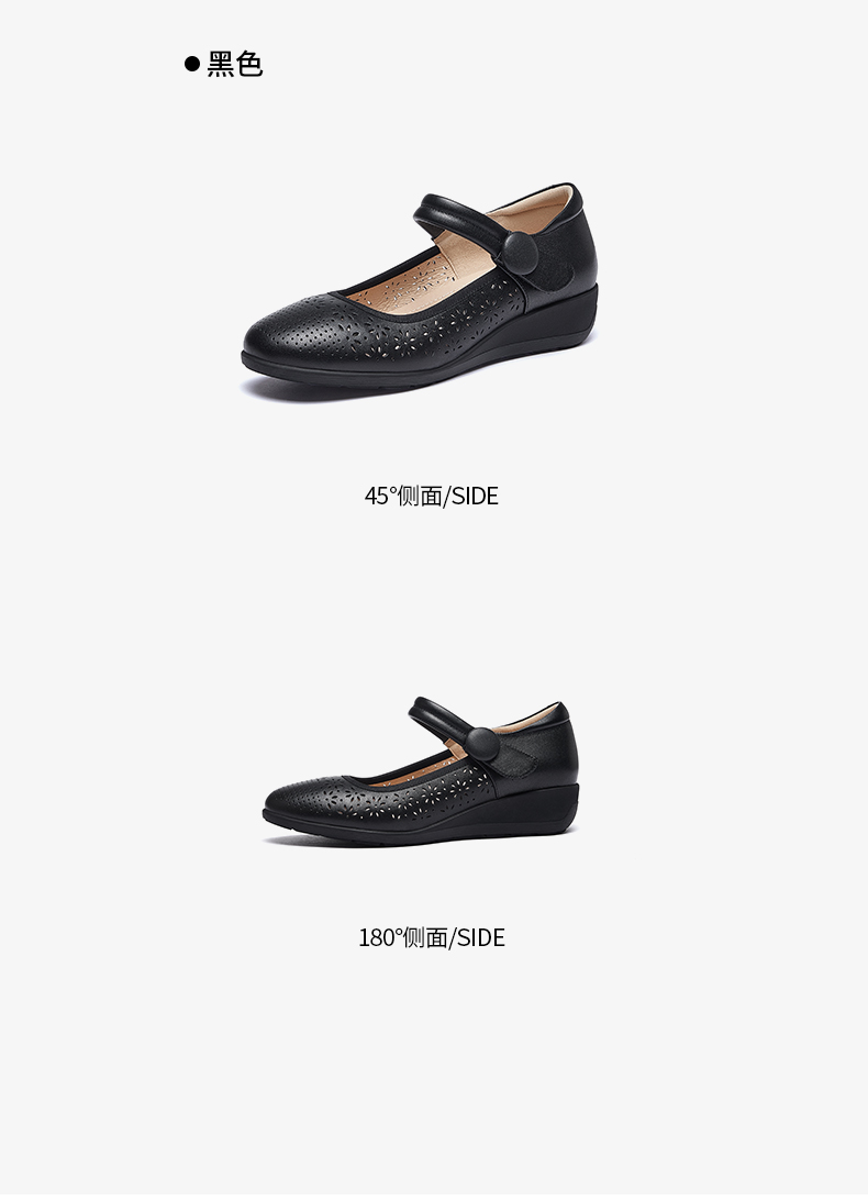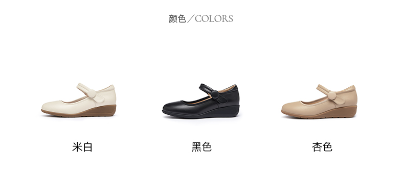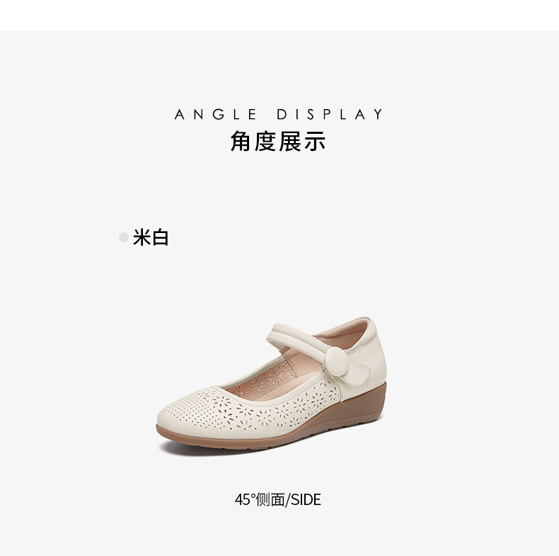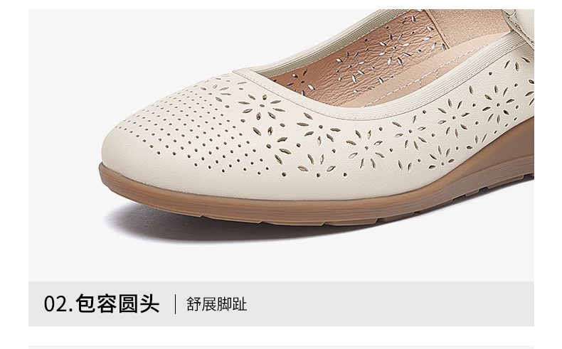 骆驼女鞋2025春秋季牛皮玛丽珍妈妈鞋坡跟镂空真皮单鞋女小皮鞋