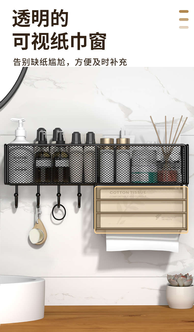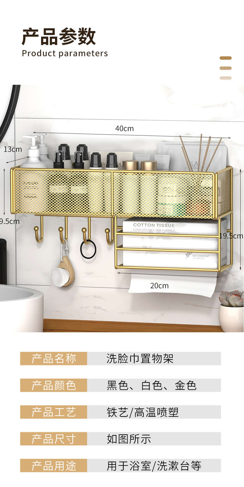 壁挂式洗脸巾收纳盒免打孔墙上卫生间收纳盒一次性洁面纸巾置物架