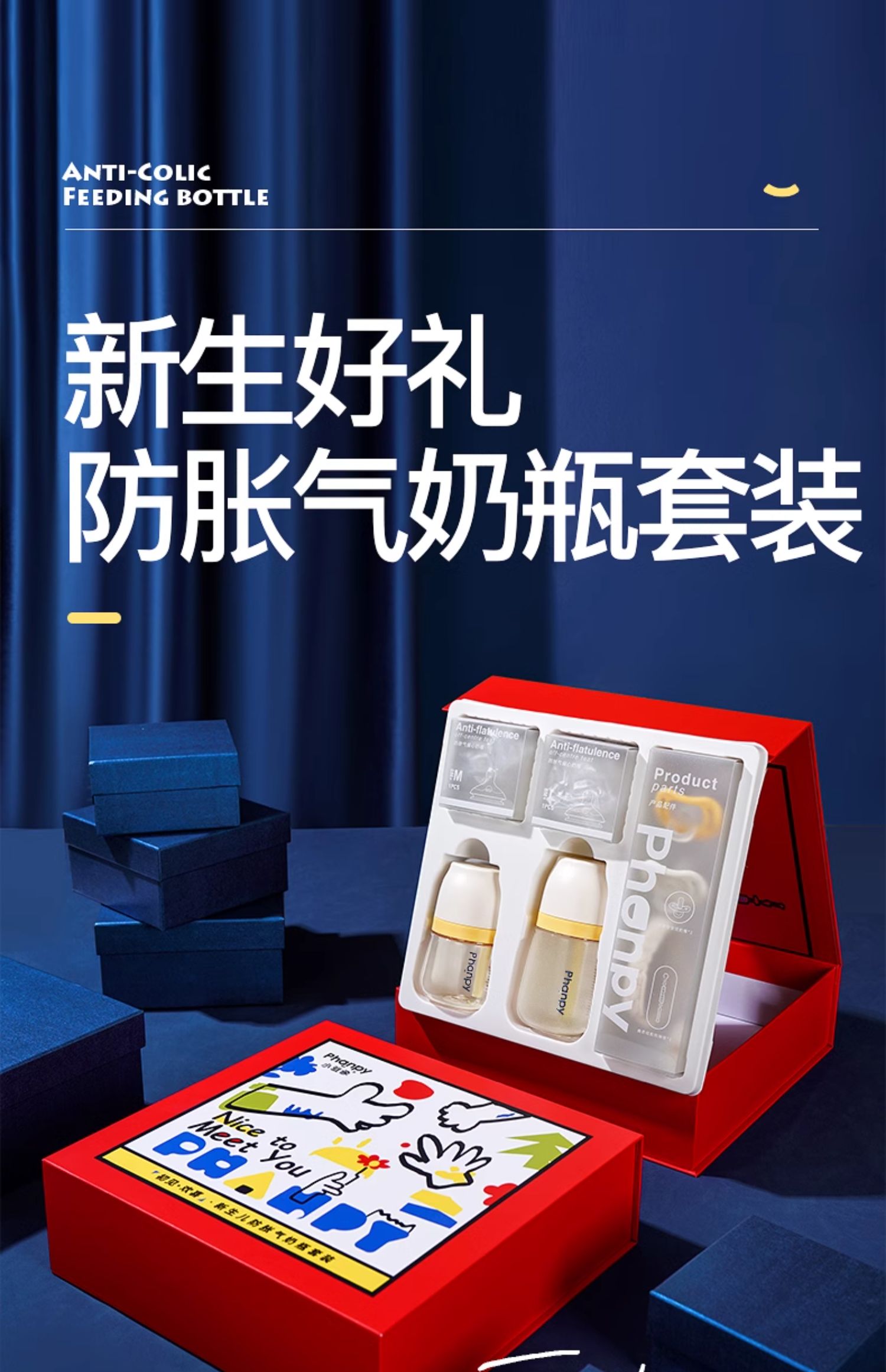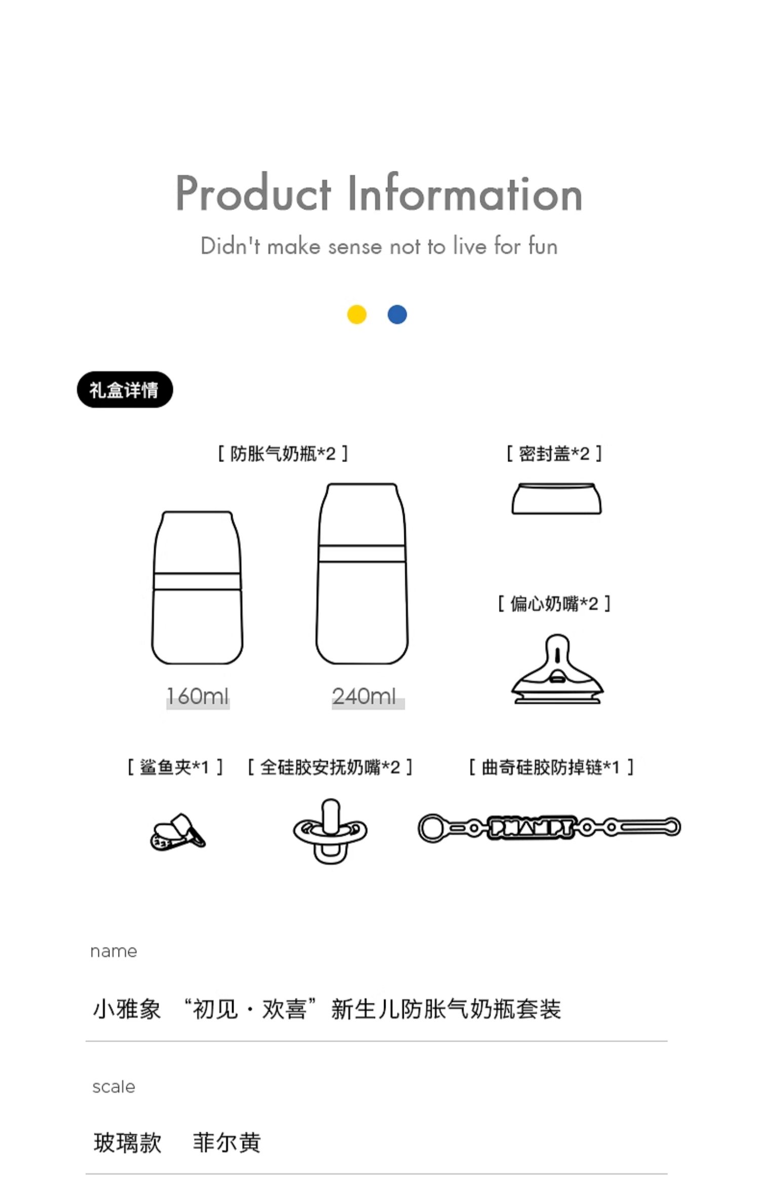 小雅象新生婴儿奶瓶玻璃PPSU耐摔防胀气宝宝初生礼盒套装送礼高档