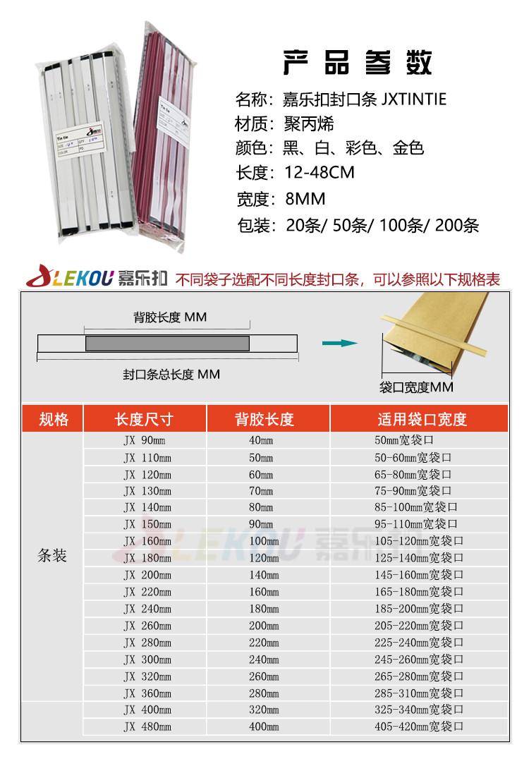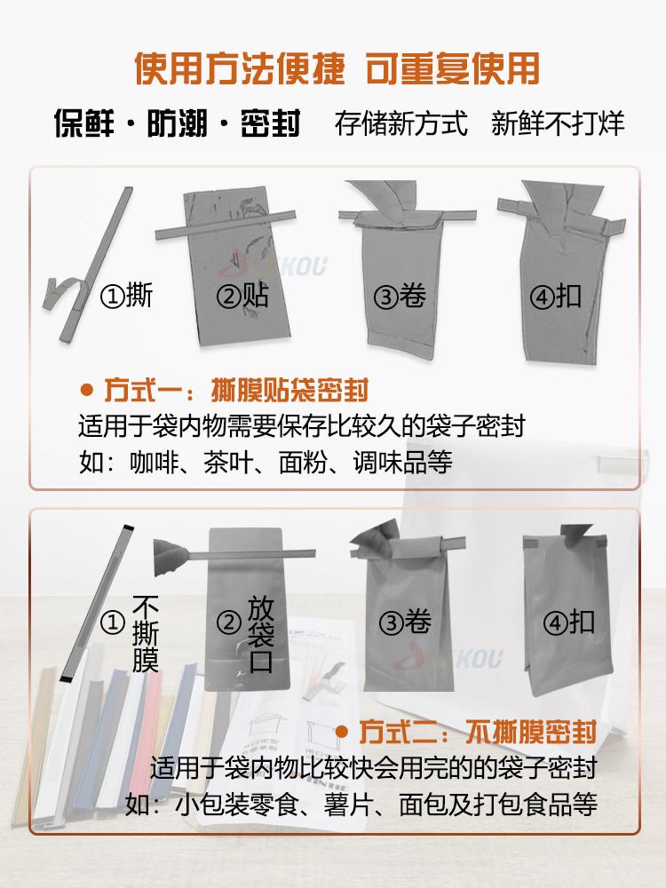 200条包邮JX香槟金色袋子封口条咖啡茶叶面包土司食品密封封口夹