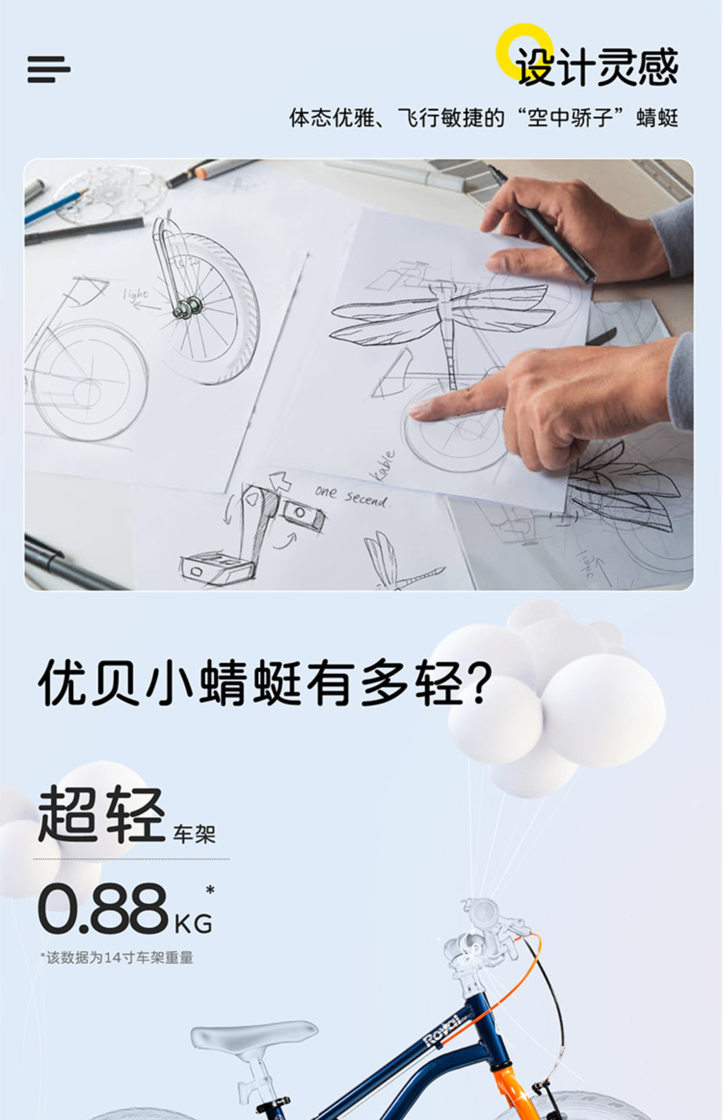 优贝儿童自行车易骑KB铝合金小蜻蜓超轻平衡车单车男女宝轻便童车