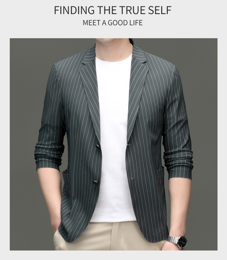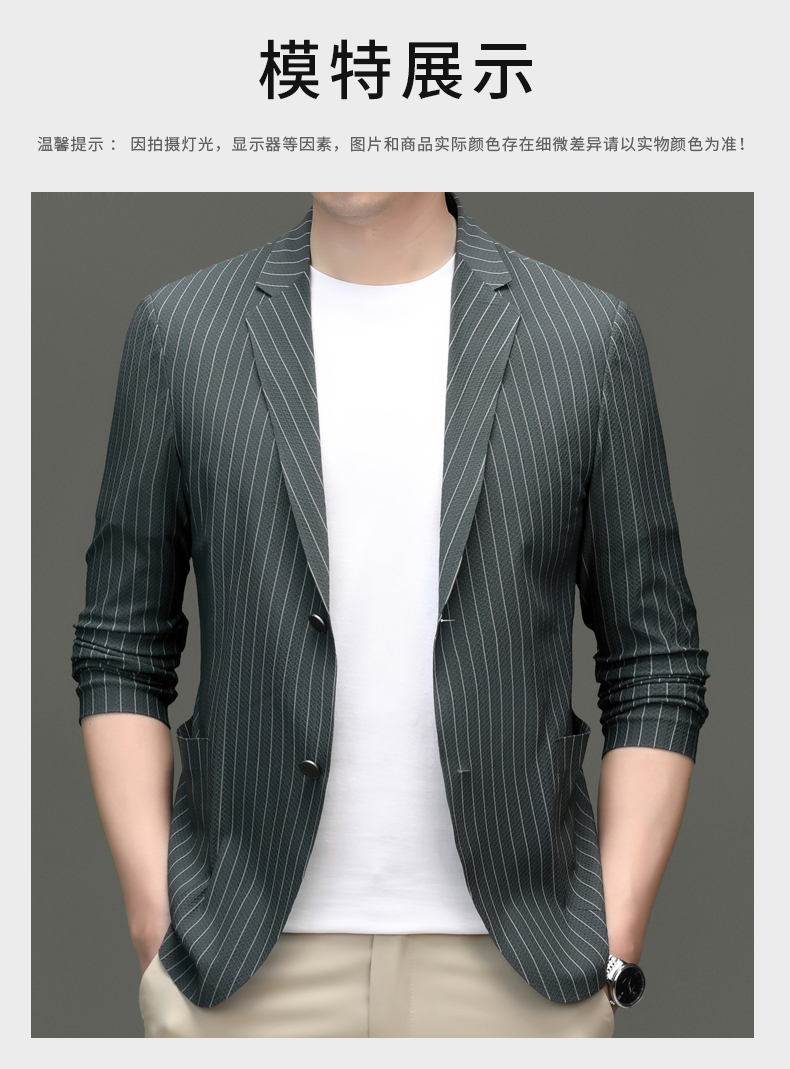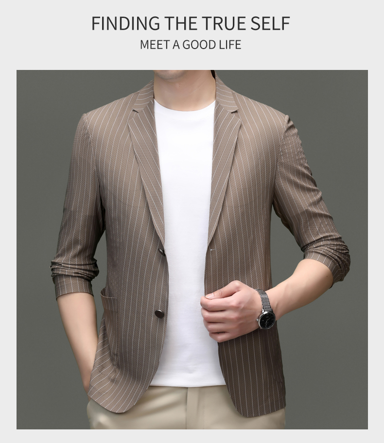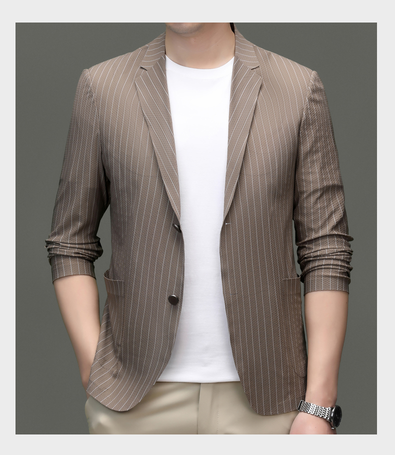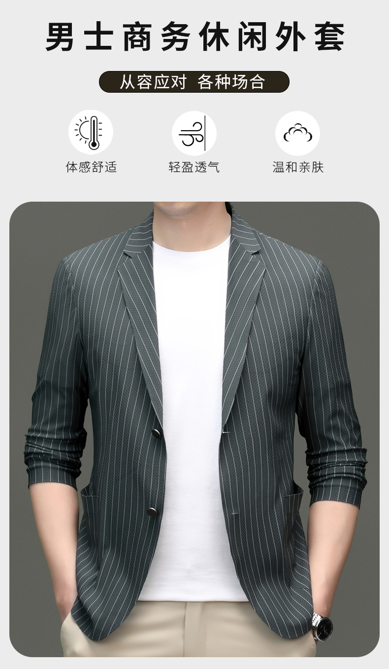 利郎男装休闲西服春夏季薄款条纹单西外套男士新款时尚修身西装潮