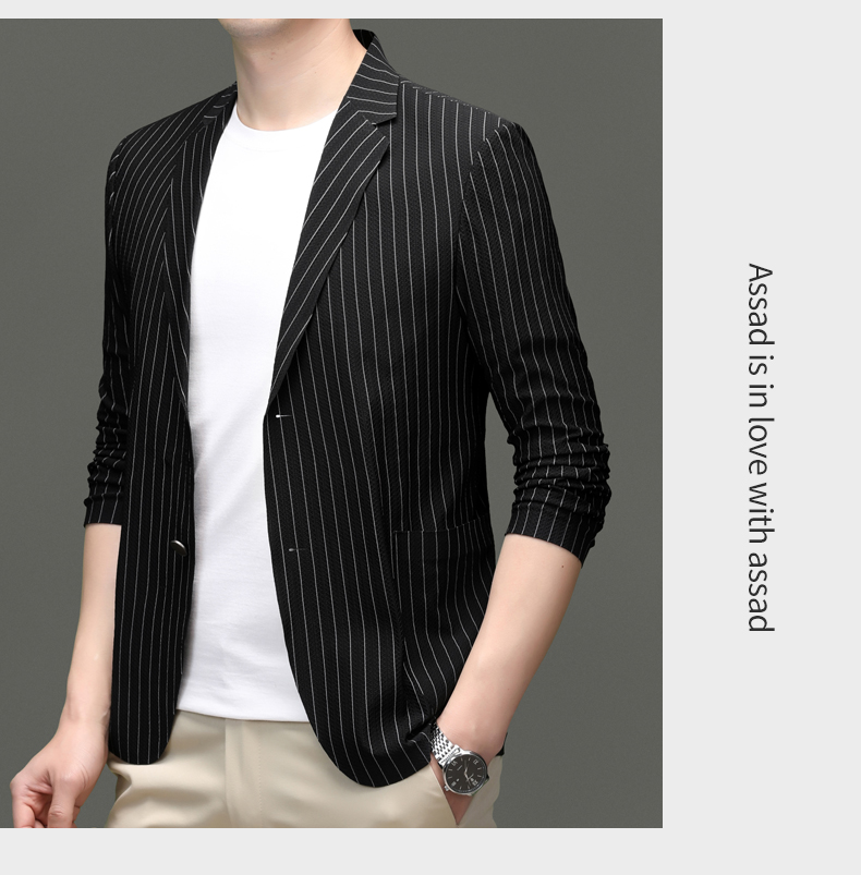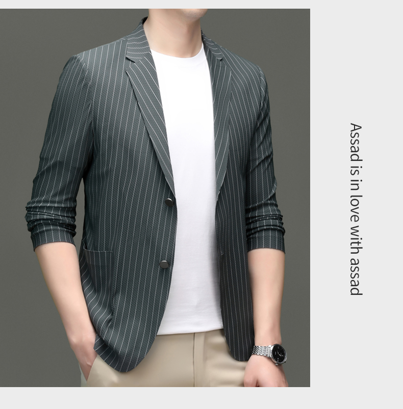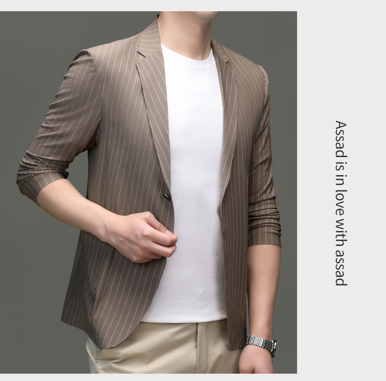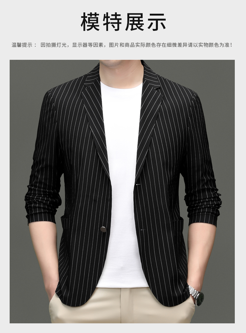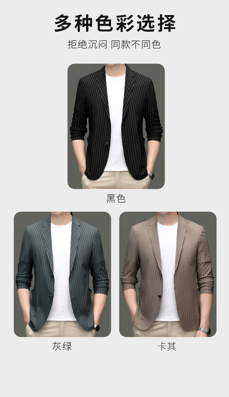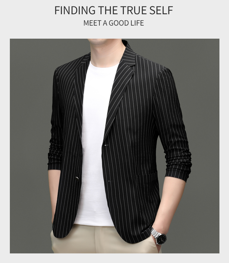 利郎男装休闲西服春夏季薄款条纹单西外套男士新款时尚修身西装潮