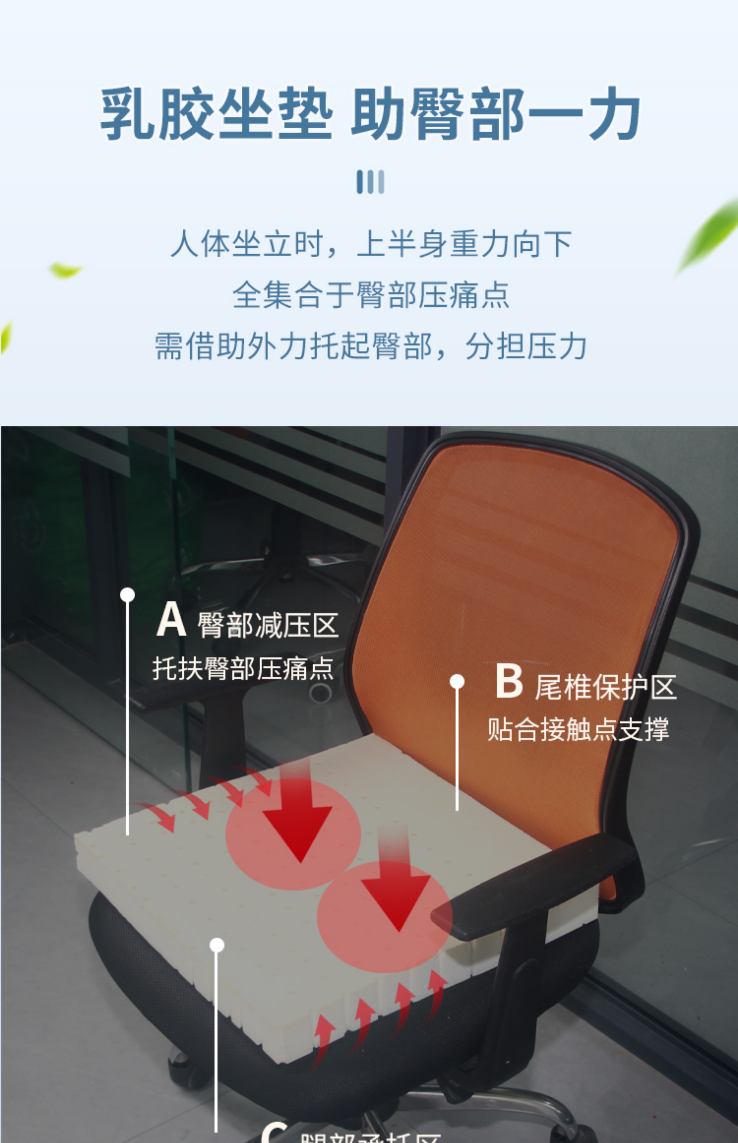天然乳胶坐垫防屁股痛学生教室椅子垫冬季办公室久坐餐椅宿舍屁垫