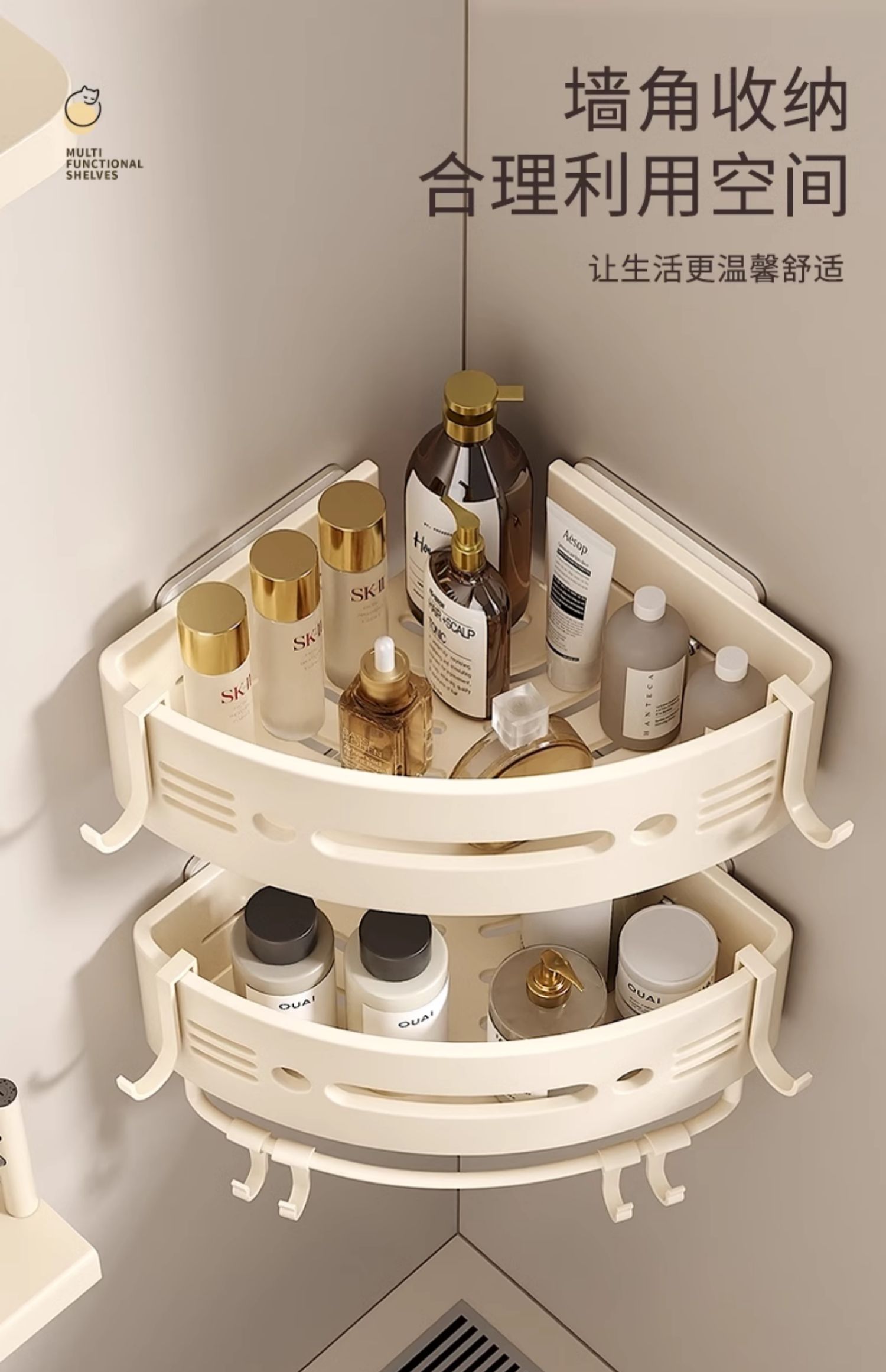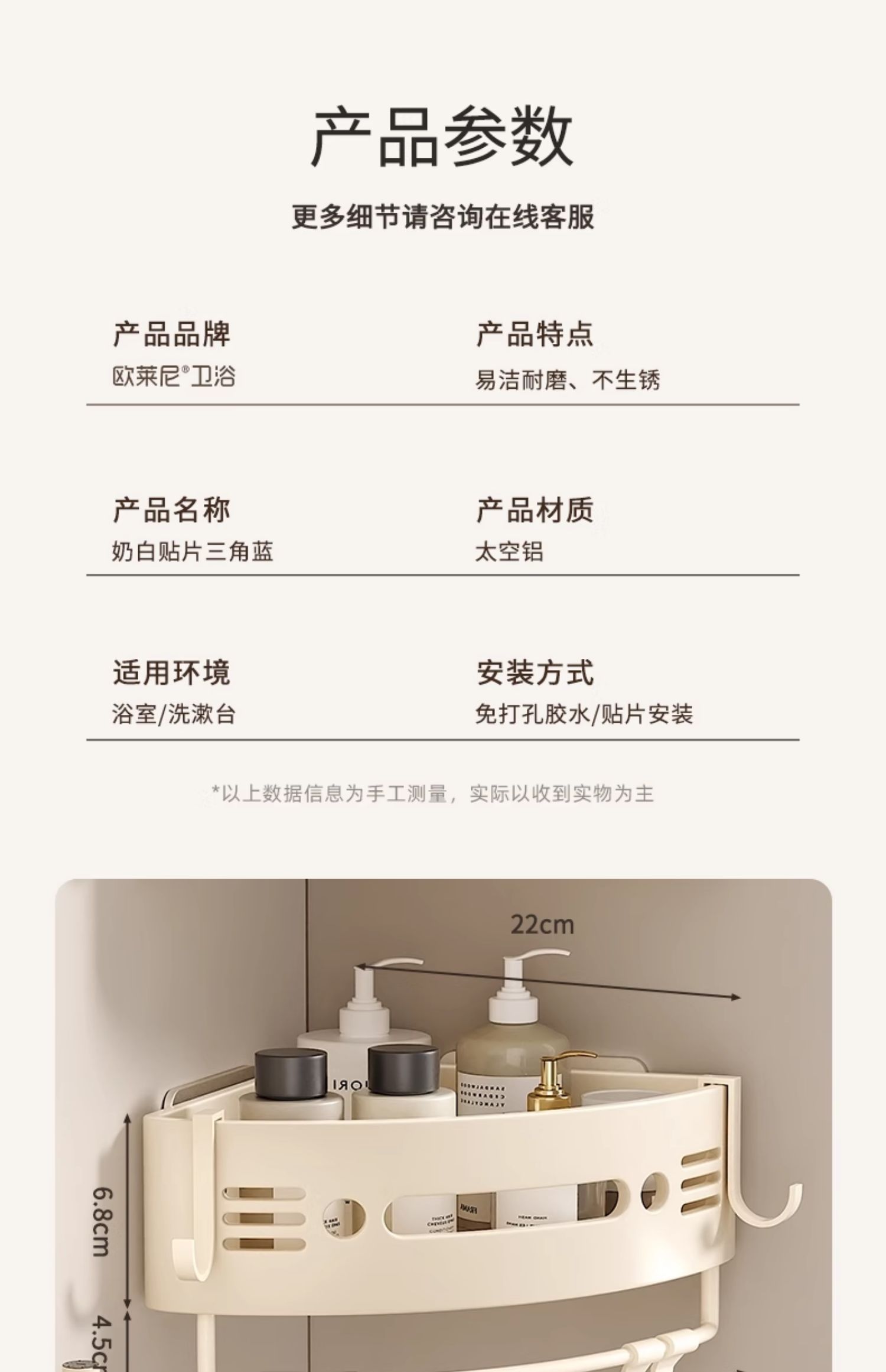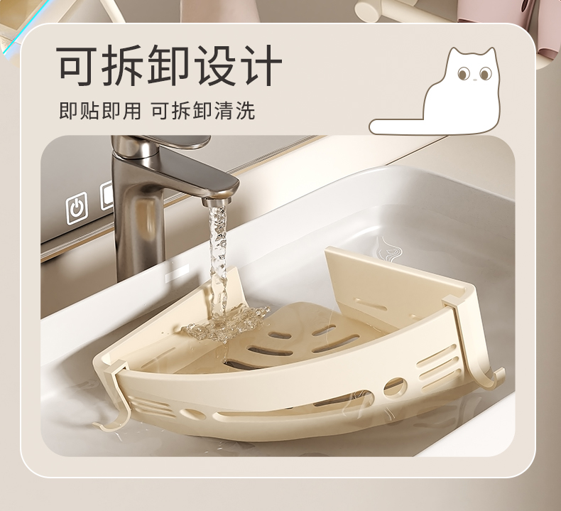 免打孔浴室卫生间置物架厕所洗手洗漱台墙上壁挂式三角收纳支架子