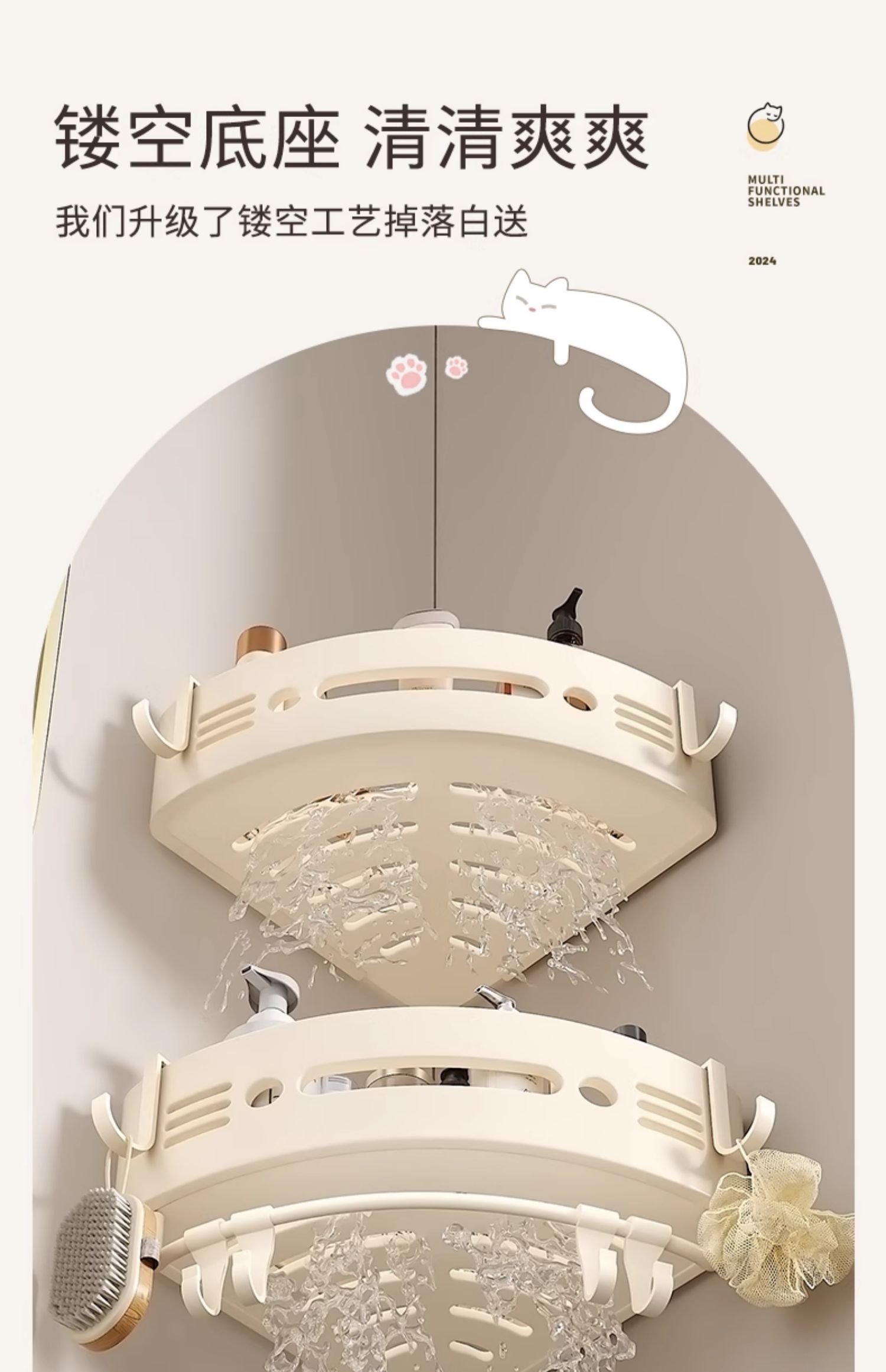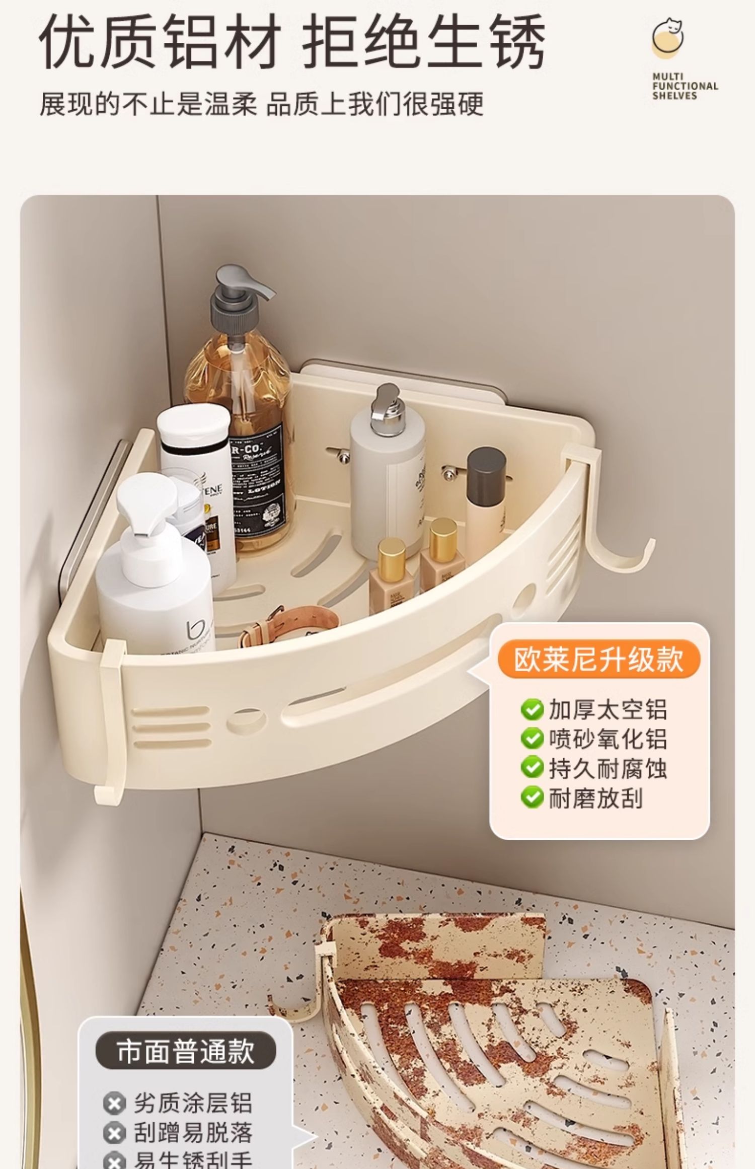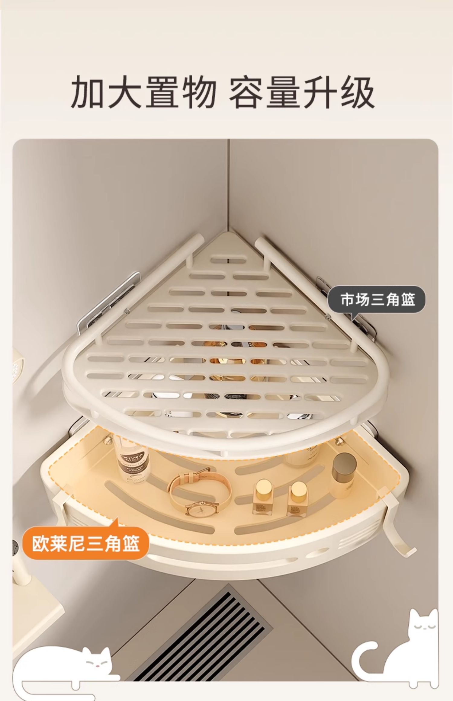 免打孔浴室卫生间置物架厕所洗手洗漱台墙上壁挂式三角收纳支架子