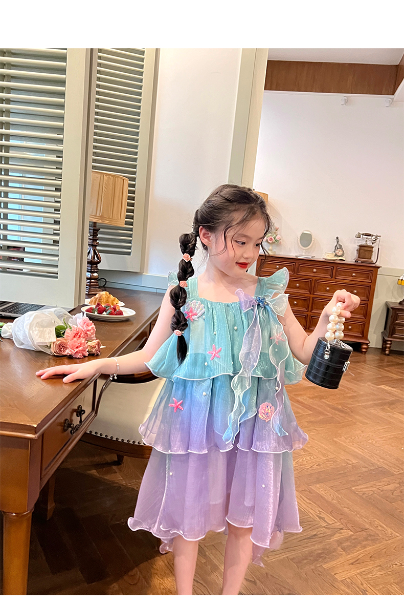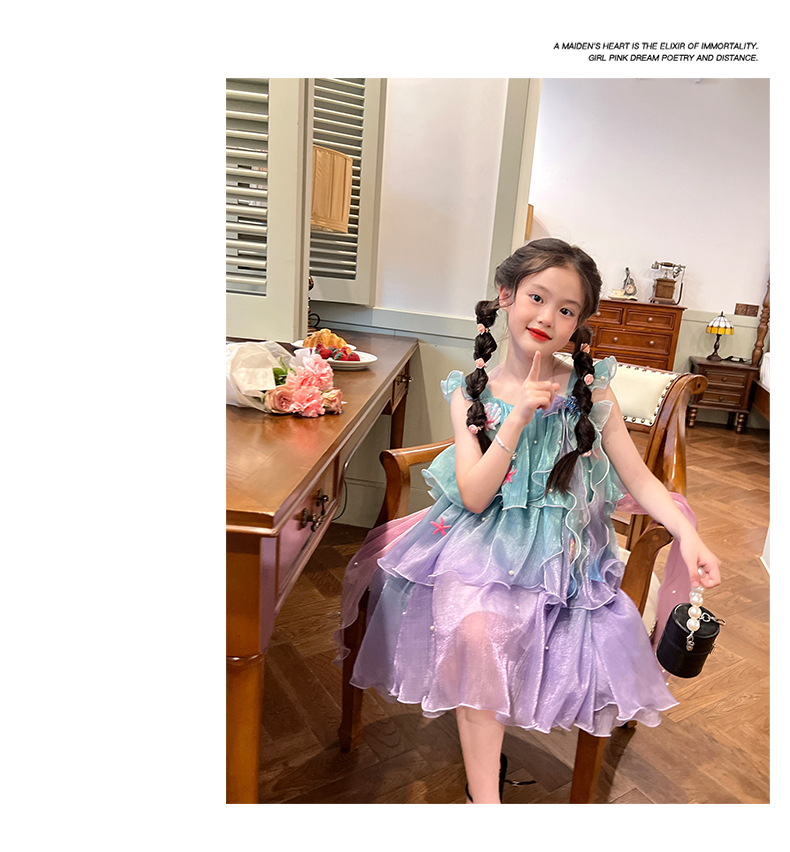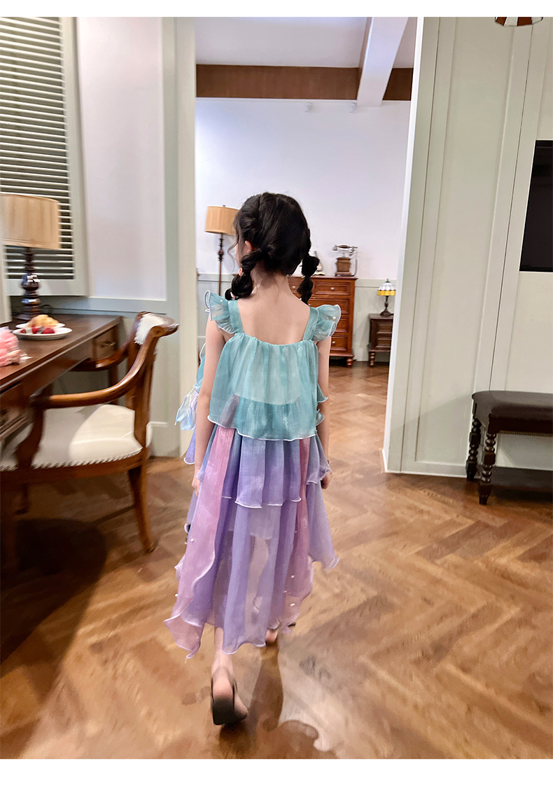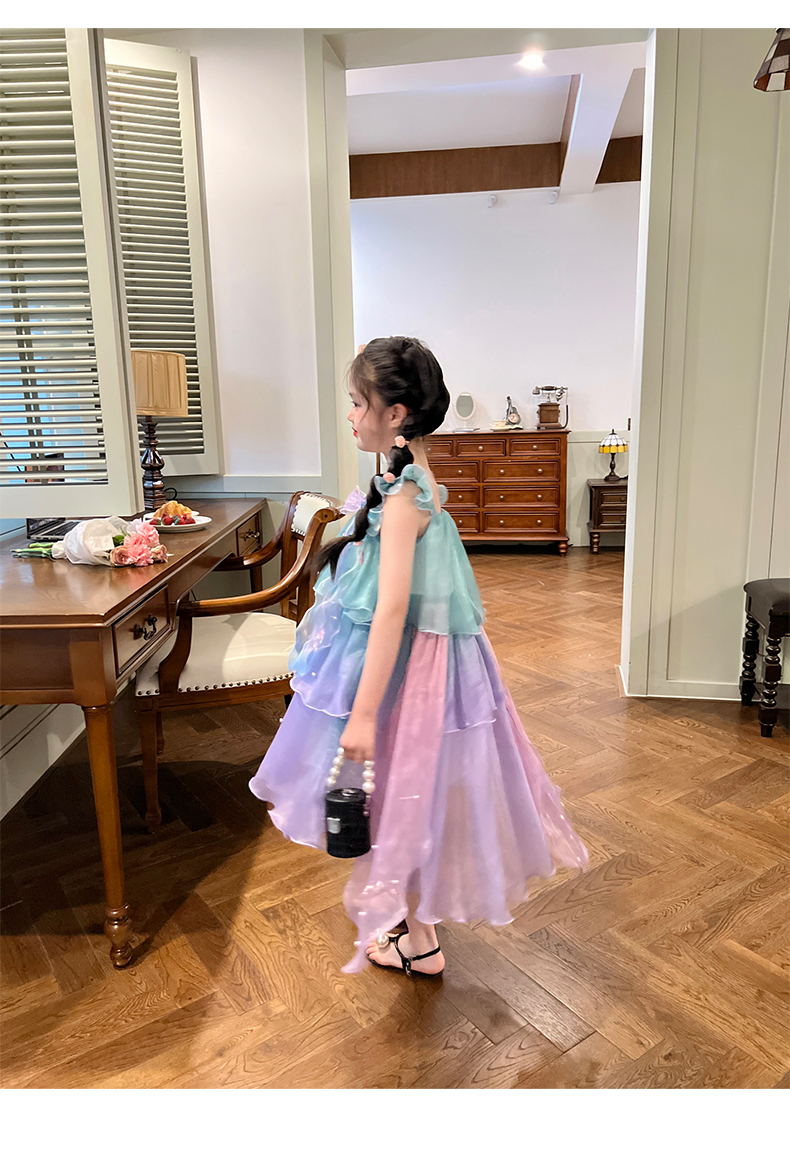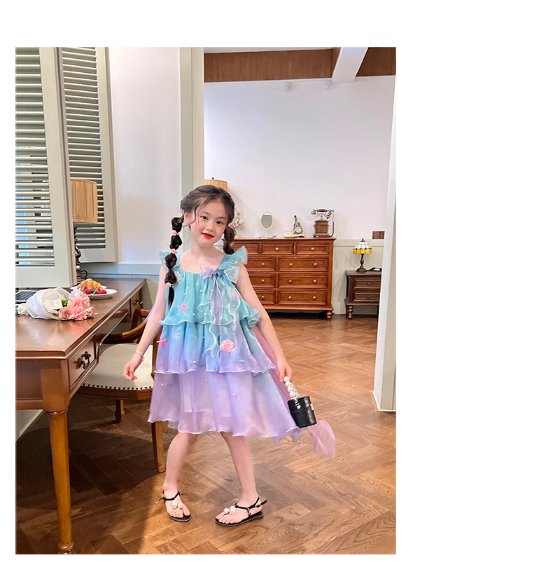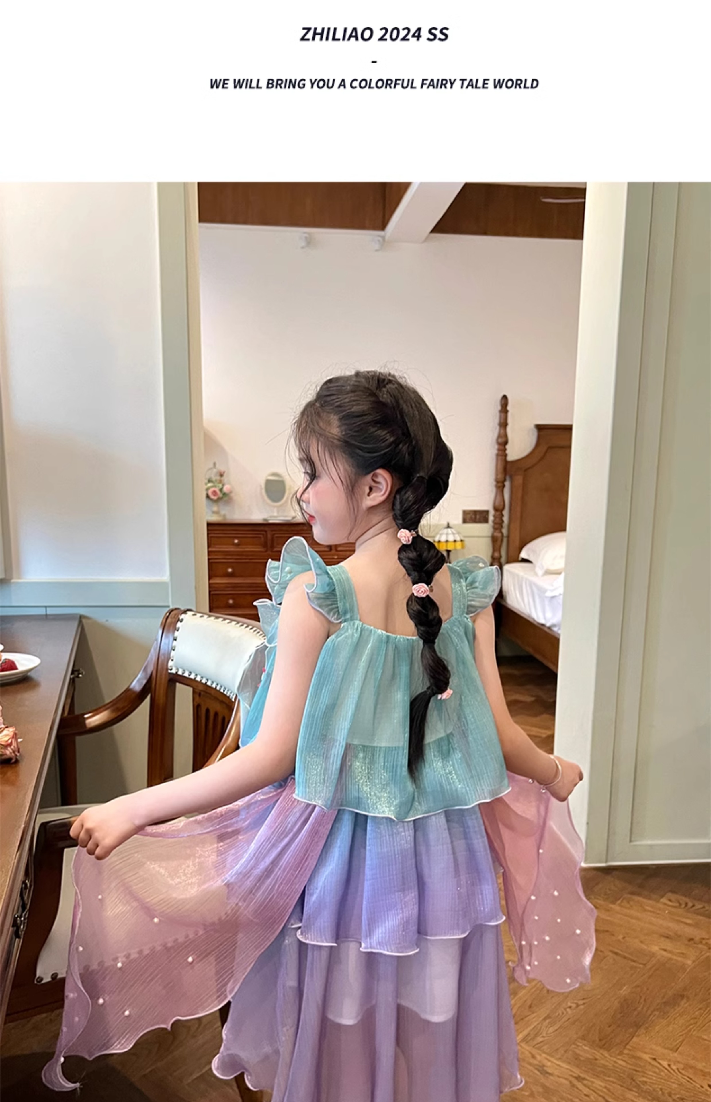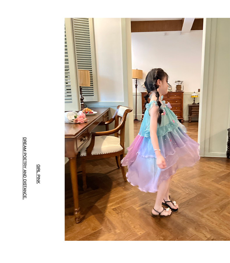 栀了成长记童装女童美人鱼公主裙夏装儿童小女孩彩虹渐变连衣裙