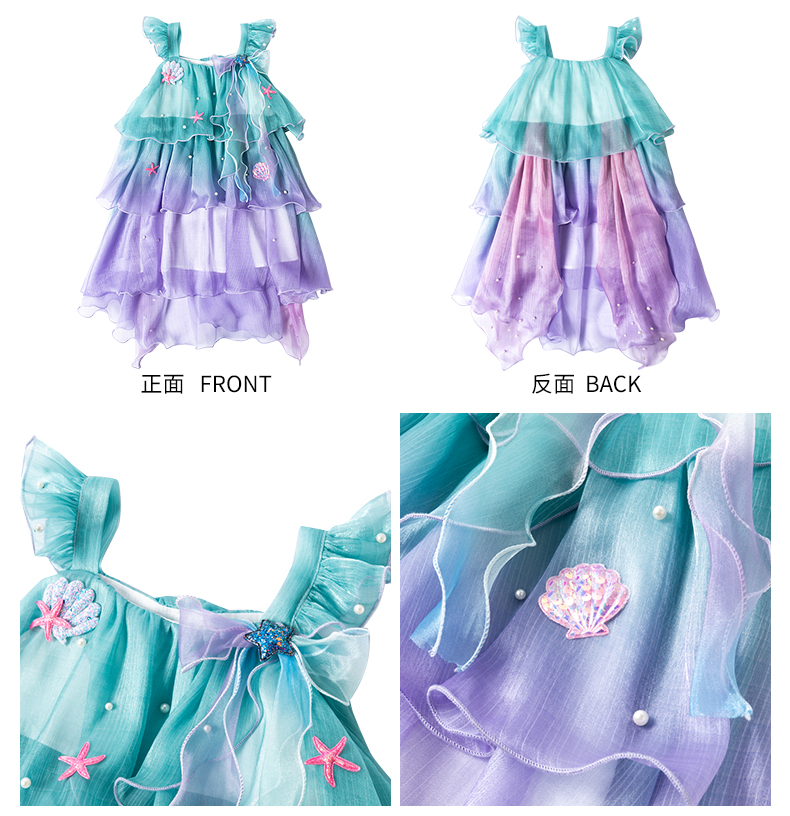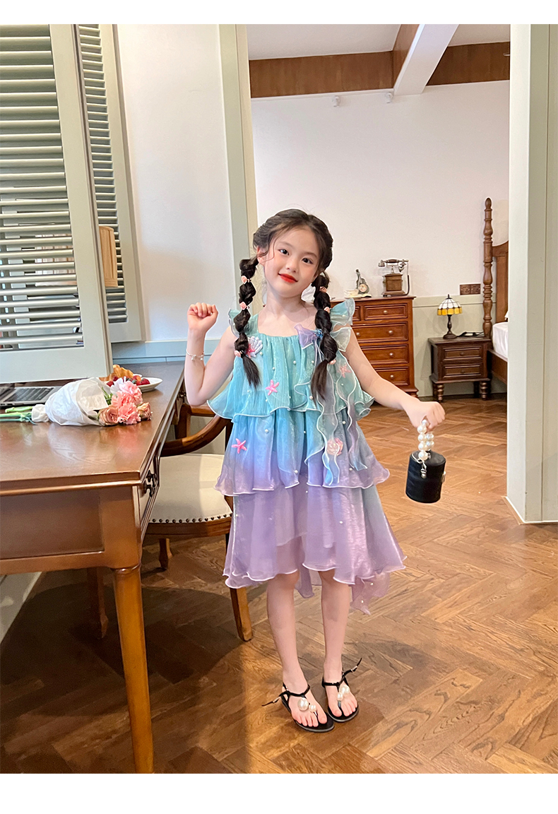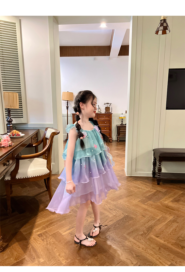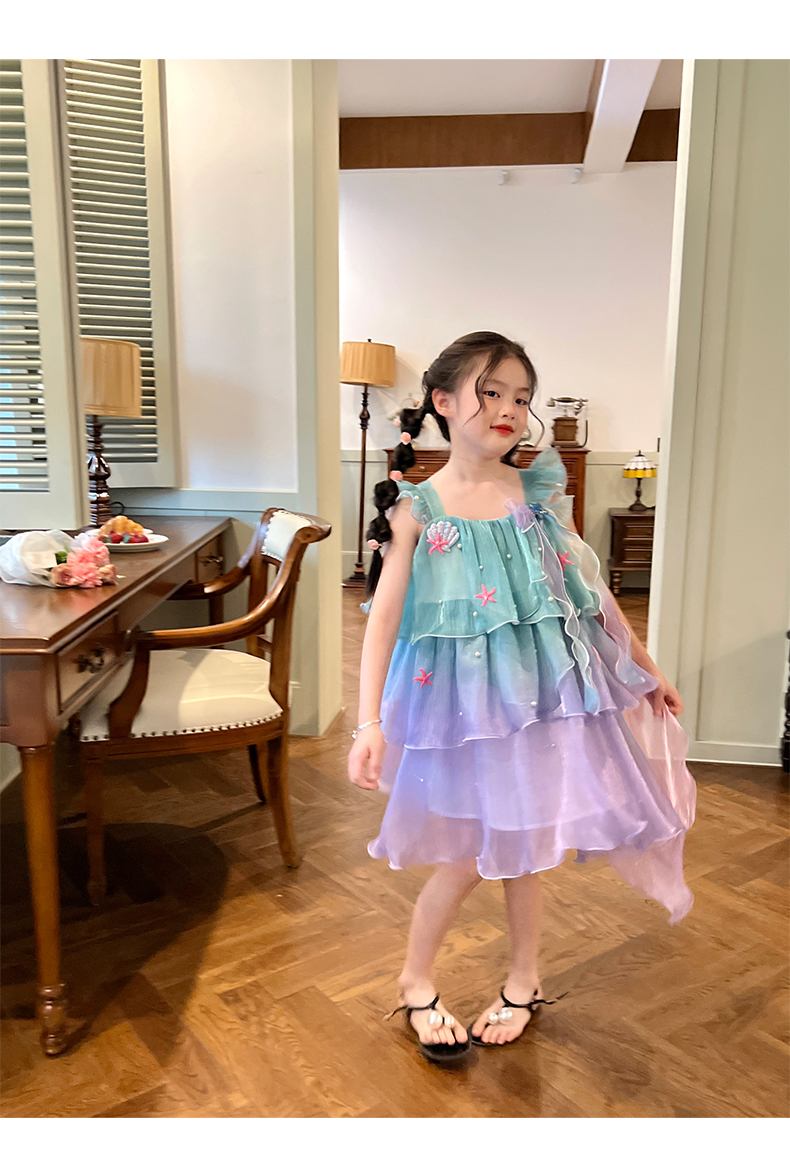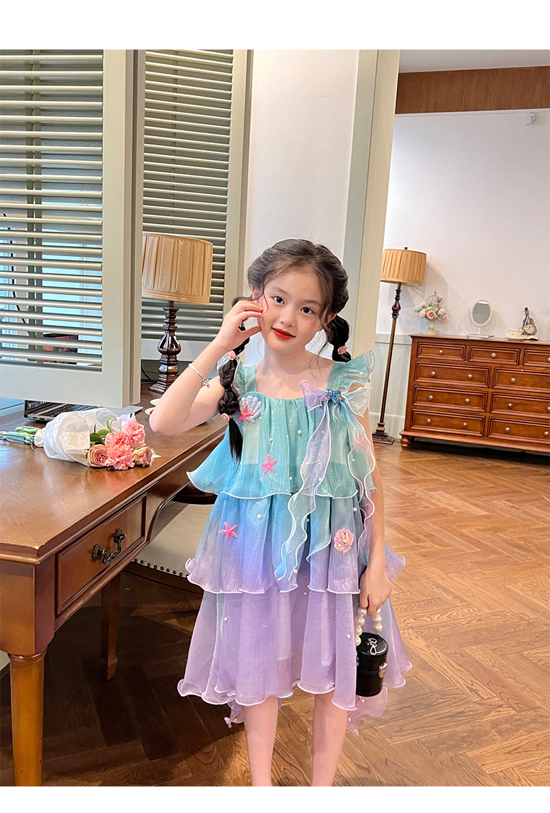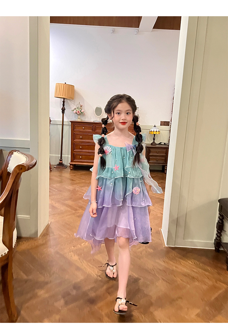 栀了成长记童装女童美人鱼公主裙夏装儿童小女孩彩虹渐变连衣裙