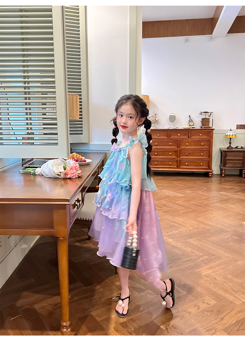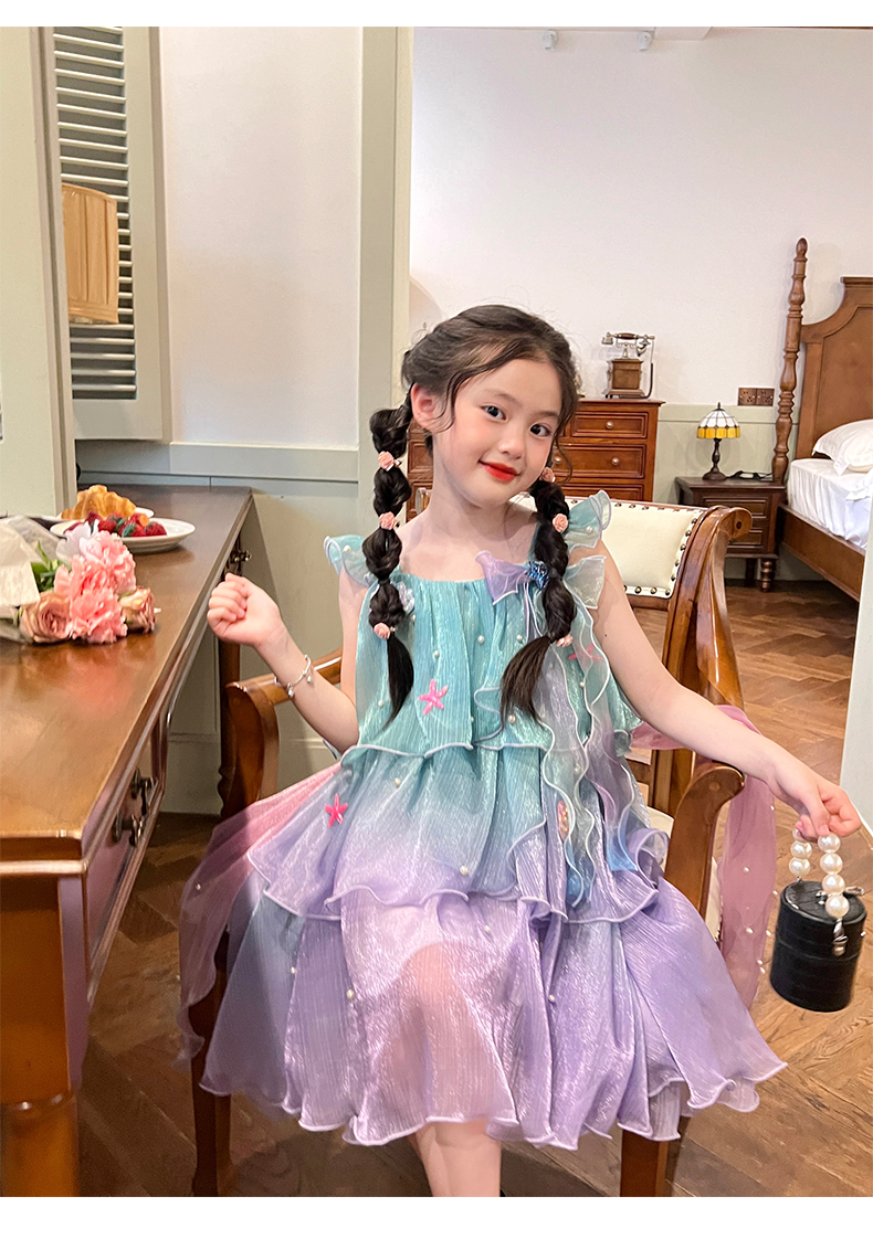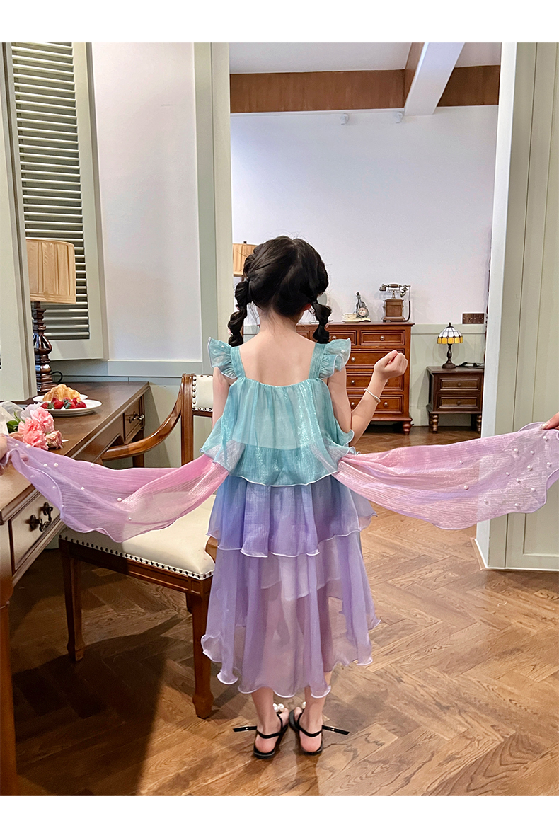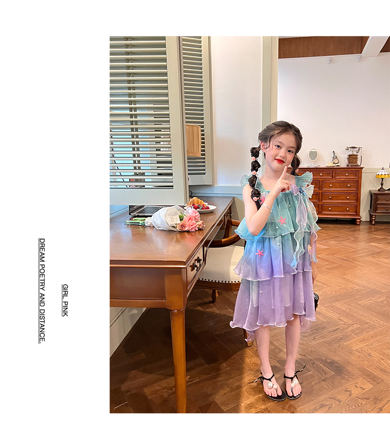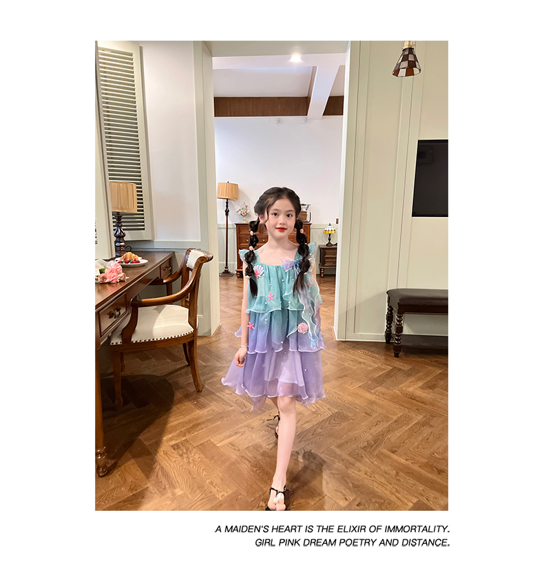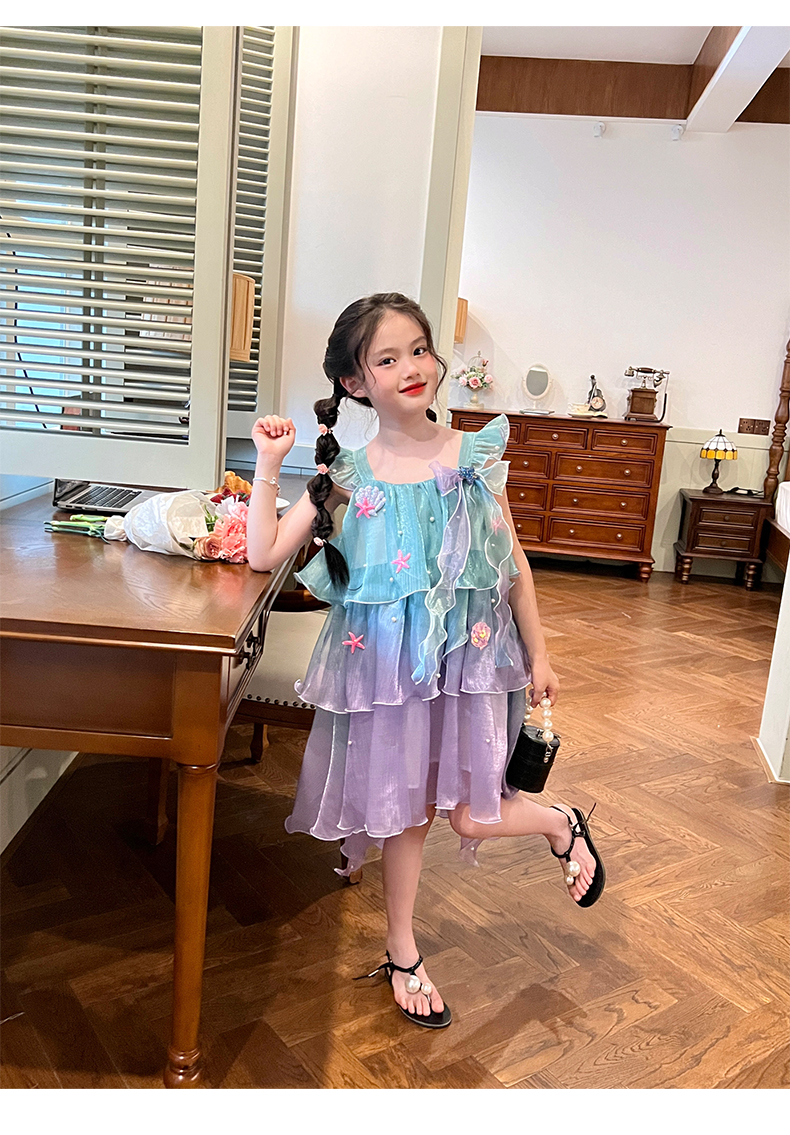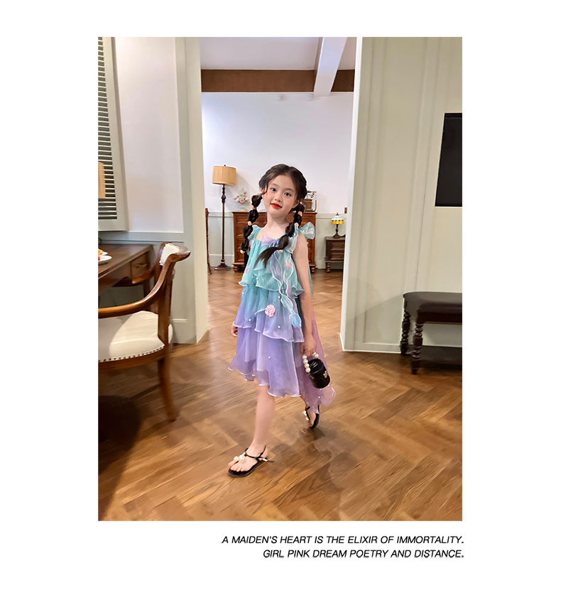 栀了成长记童装女童美人鱼公主裙夏装儿童小女孩彩虹渐变连衣裙