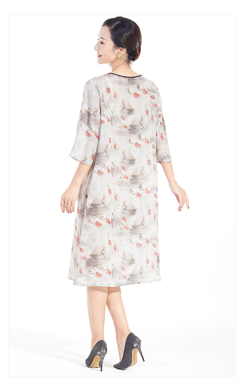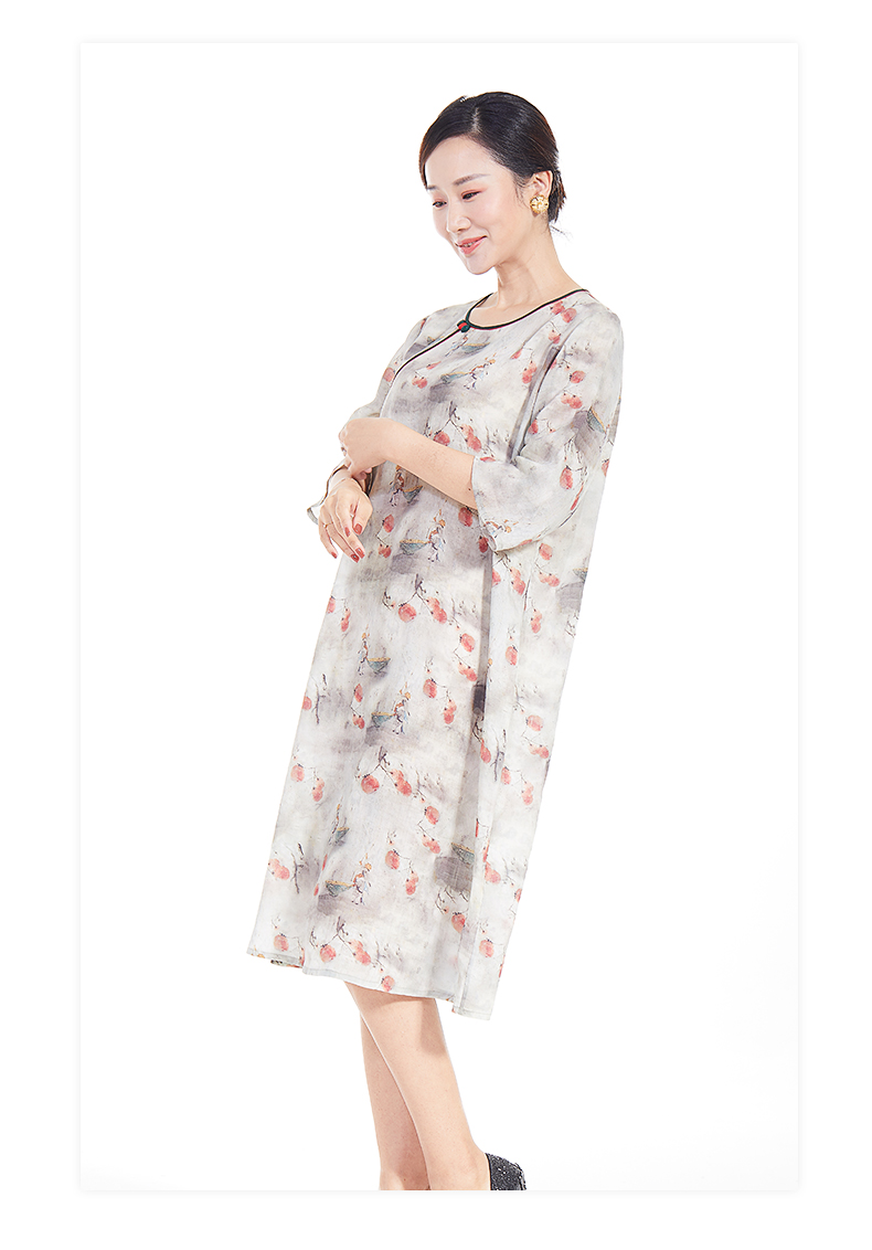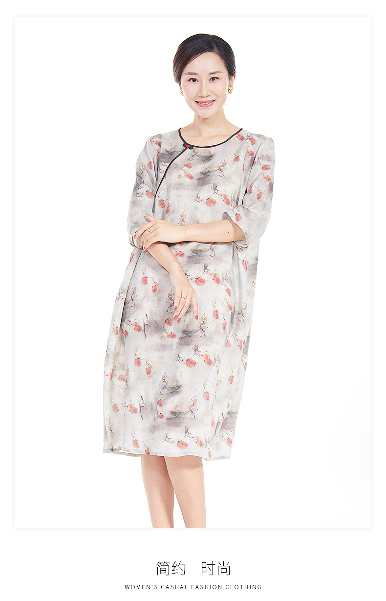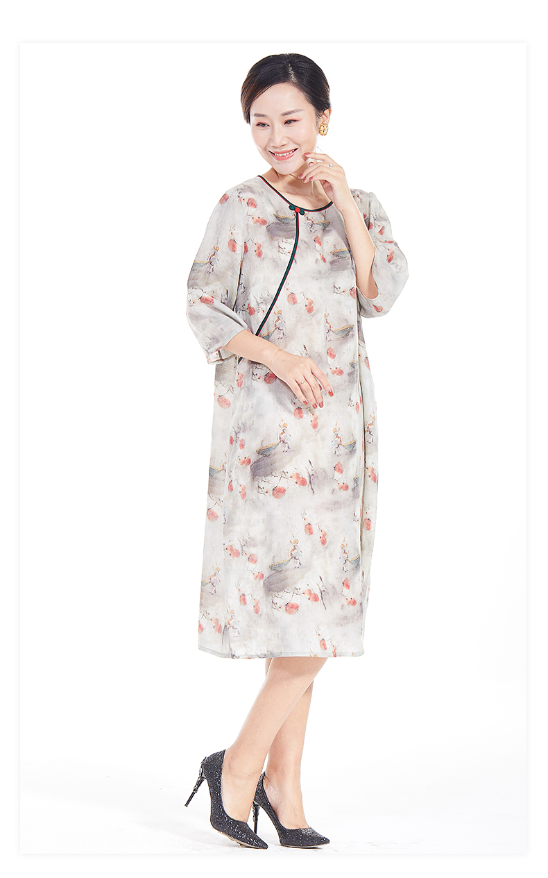 胖太太大码女装春夏新款宽松圆领七分袖中长连衣裙透气720103742