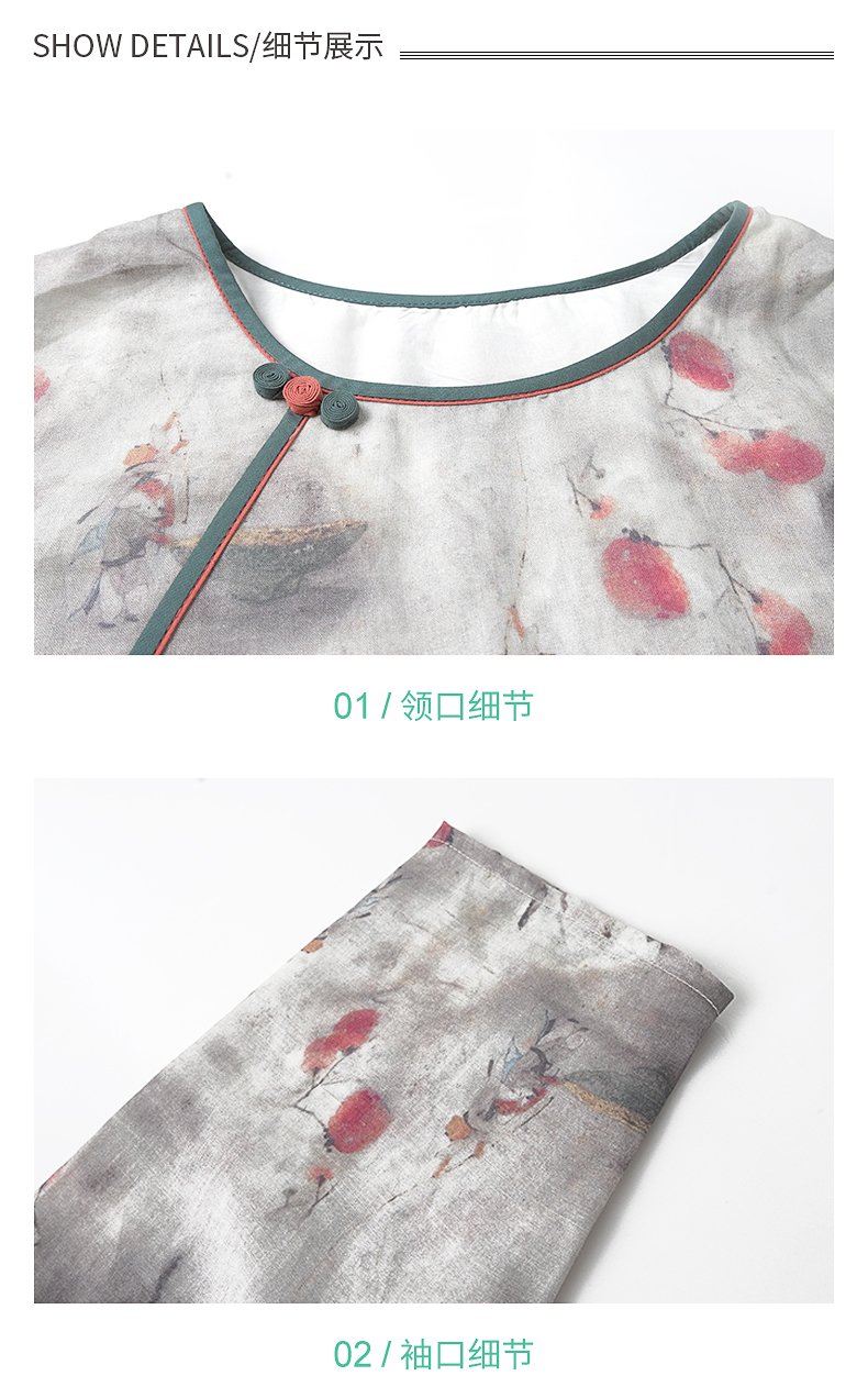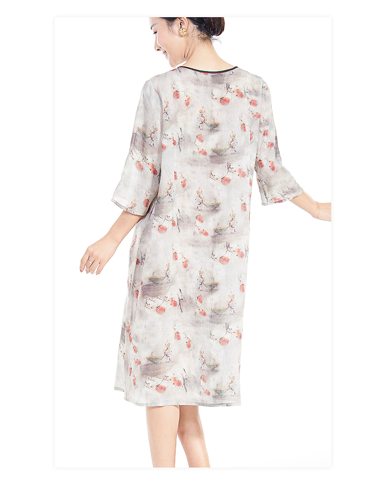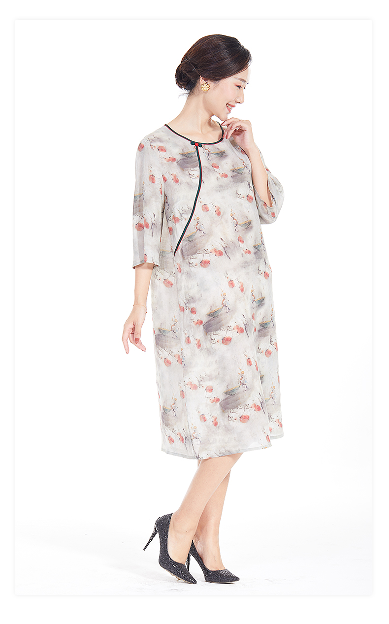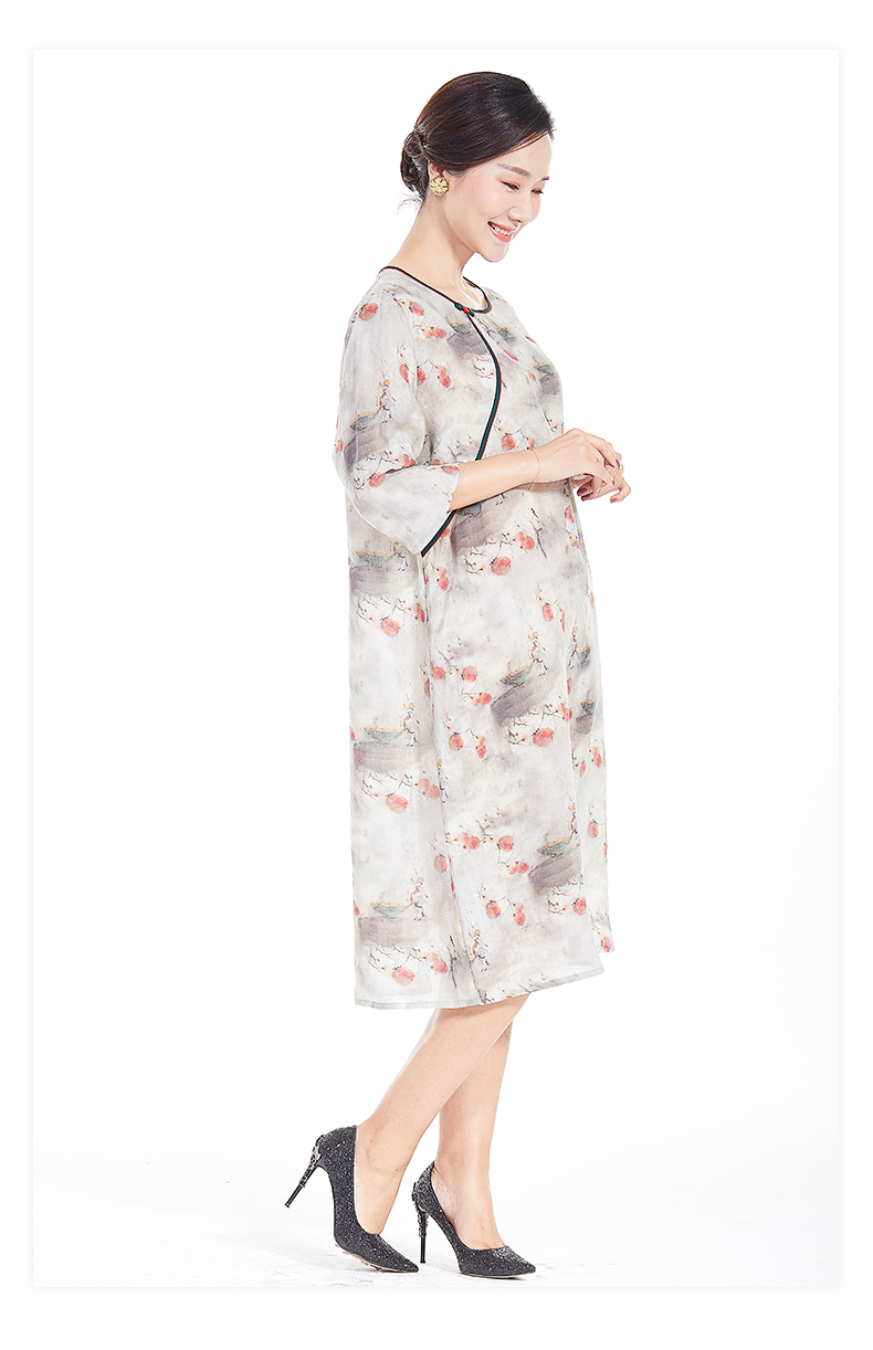 胖太太大码女装春夏新款宽松圆领七分袖中长连衣裙透气720103742