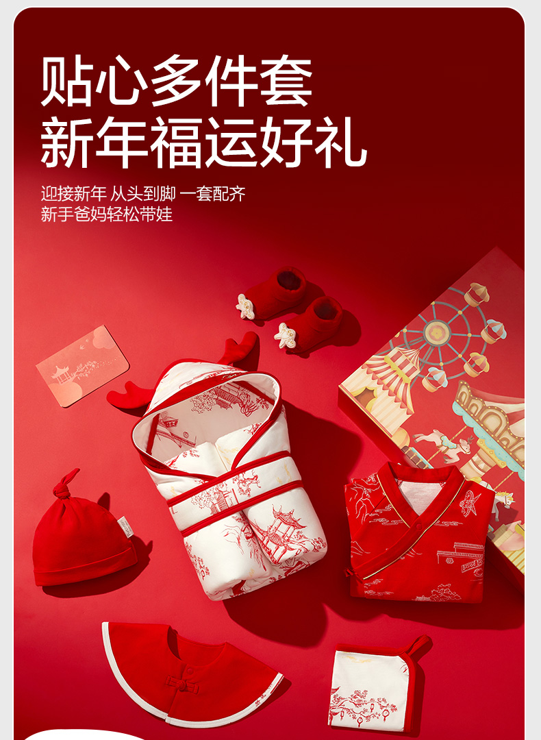 全棉时代新生婴儿衣服礼盒秋冬婴儿用品宝宝用品新年节庆