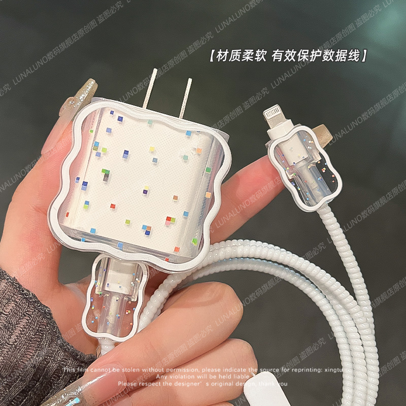 苹果16充电器保护套透明适用于20WiPhone15手机保护绳硅胶14快充数据线缠绕线ipad充电头防折断防猫咬散热