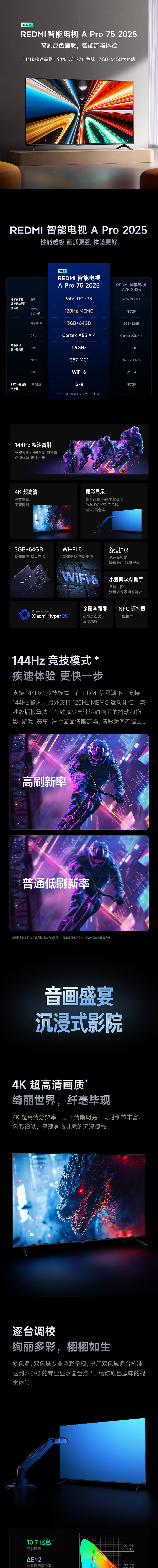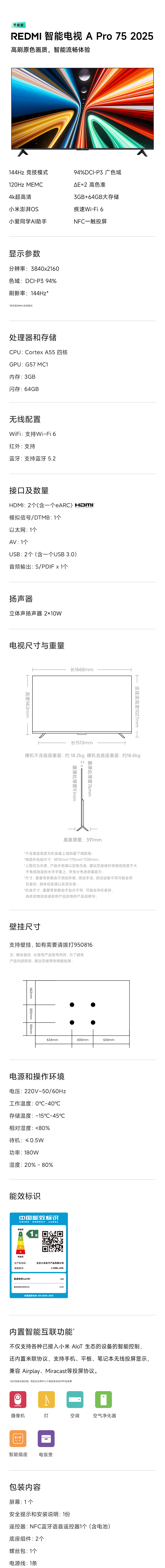 小米REDMI A Pro75英寸高清144Hz高刷平板电视机2025以旧换新补贴