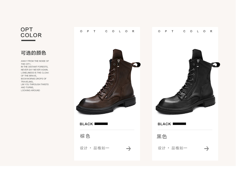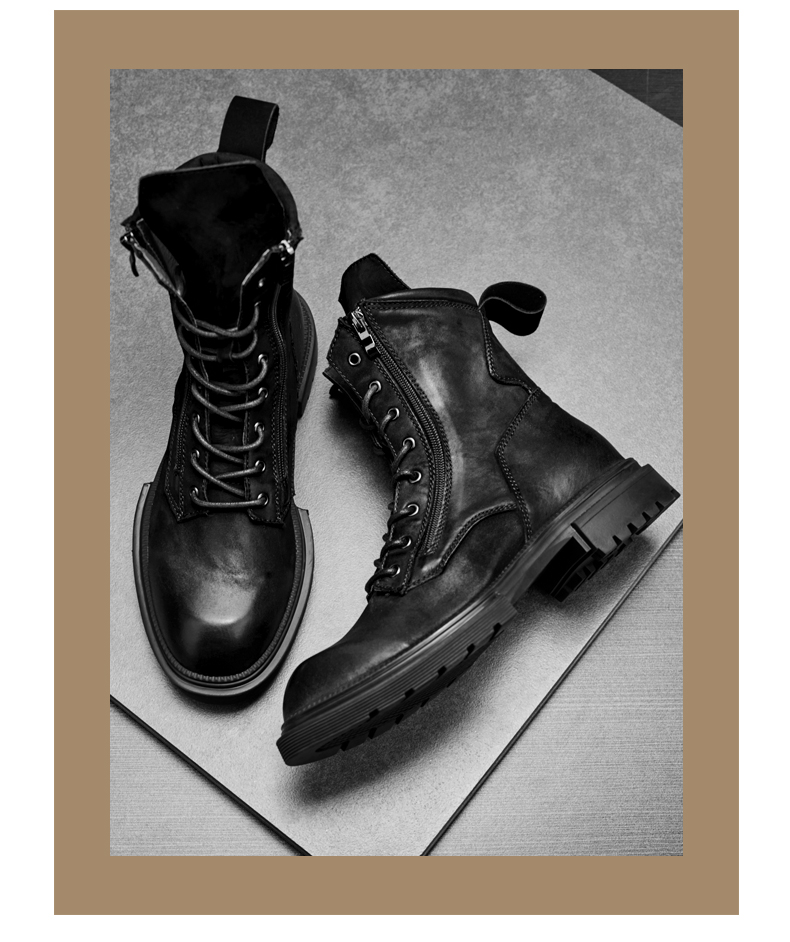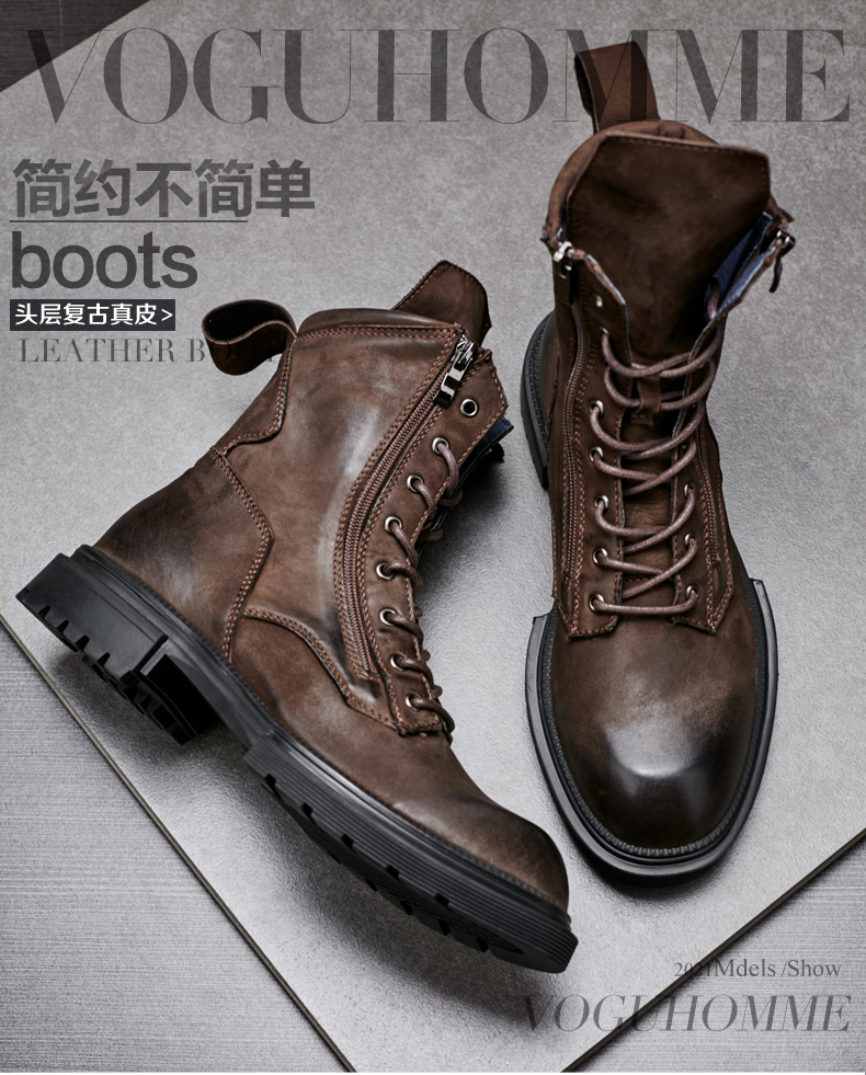 秋冬牛皮高帮马丁靴男时尚复古厚底皮靴加绒拉链个性靴子圆头男靴
