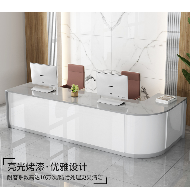 收银台公司前台接待台拐角烤漆前台桌简约现代商用店铺圆角小吧台