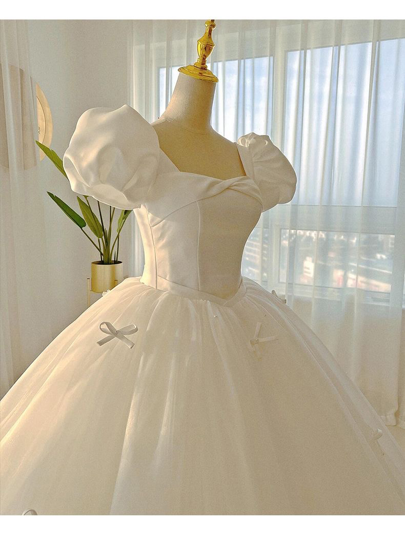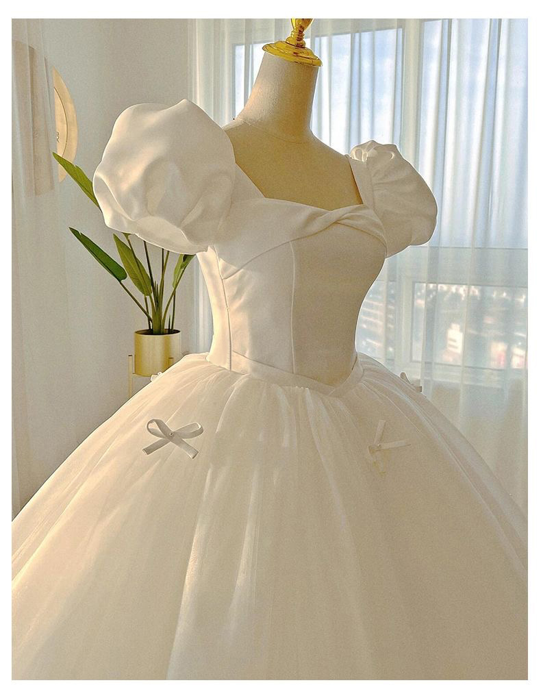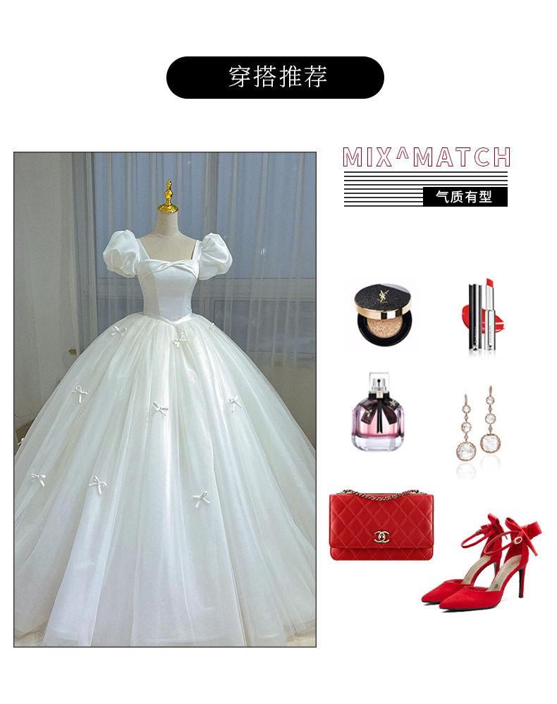 法式轻婚纱2025新款新娘缎面森系迎宾出门纱蝴蝶结齐地蓬蓬裙119