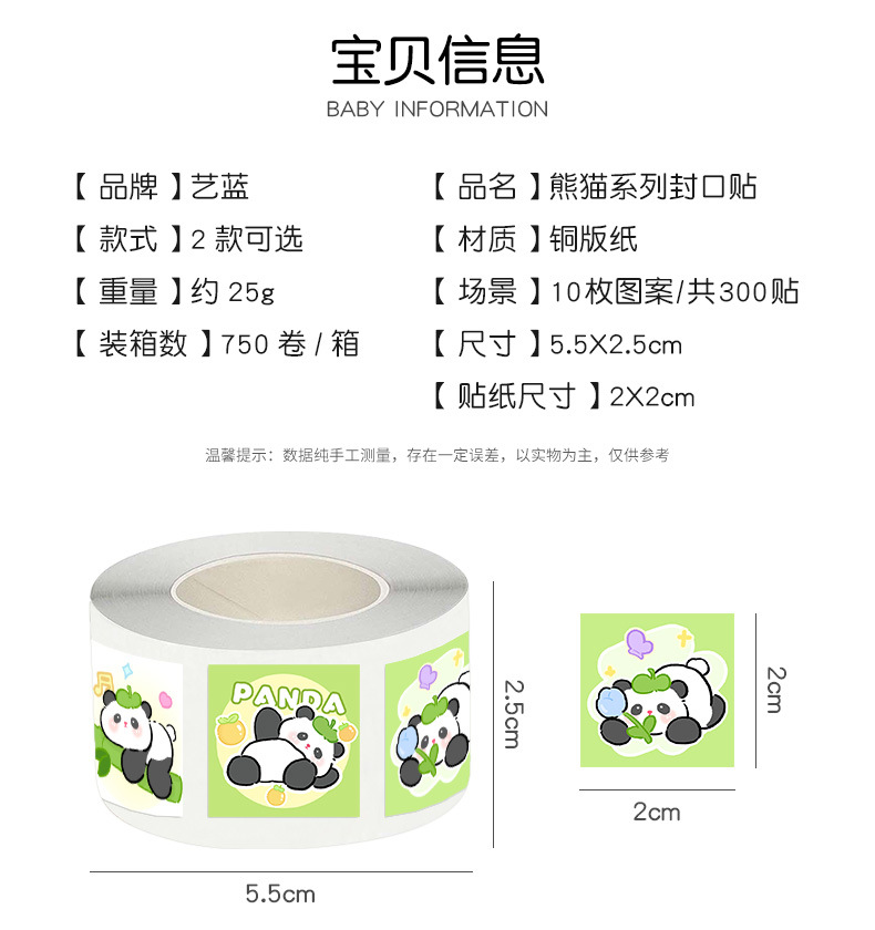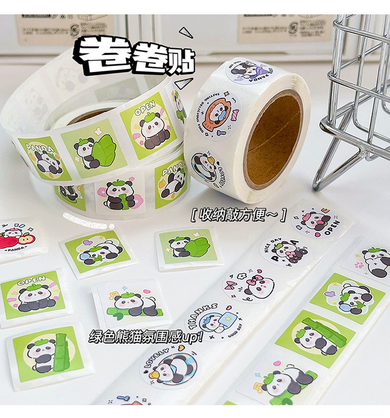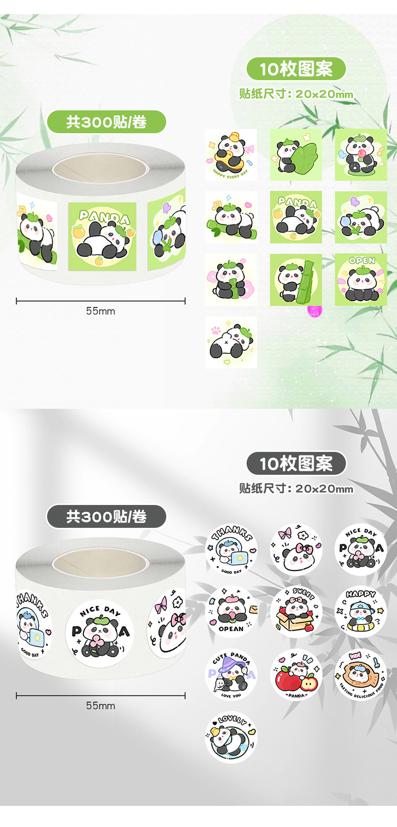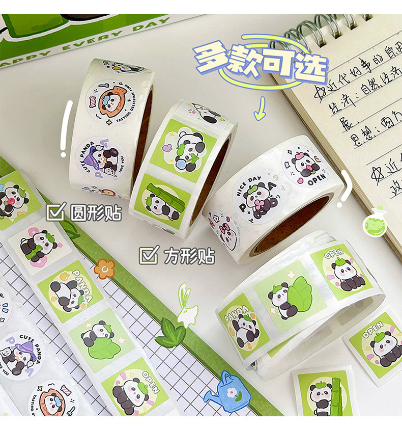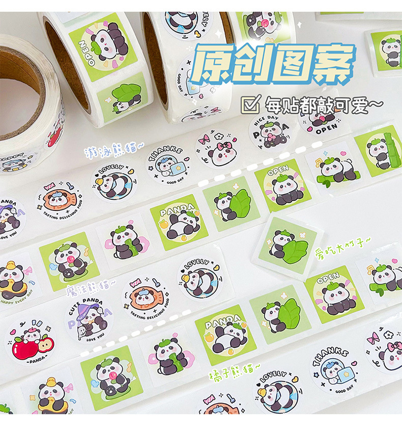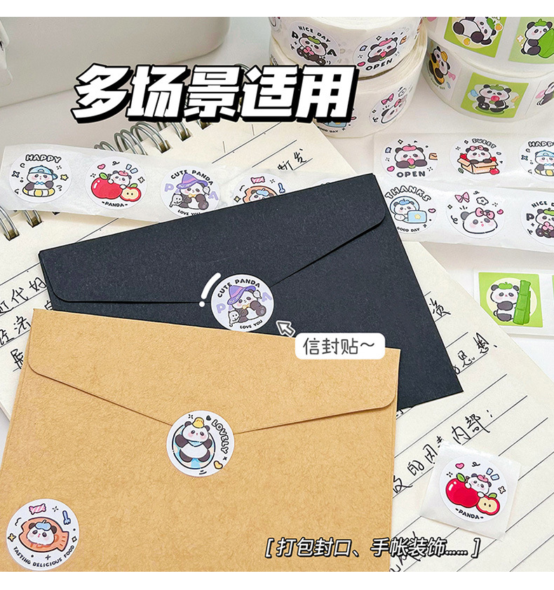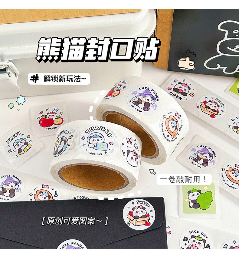 创意国风熊猫封口贴可爱手帐贴纸卡通不干胶贴画DIY装饰小图案贴