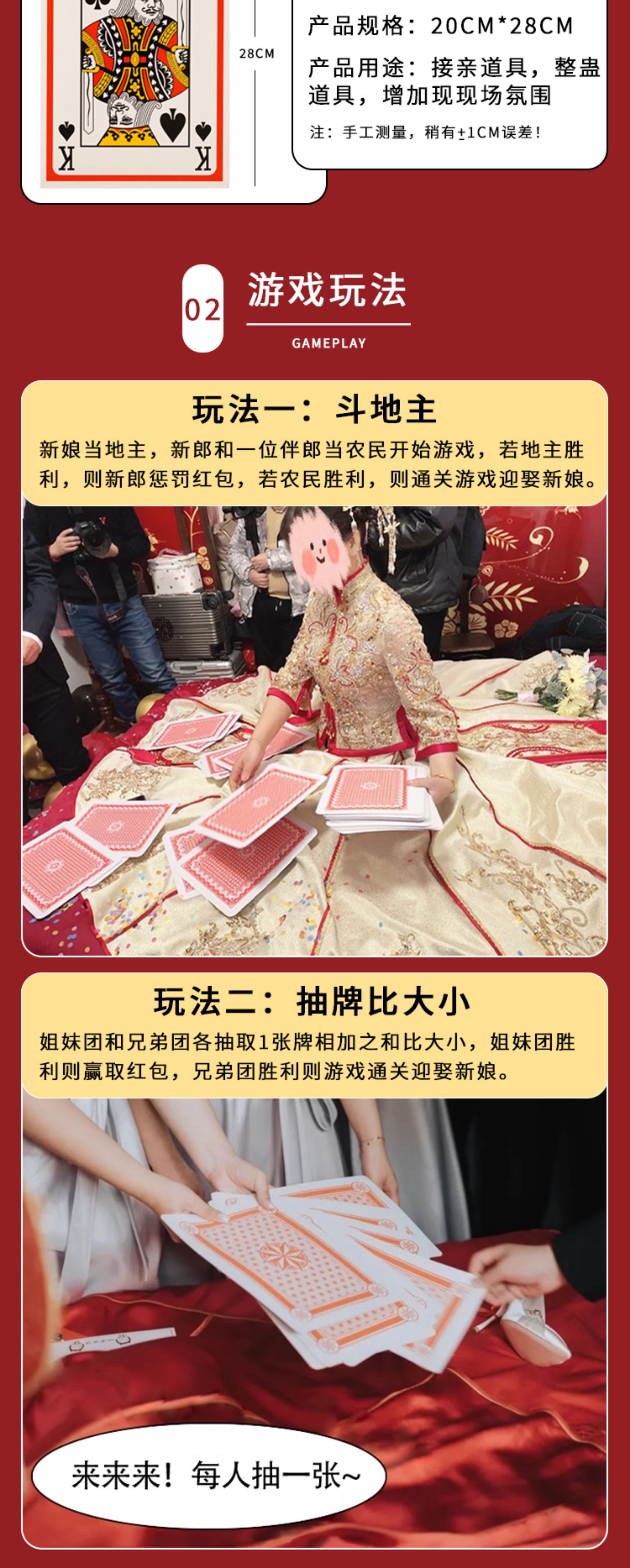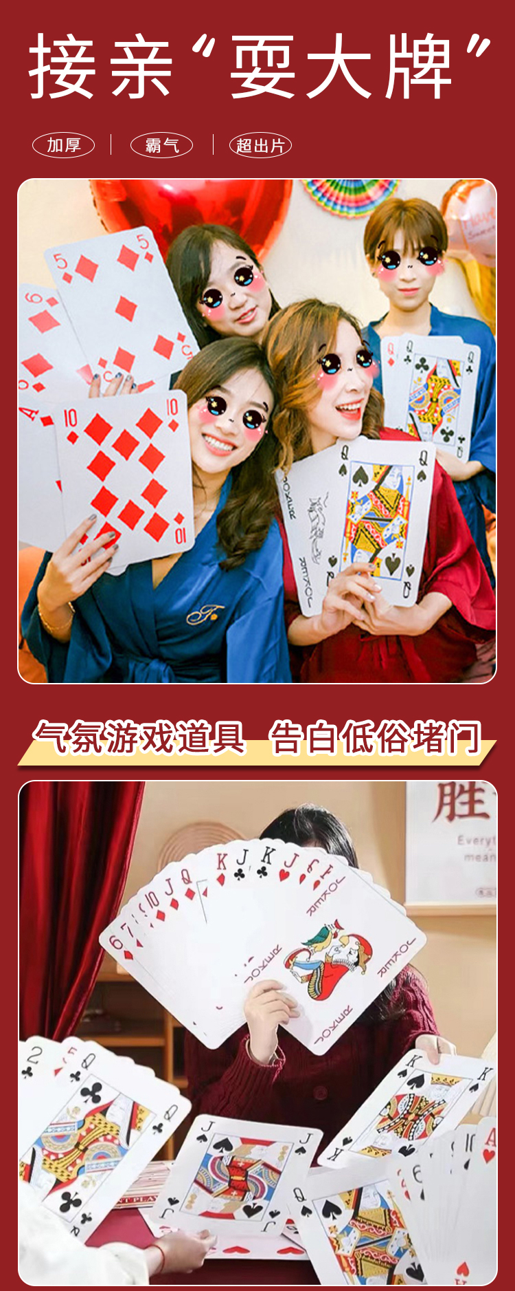耍大牌拍照结婚堵门接亲小游戏道具创意婚礼用品大全拦门超大扑克