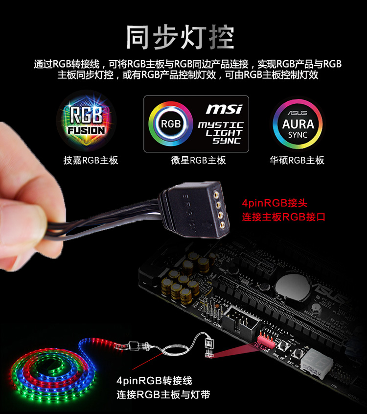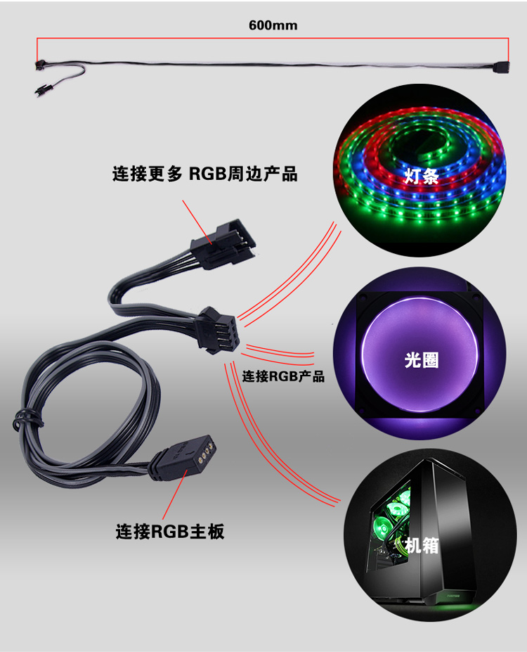 包邮追风者PHANTEKS专用RGB 4Pin灯光托付主板同步控制转接线AURA