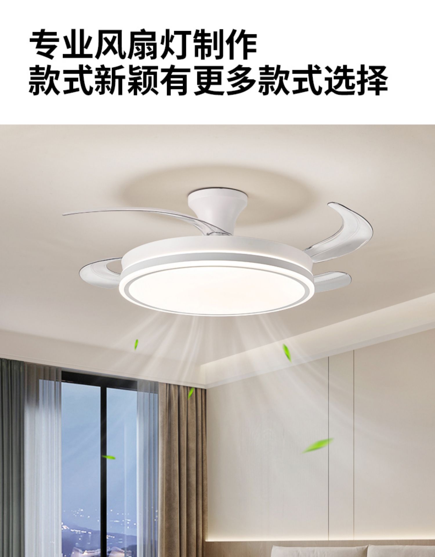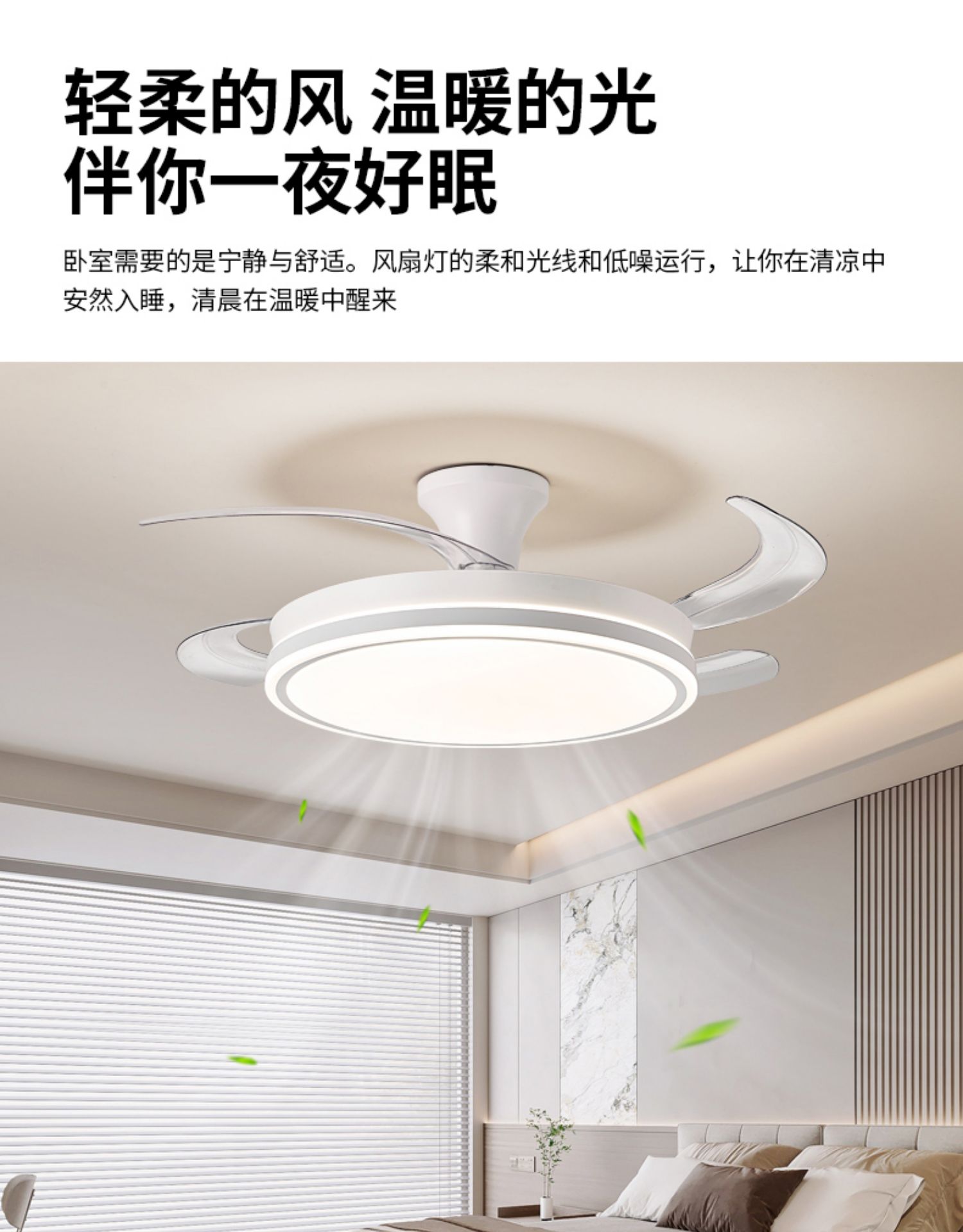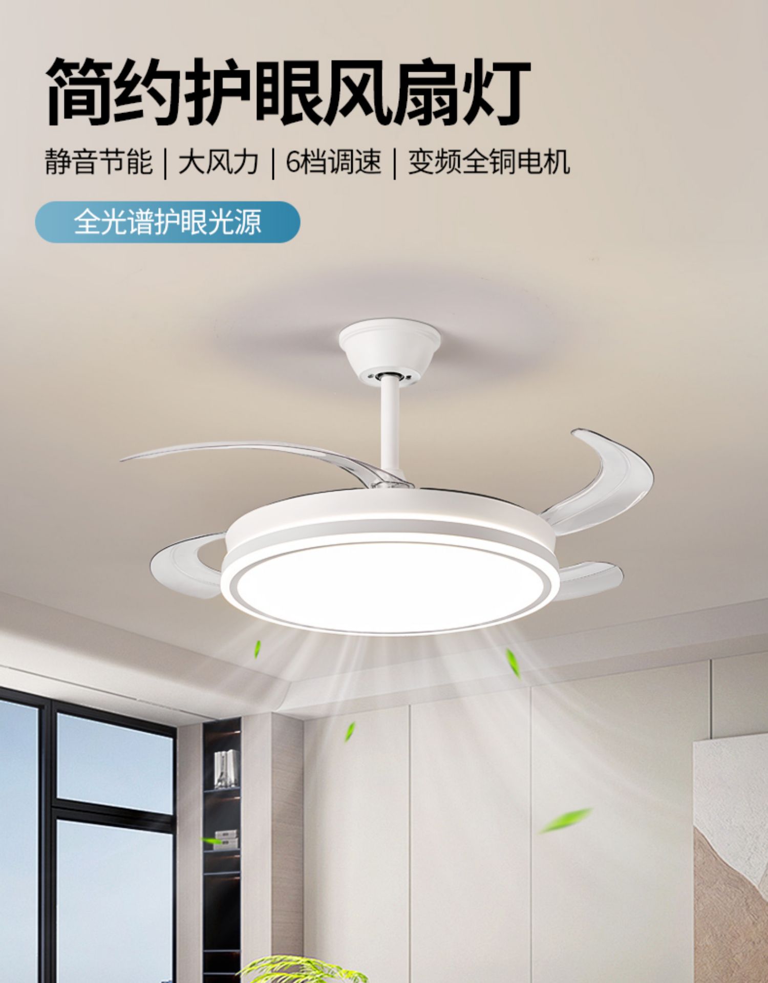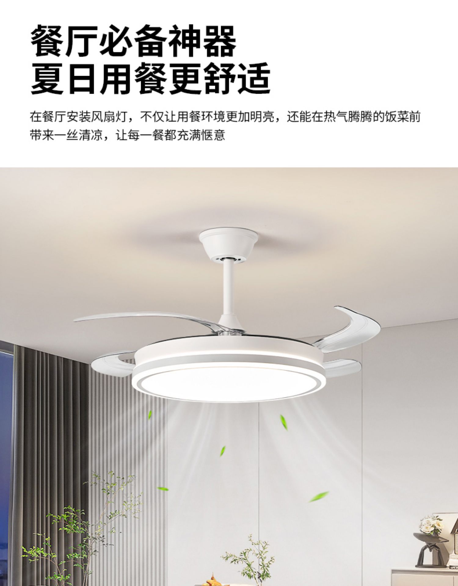 顾家隐形风扇灯吊扇灯家用餐厅卧室吸顶灯静音风扇吊灯中山灯具