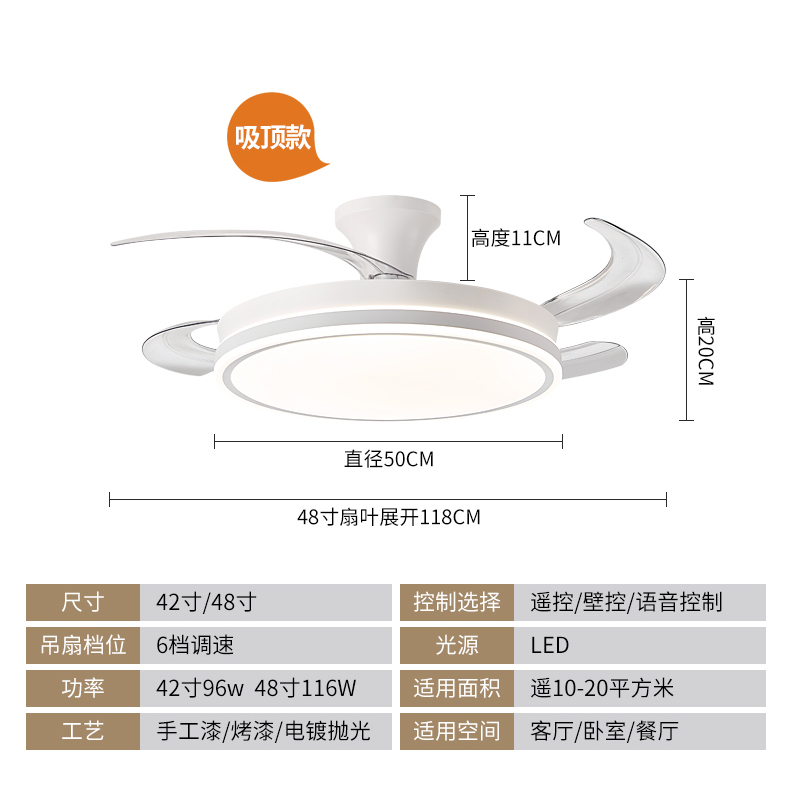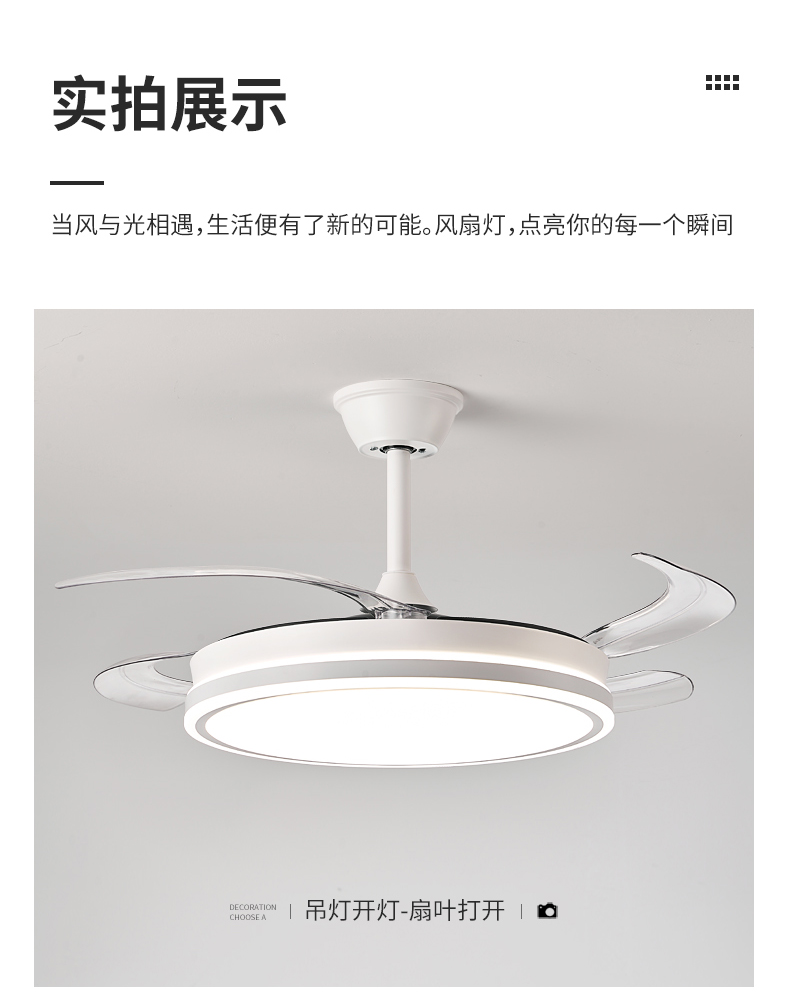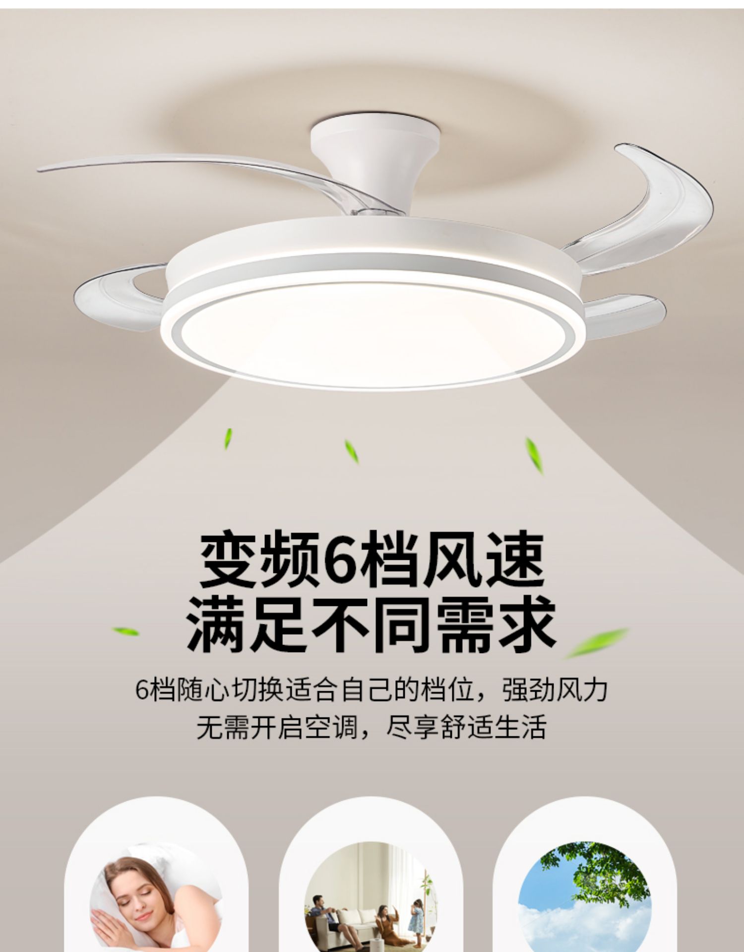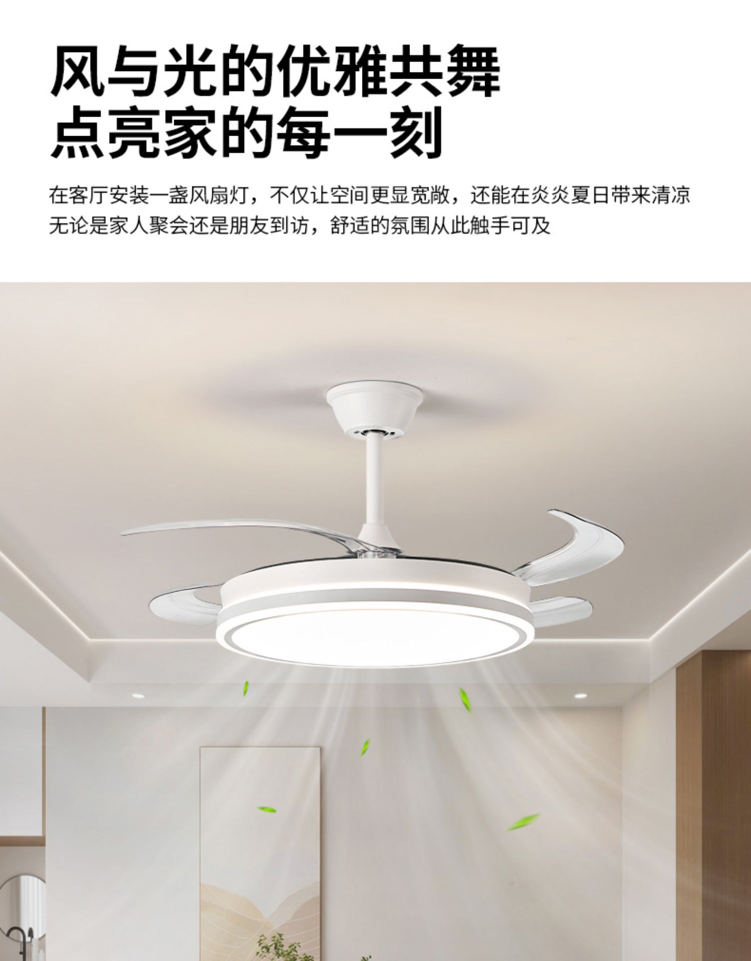 顾家隐形风扇灯吊扇灯家用餐厅卧室吸顶灯静音风扇吊灯中山灯具
