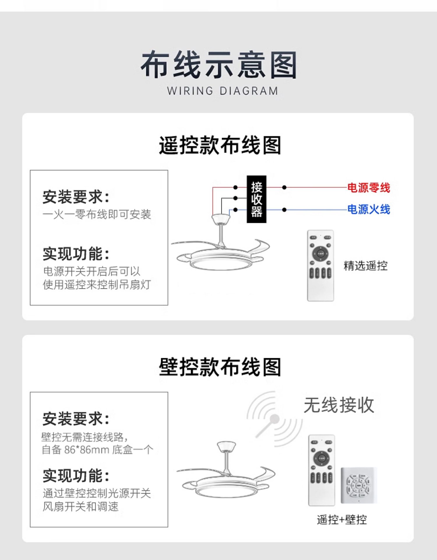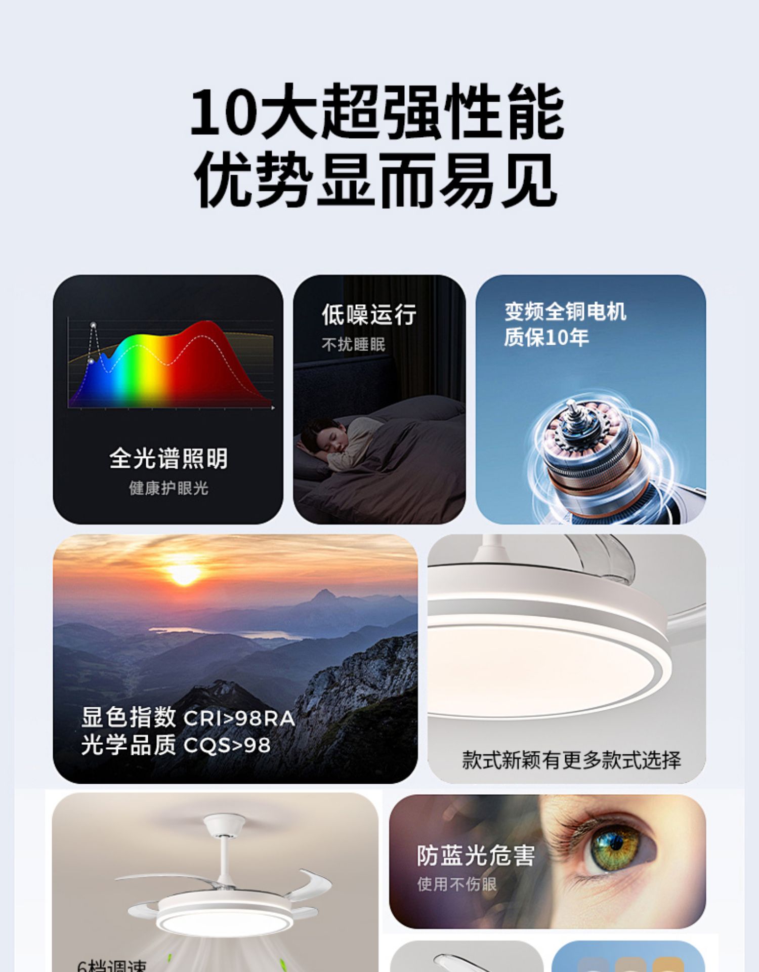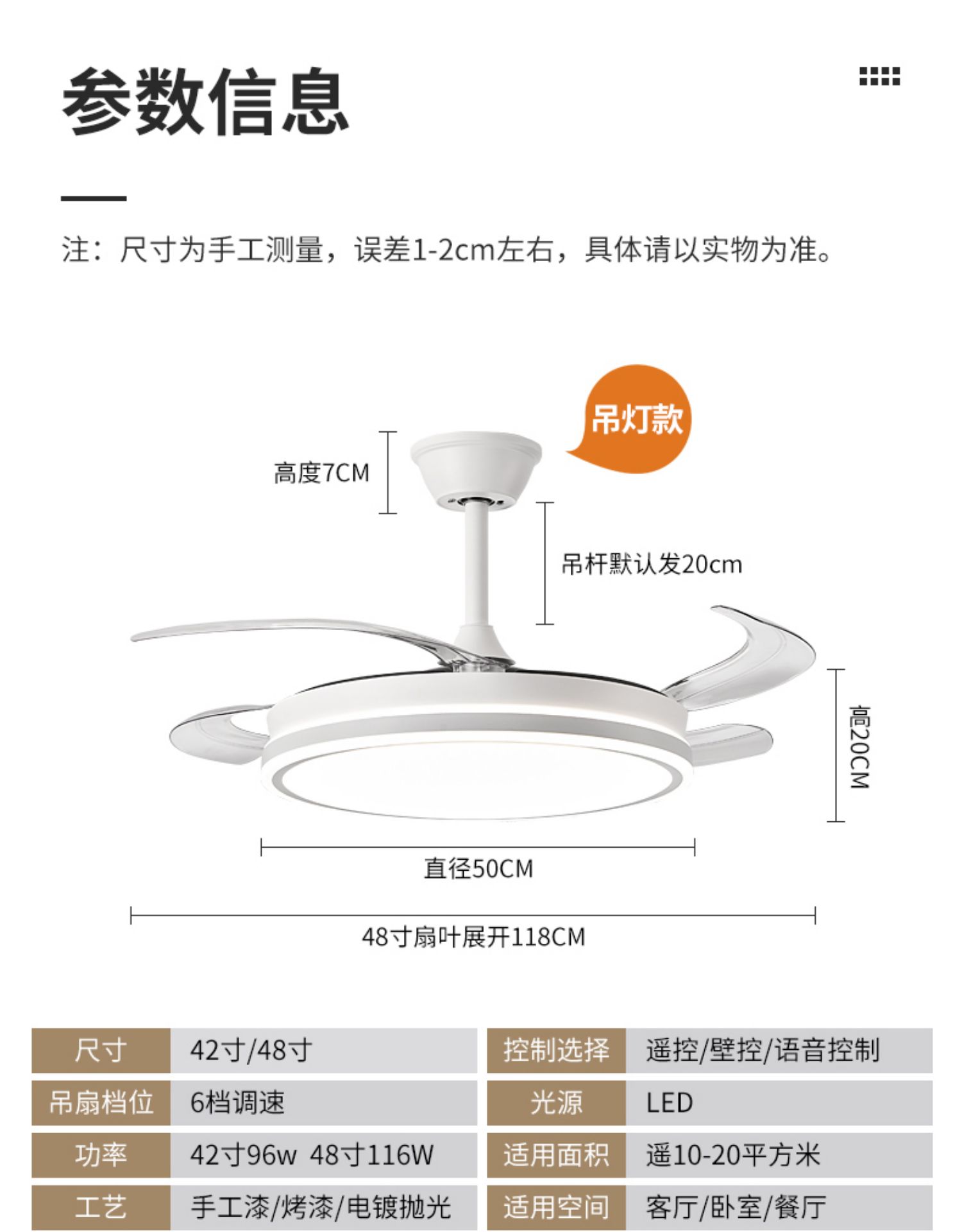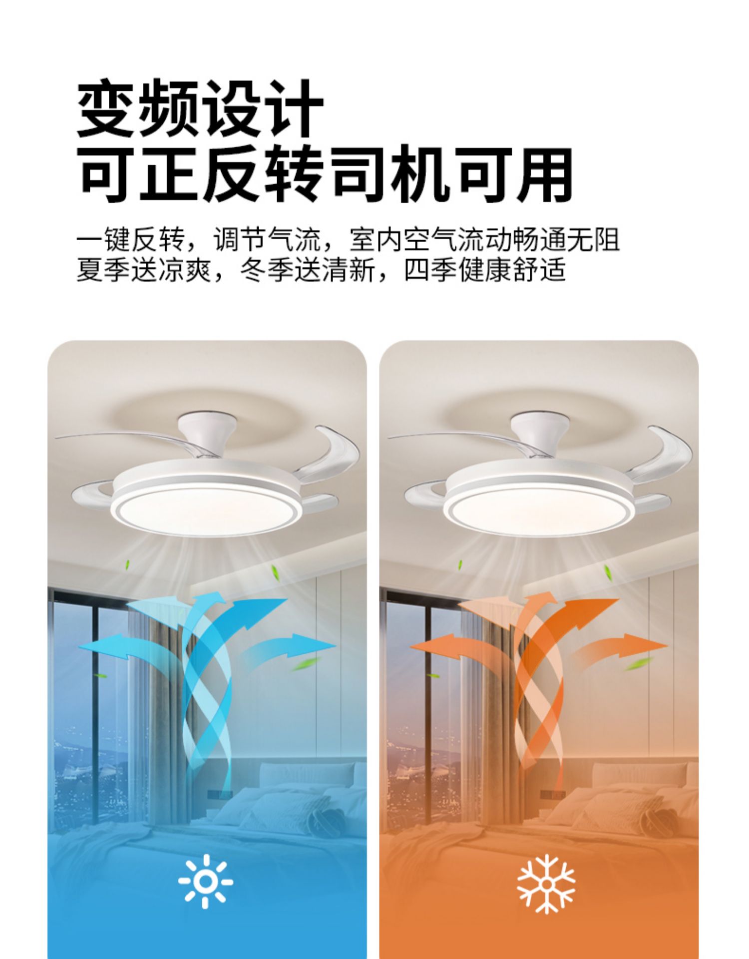 顾家隐形风扇灯吊扇灯家用餐厅卧室吸顶灯静音风扇吊灯中山灯具