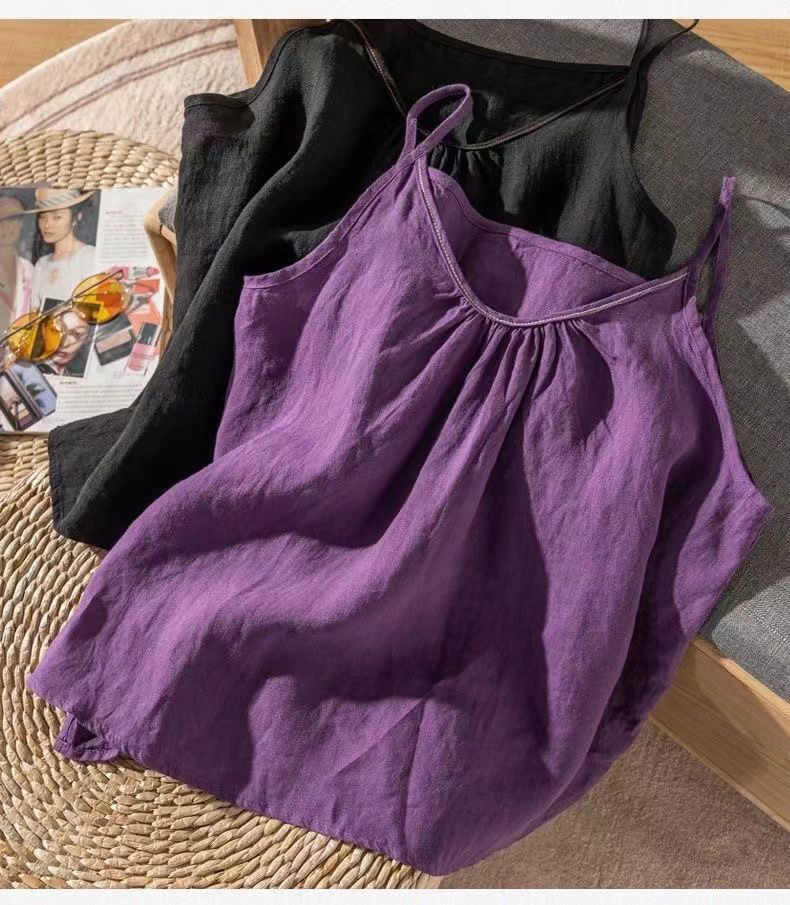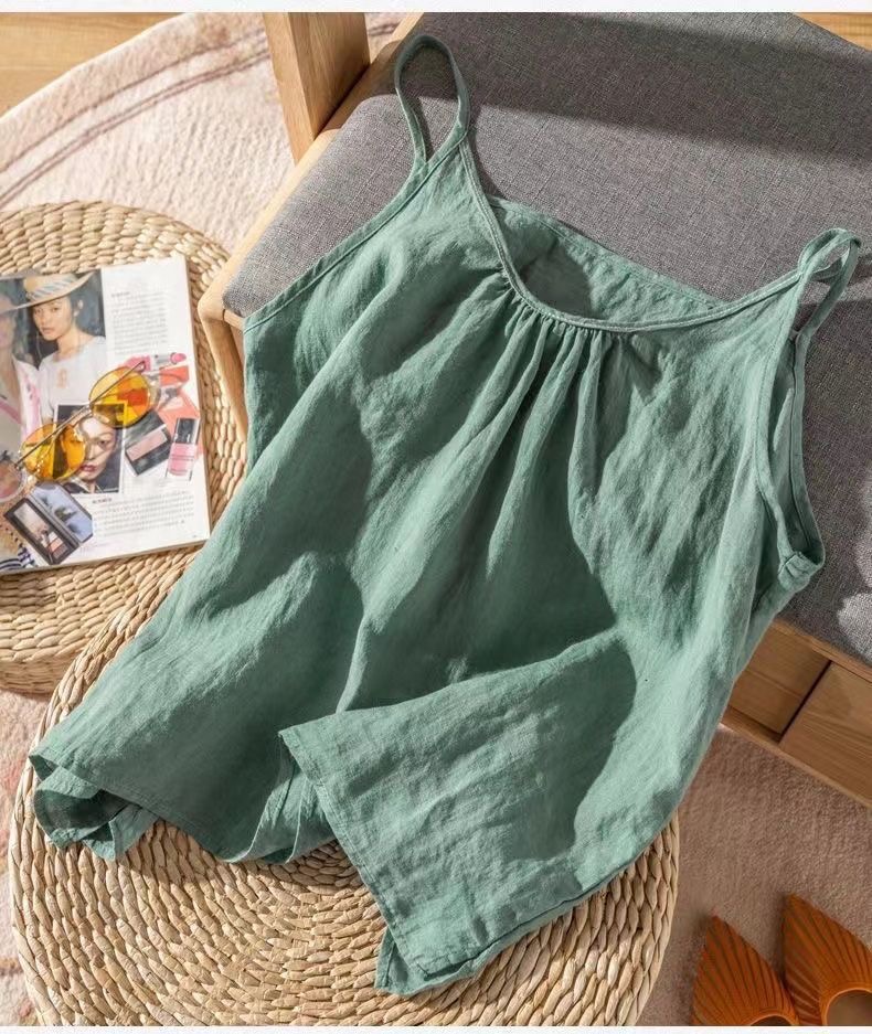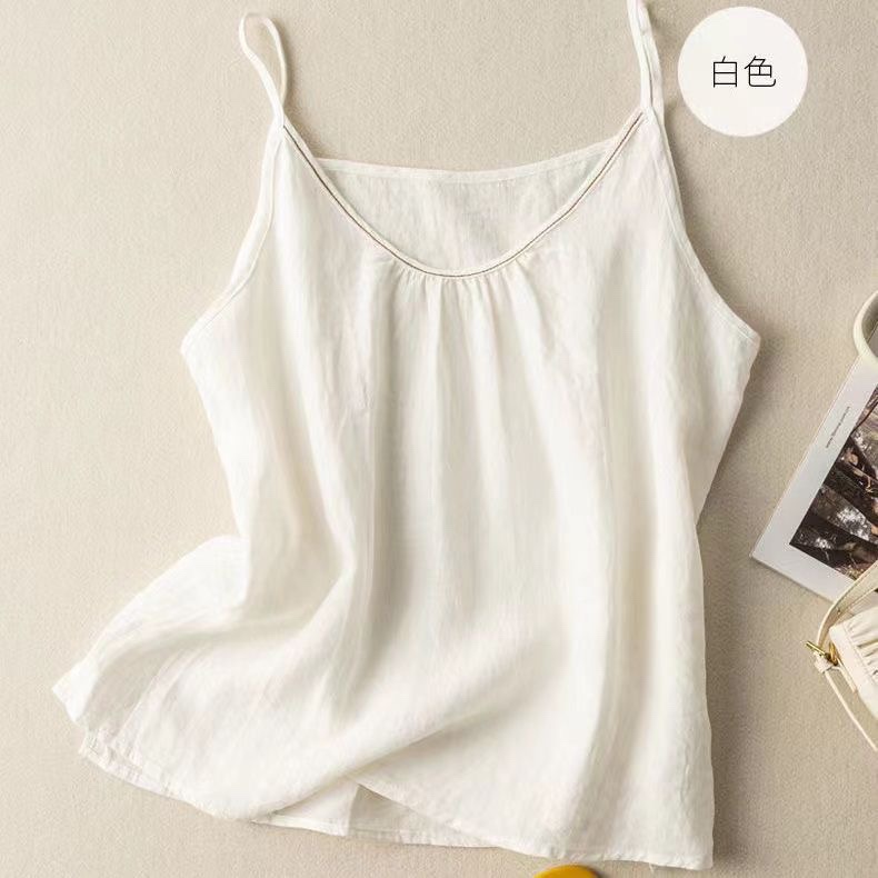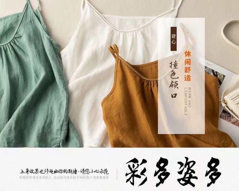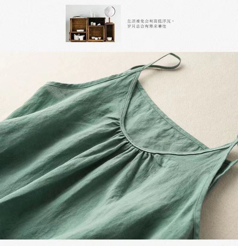 夏季纯棉吊带背心女装棉麻纯色打底外穿文艺复古薄款宽松内搭上衣