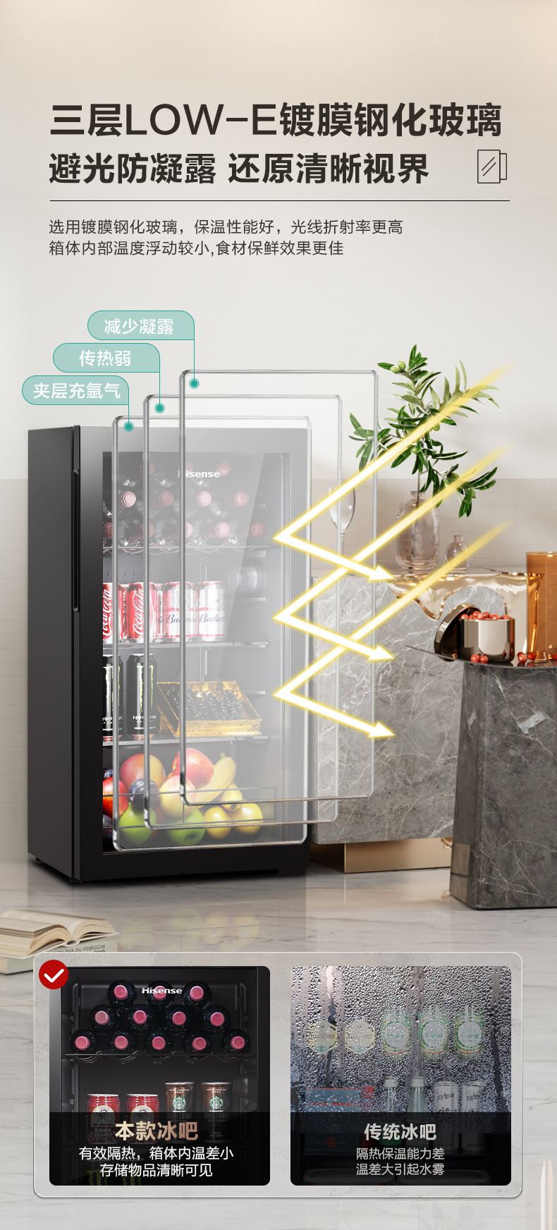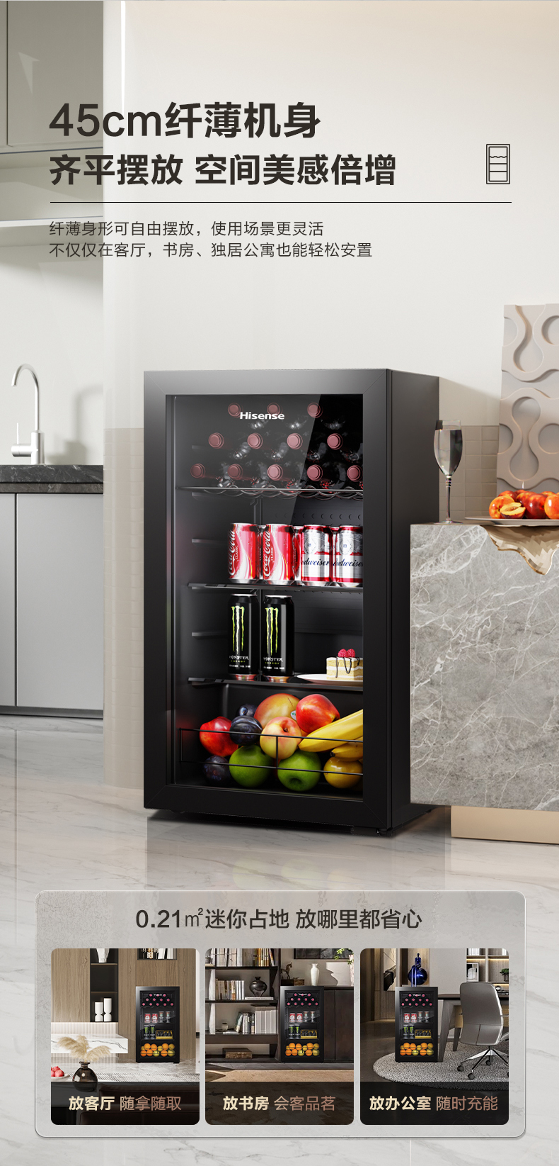 海信93L升冰吧家用小型商用客厅红酒柜茶叶柜冰箱低噪冷藏冷柜