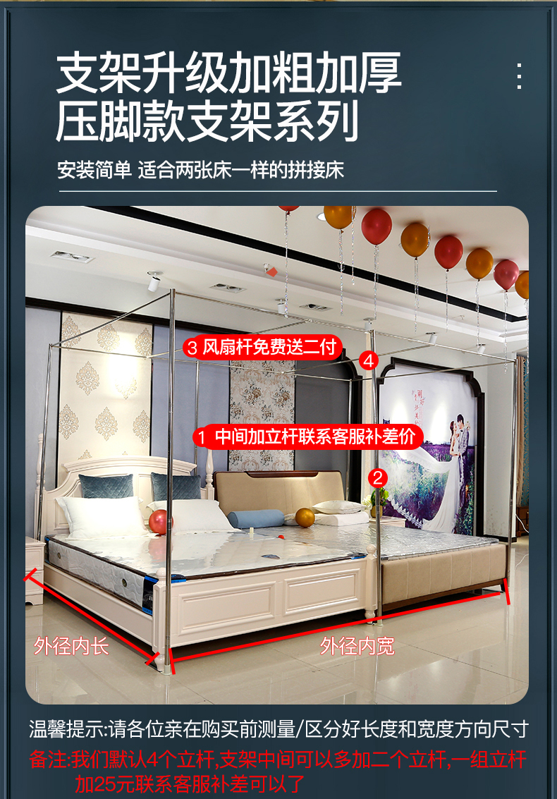 定做落地加粗不锈钢大小床拼接定制加大加宽榻榻米炕床全包围蚊帐