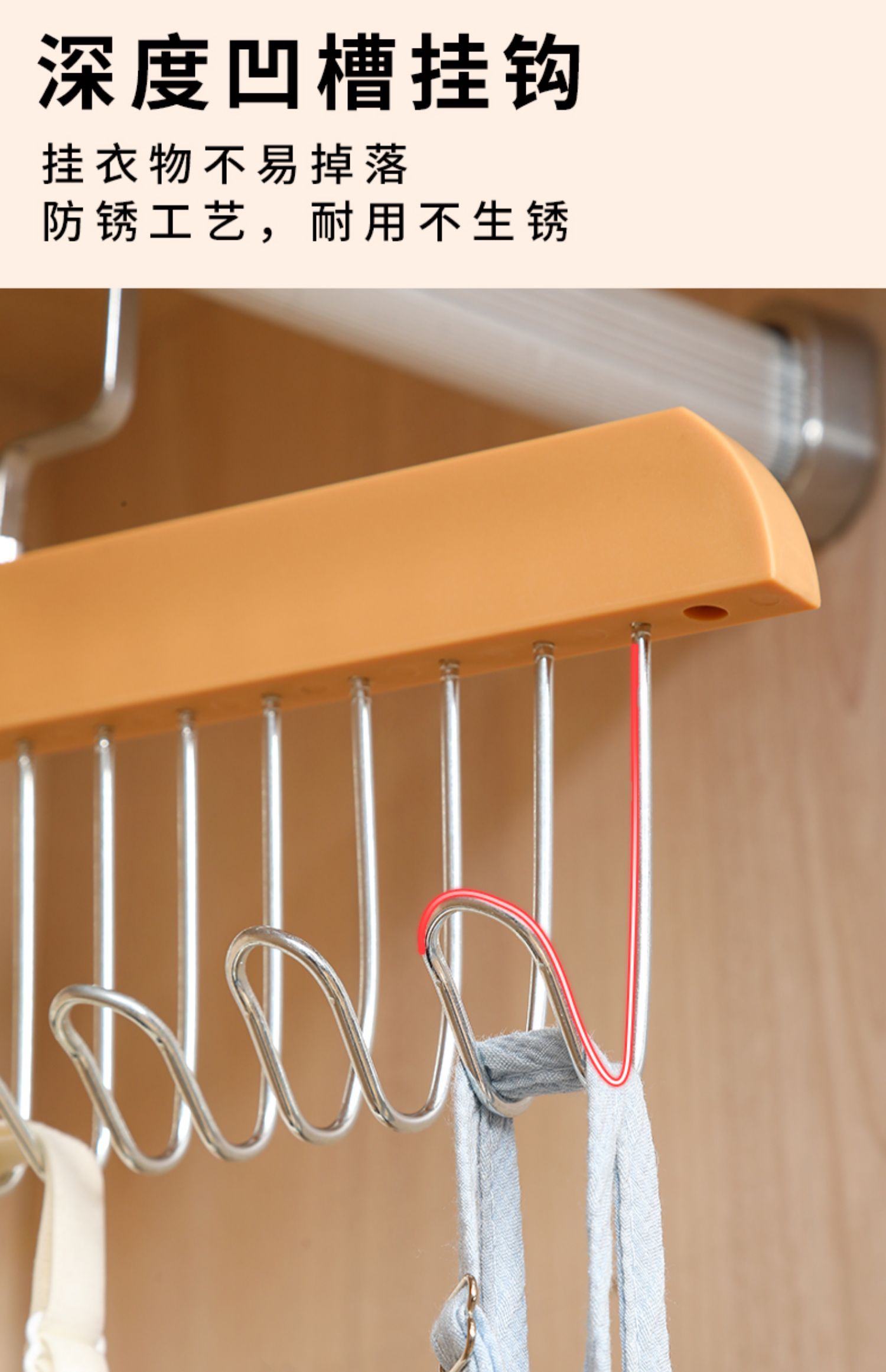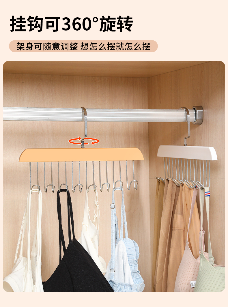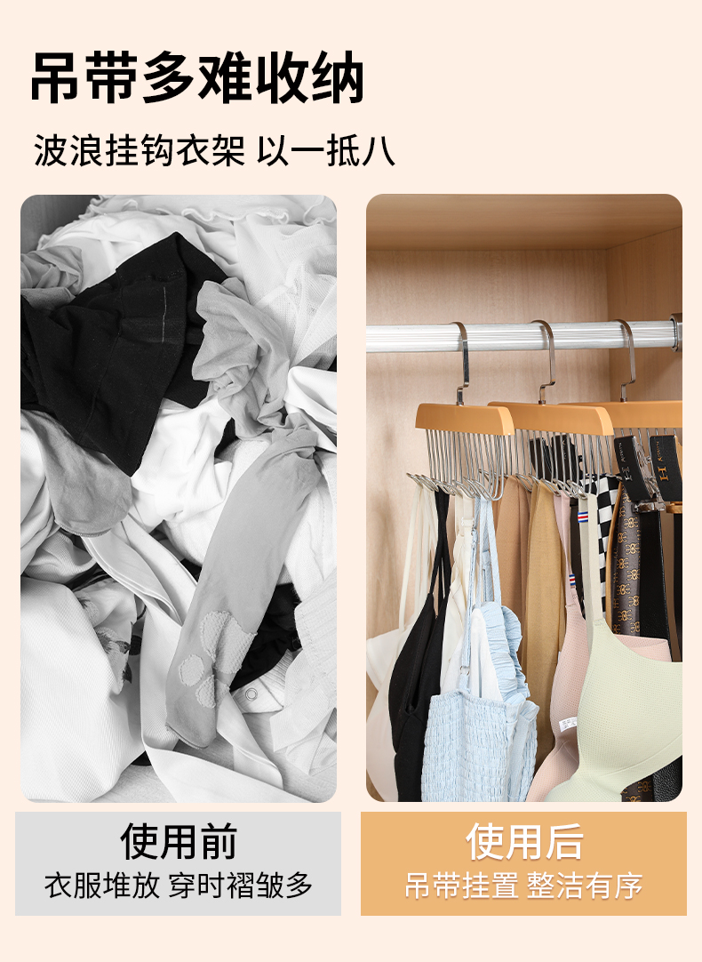 8钩木质吊带衣架多功能内衣背心收纳神器家用宿舍实木挂钩波浪晾
