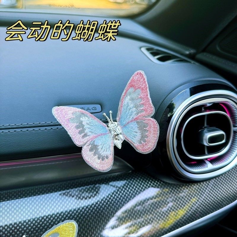 抖音爆款会动的蝴蝶汽车摆件车载车内饰品摆件中控台治愈系装饰品