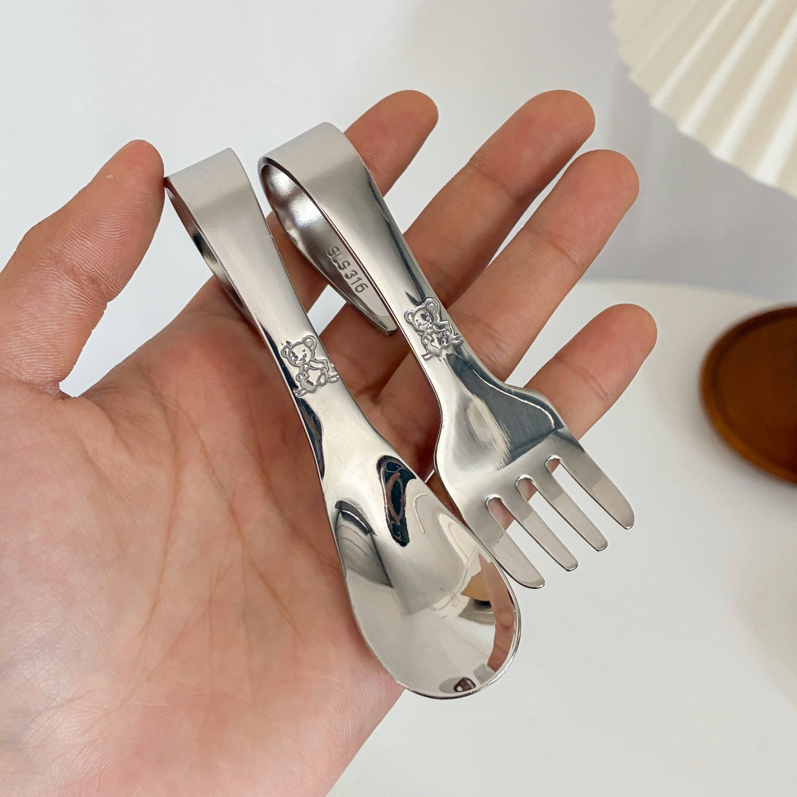 外贸原单304训练勺叉婴儿宝宝辅食勺儿童辅食弯柄勺子叉子餐具ins