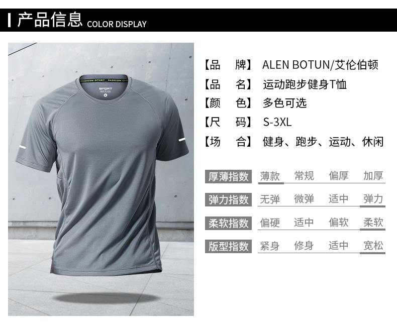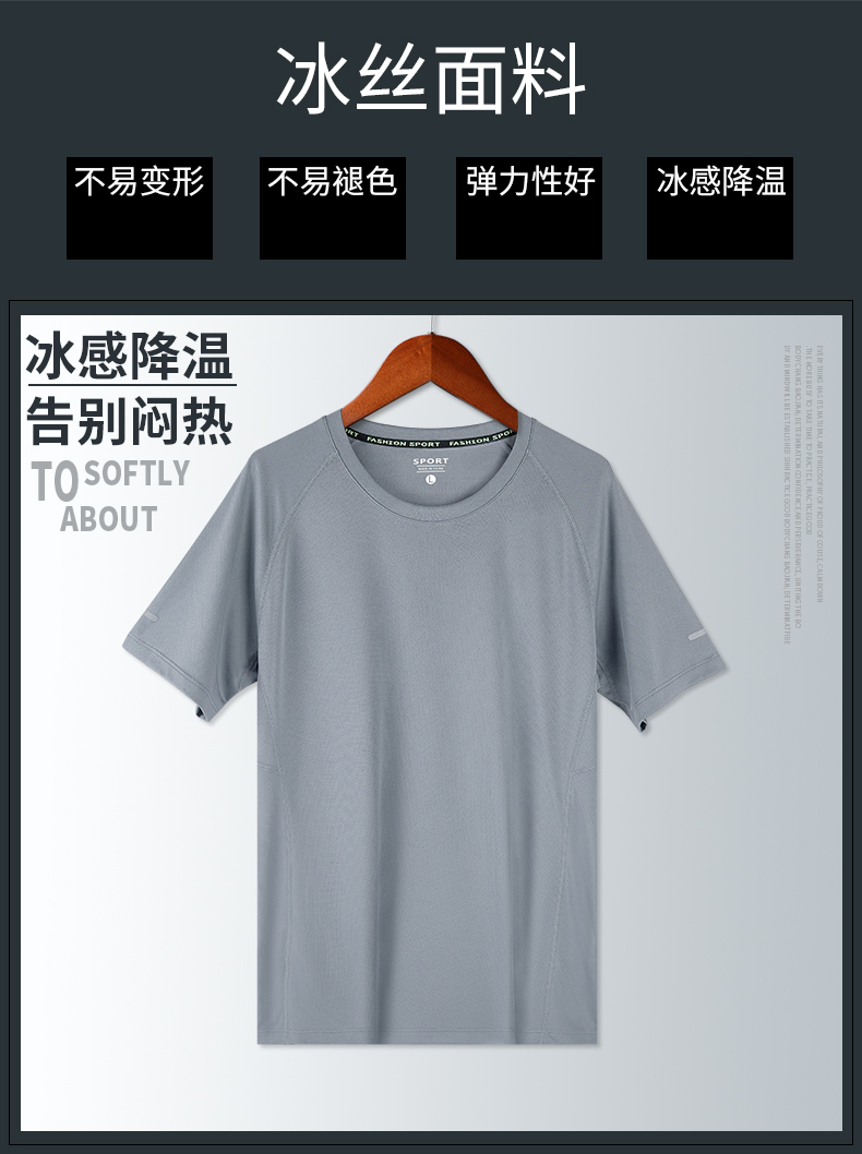 运动t恤男士速干衣短袖冰丝夏季健身跑步套装上衣篮球训练衣服