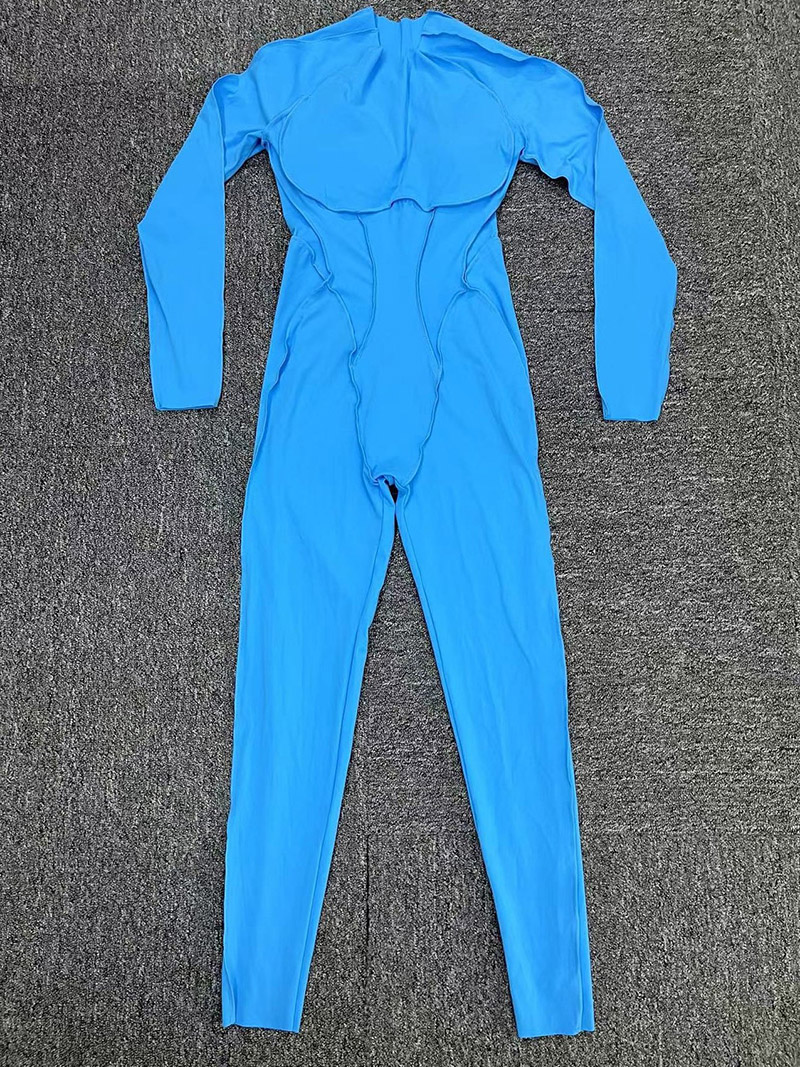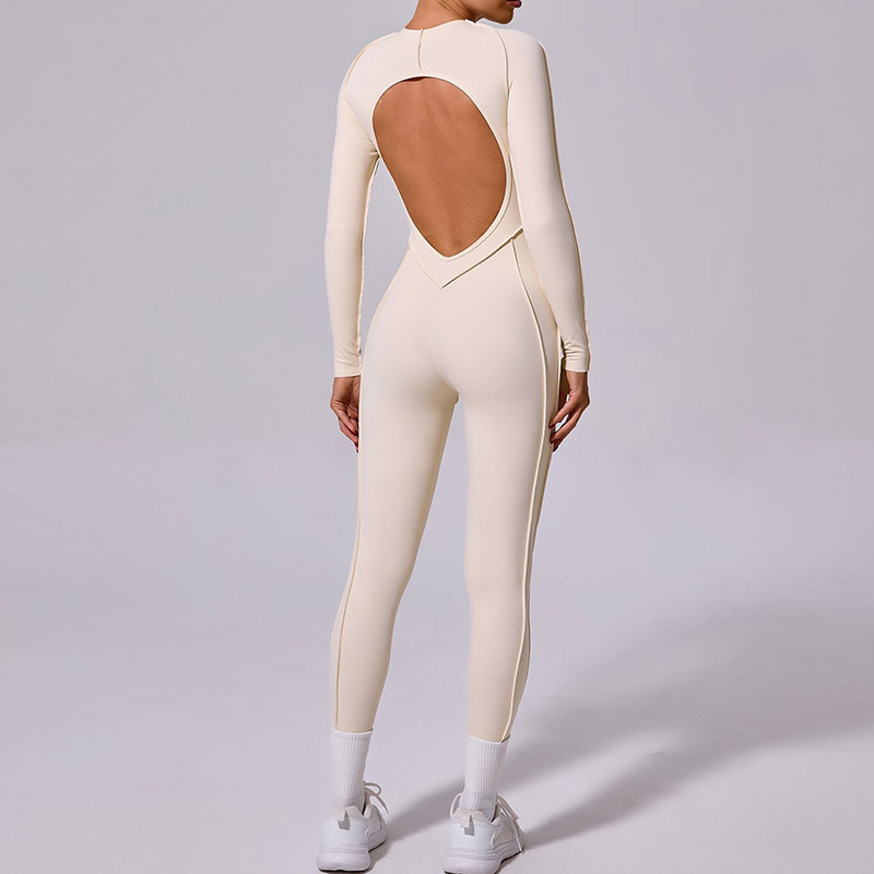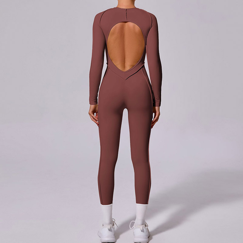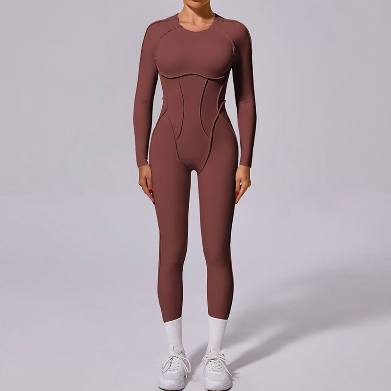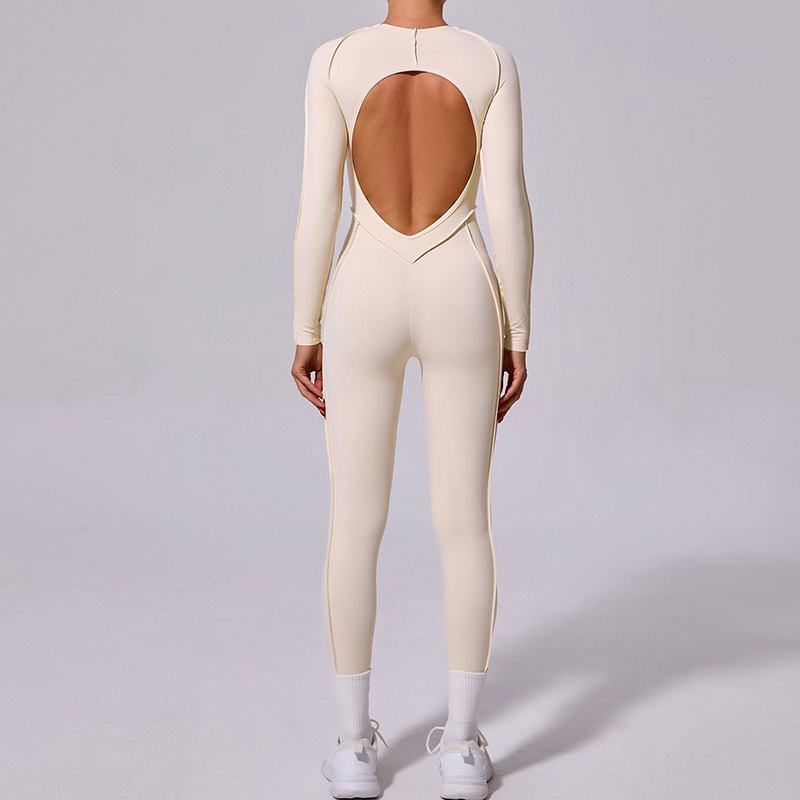 欧美立体拼缝瑜伽连体服女一体式运动露背速干长袖长裤健身连身衣