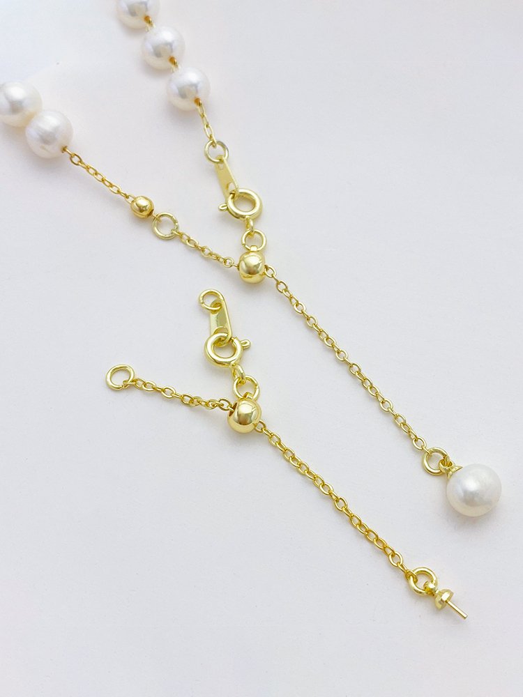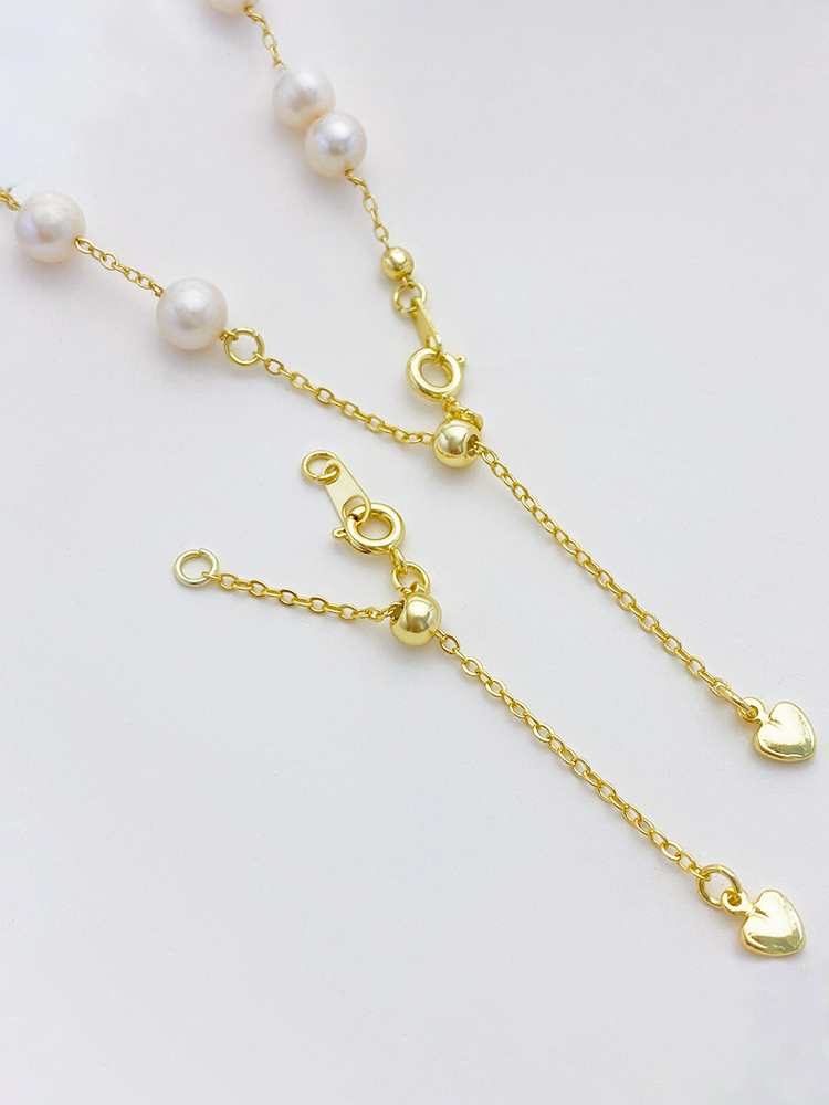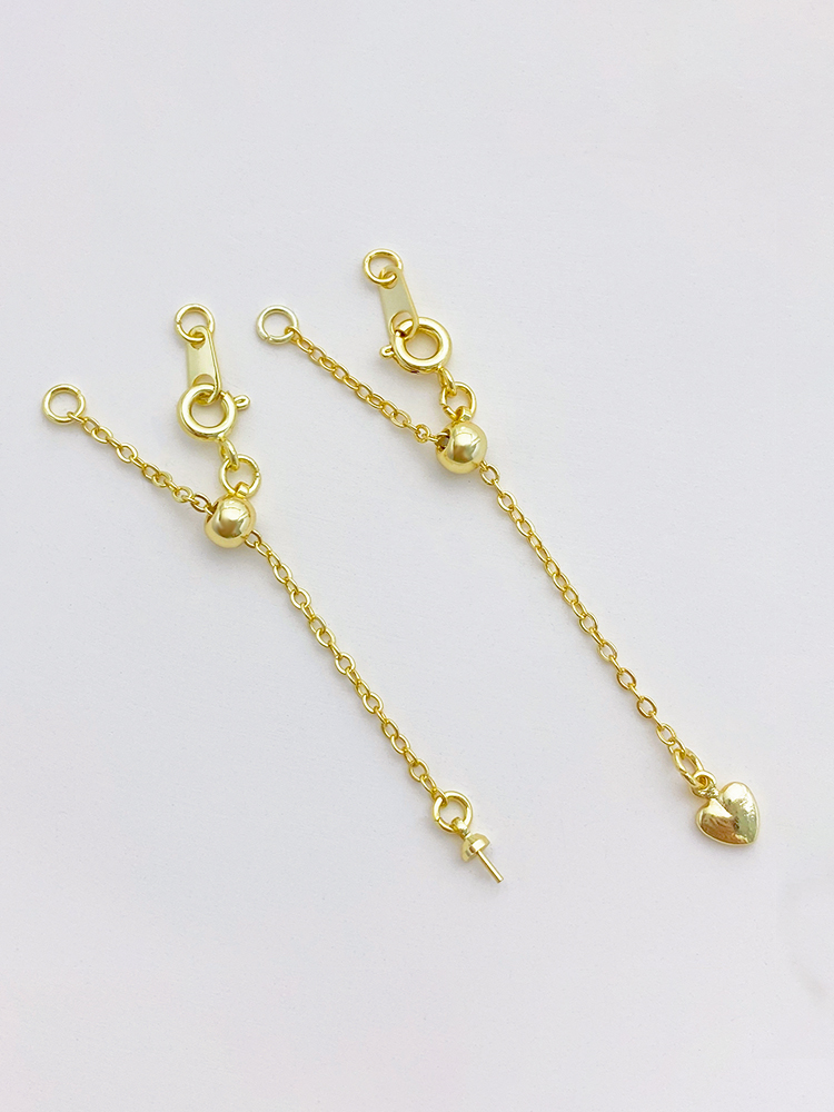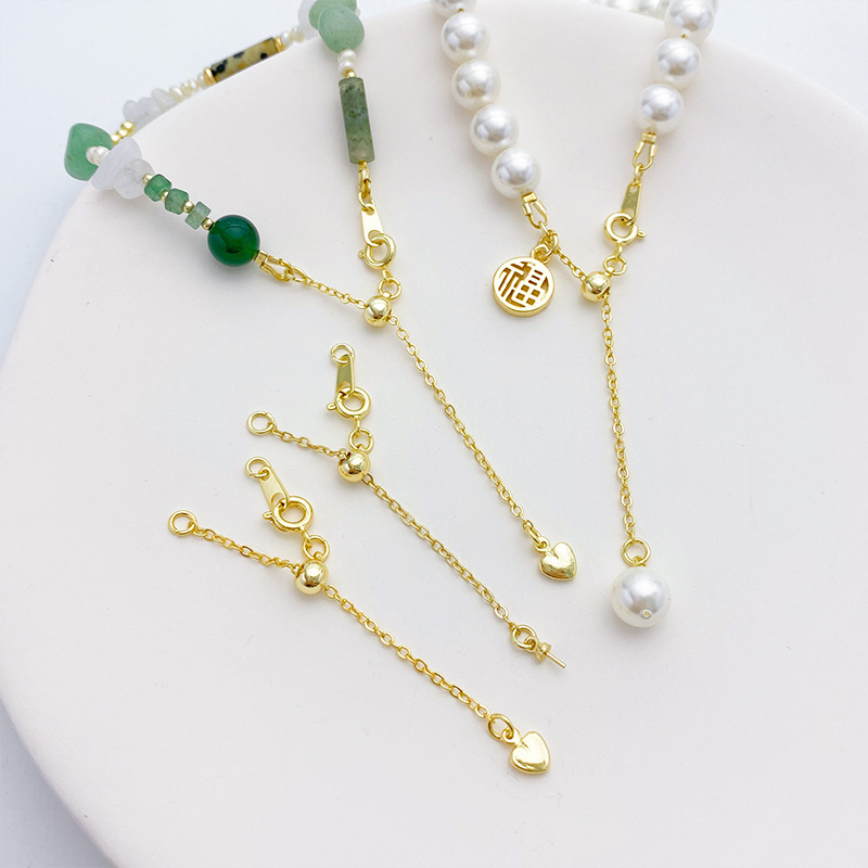 14K包金保色调节爱心尾链挂珍珠托延长链diy手工手链项链收尾配件