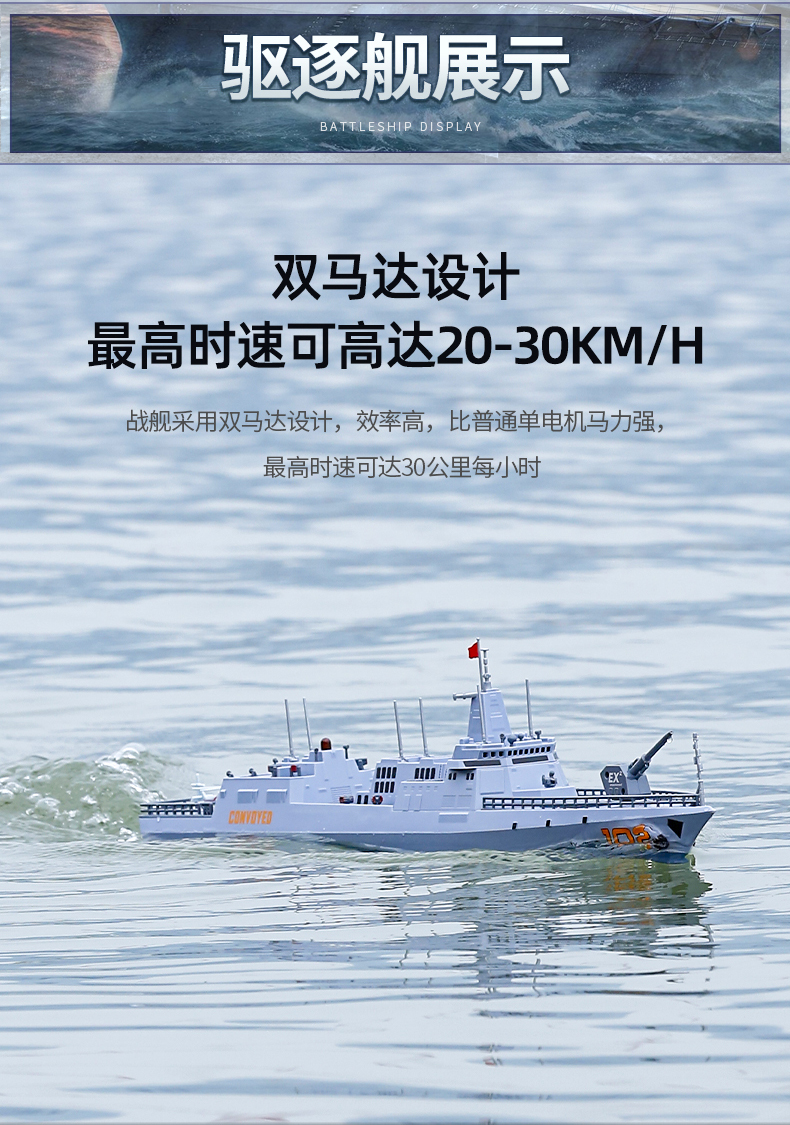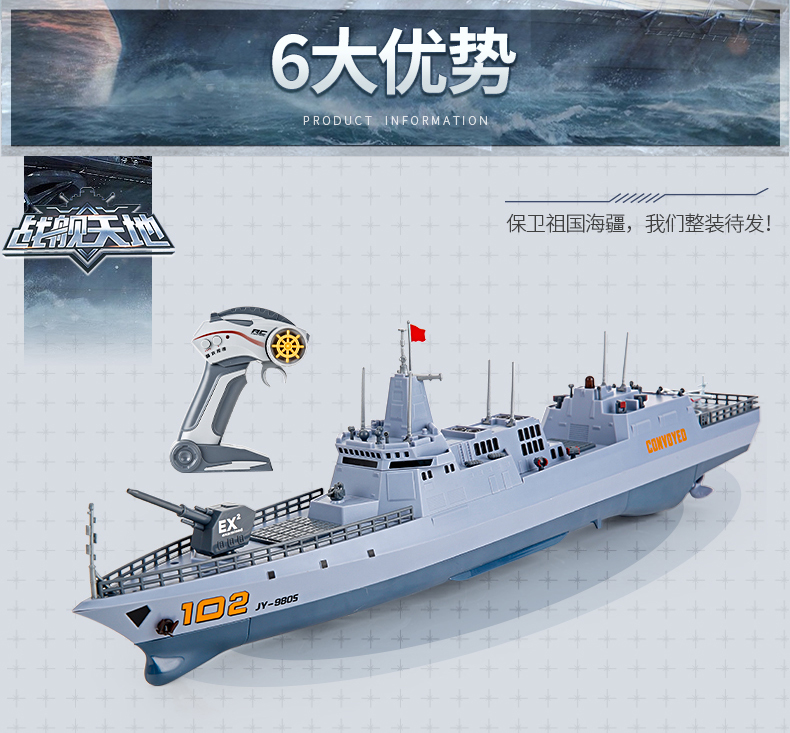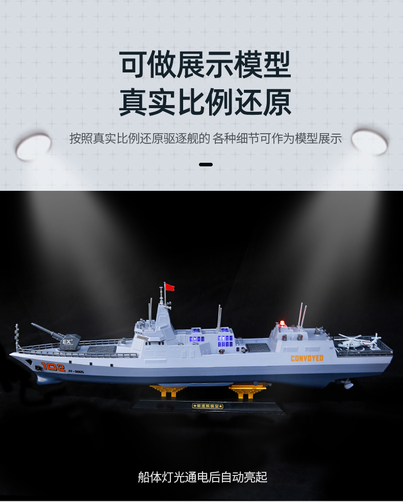 新款遥控驱逐舰男孩可下水玩具船仿真电动战舰军舰拉萨舰军事模型