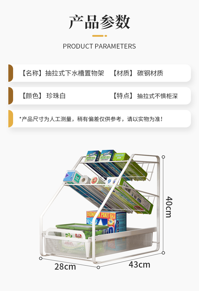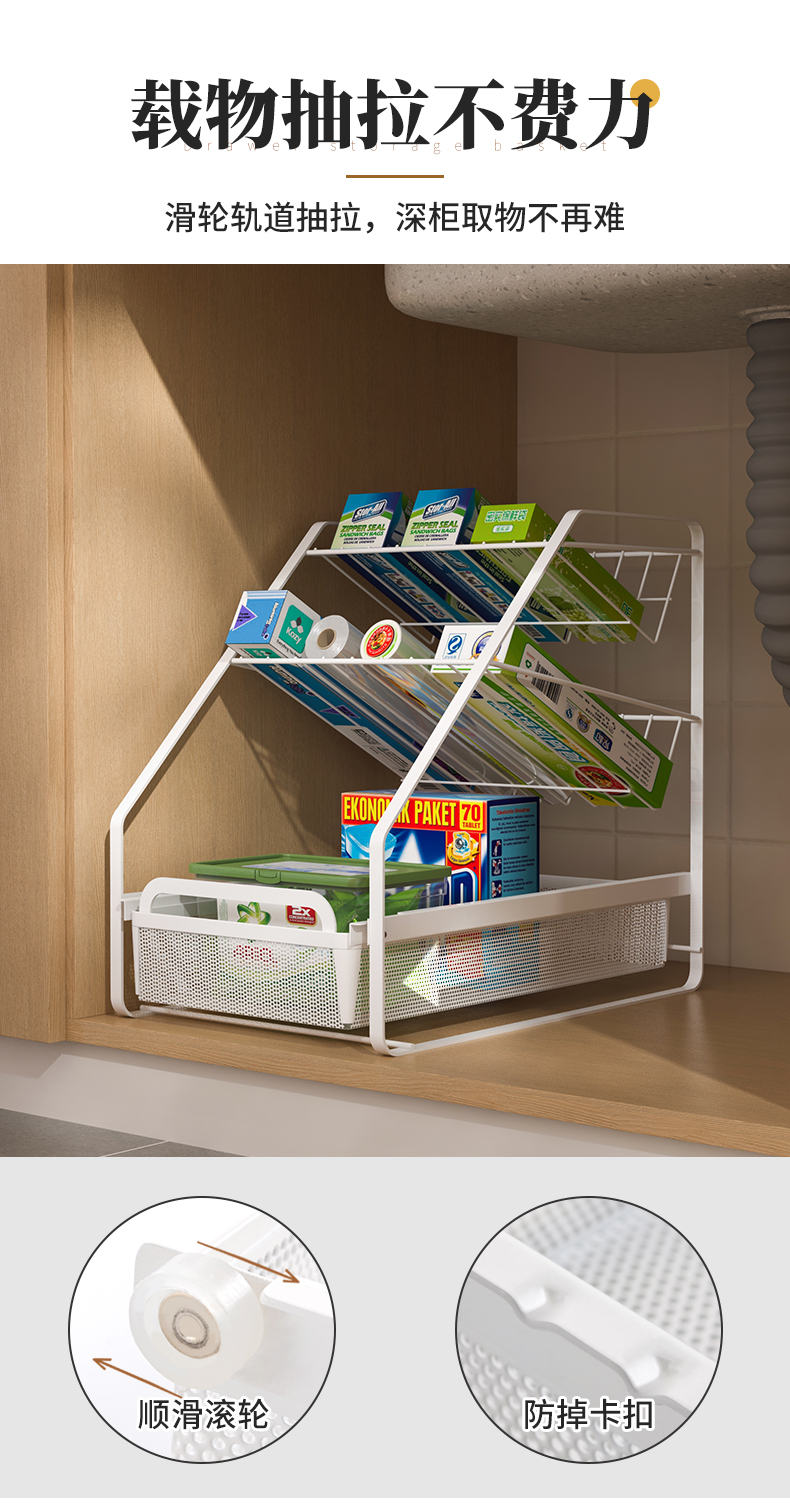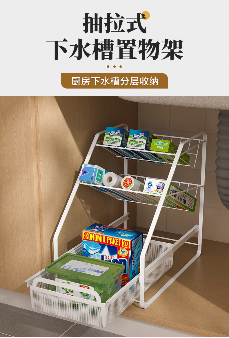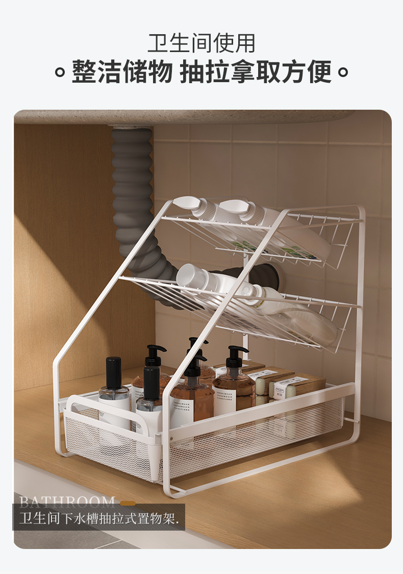 下水槽置物架抽拉式厨房橱柜分层架台面浴室密网拉篮抽屉式收纳盒