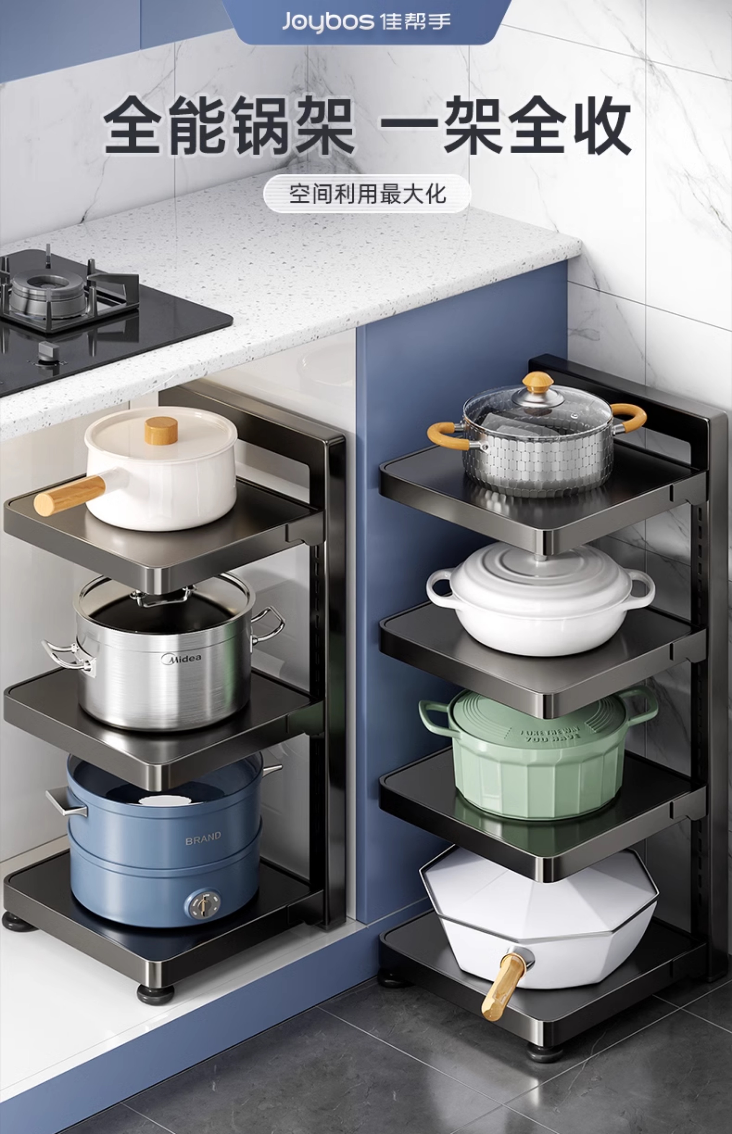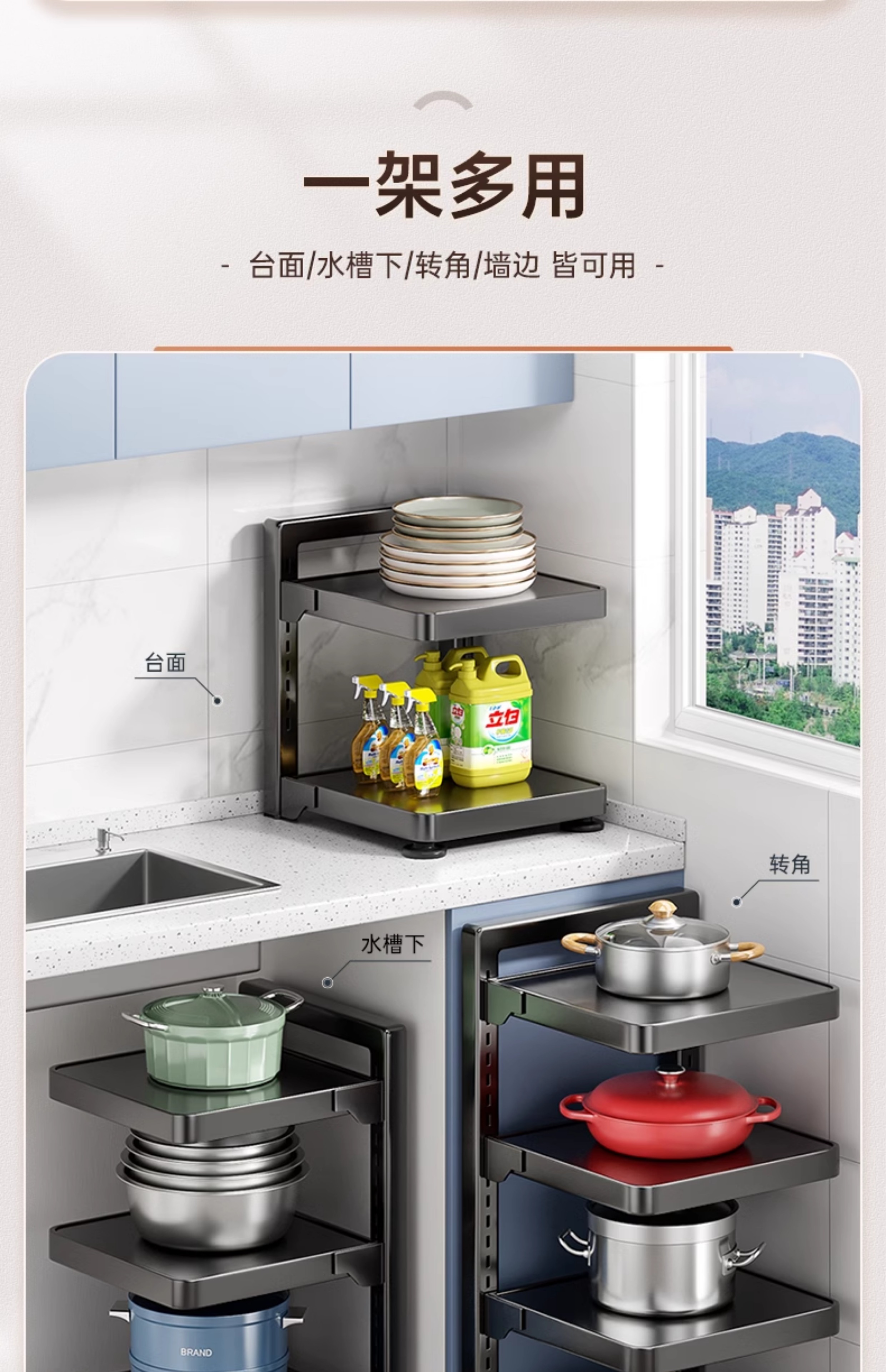 佳帮手厨房置物架家用多功能锅具收纳架多层橱柜下水槽分层放锅架