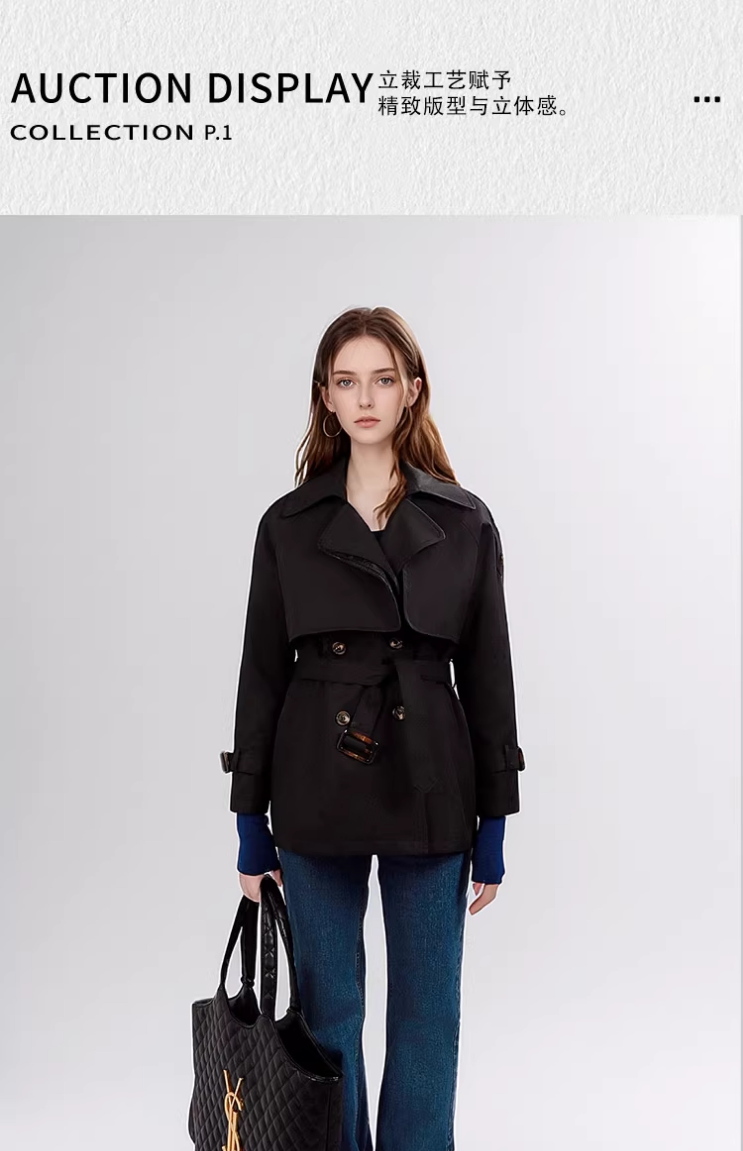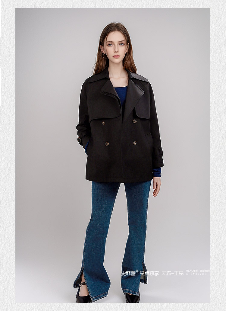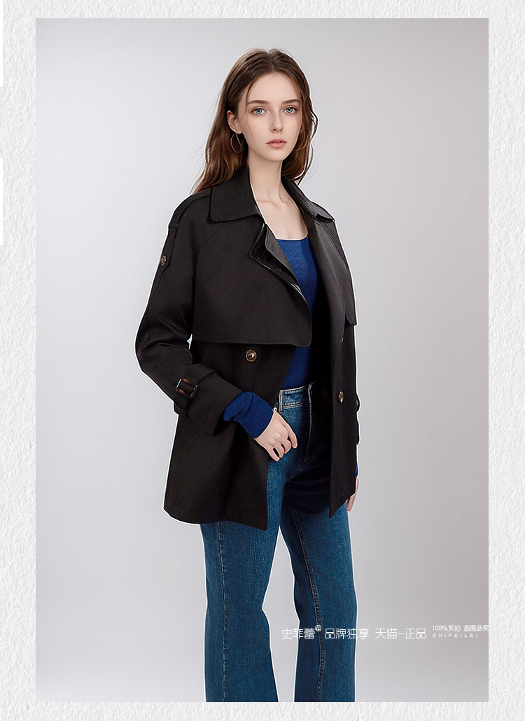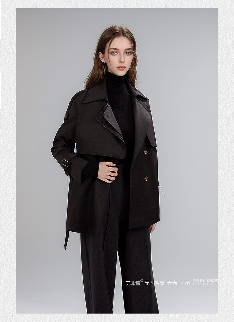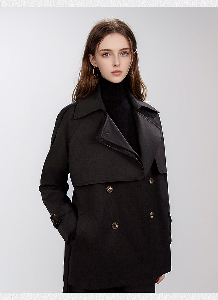 今年流行风衣外套女2024春秋小个子短款收腰款气质大衣黑色赫本风