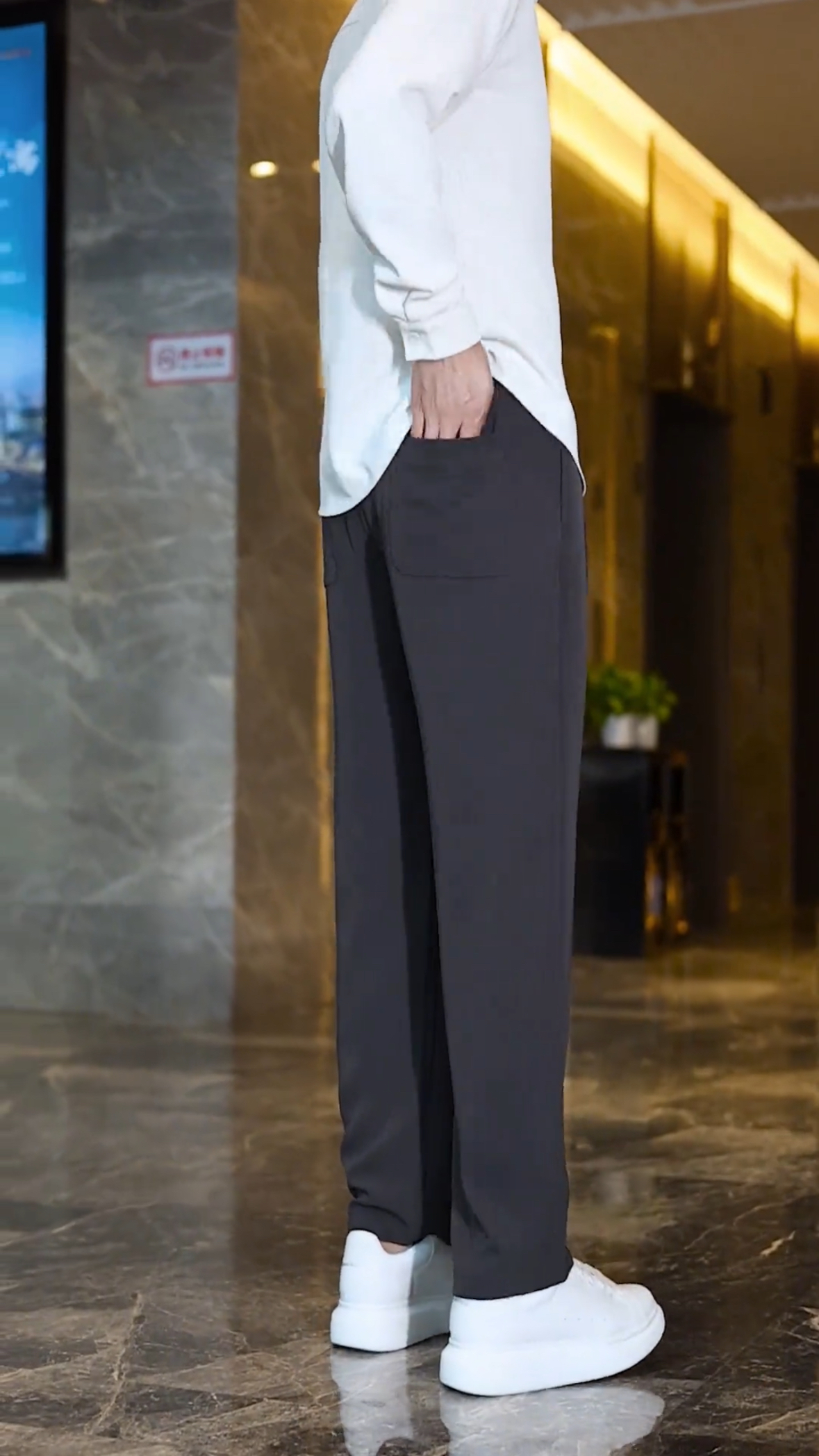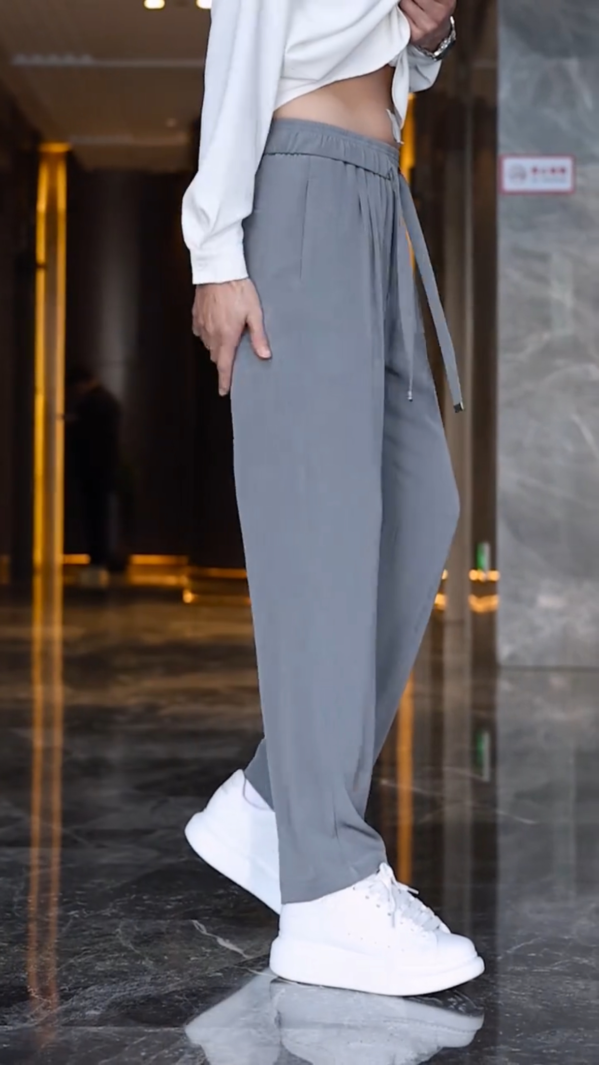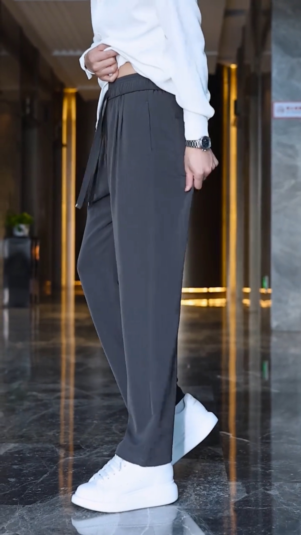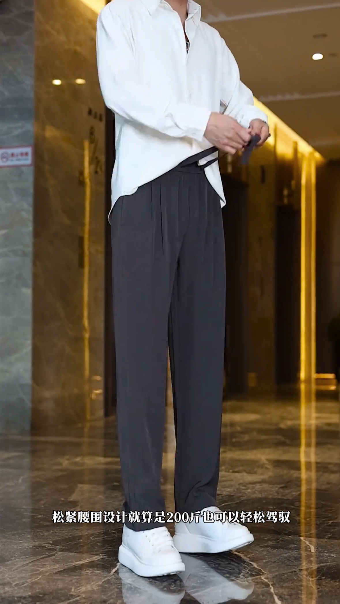 春夏新款丝滑垂感抗皱直筒西裤男简约宽松显瘦百搭透气小脚休闲裤