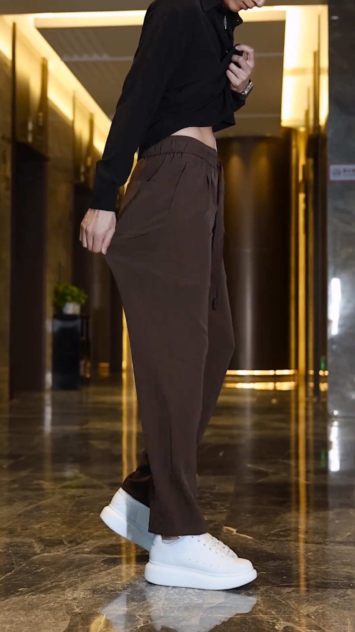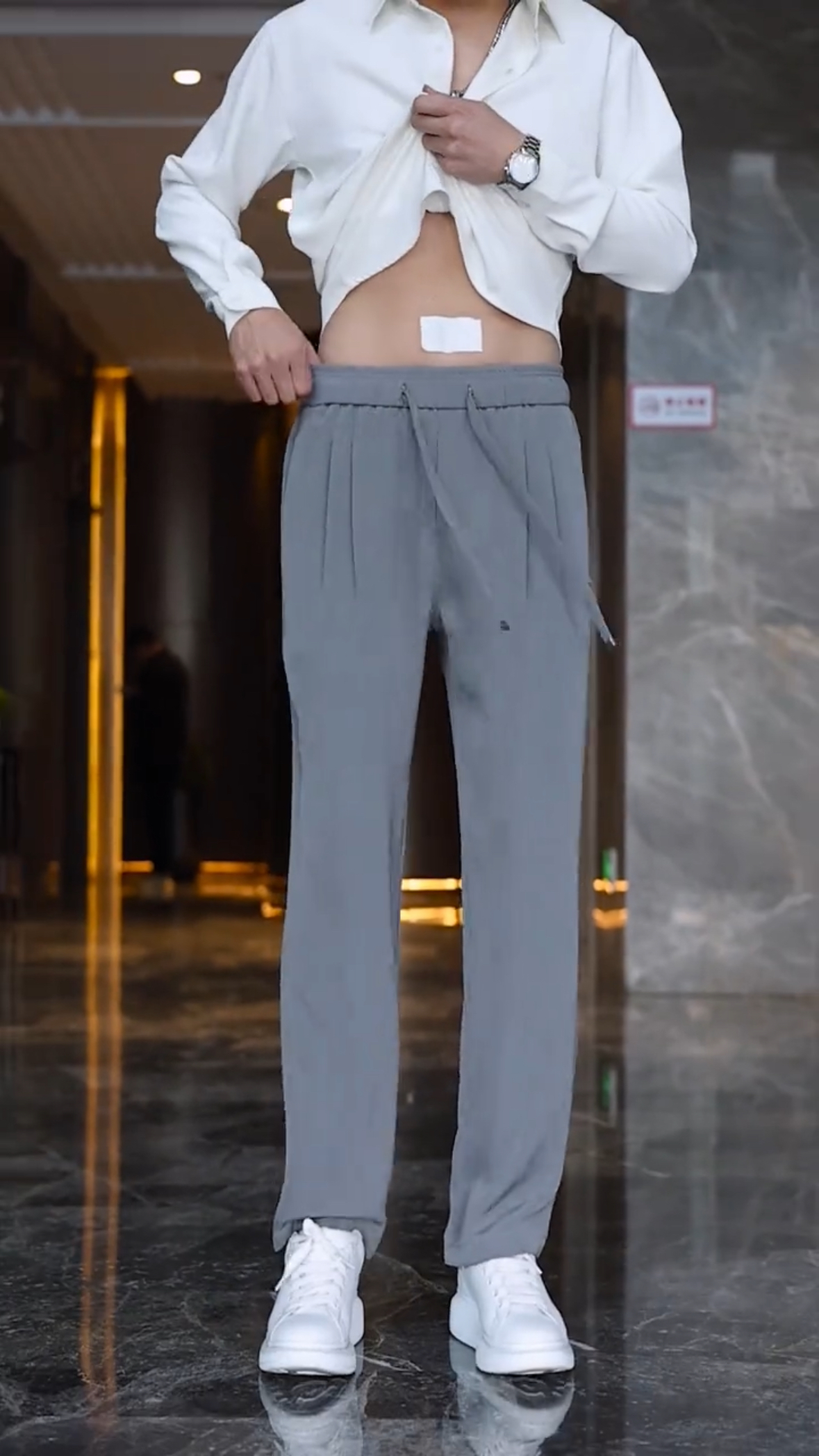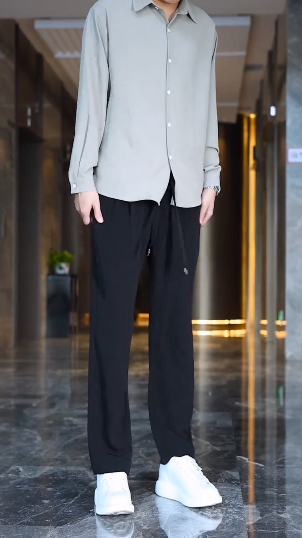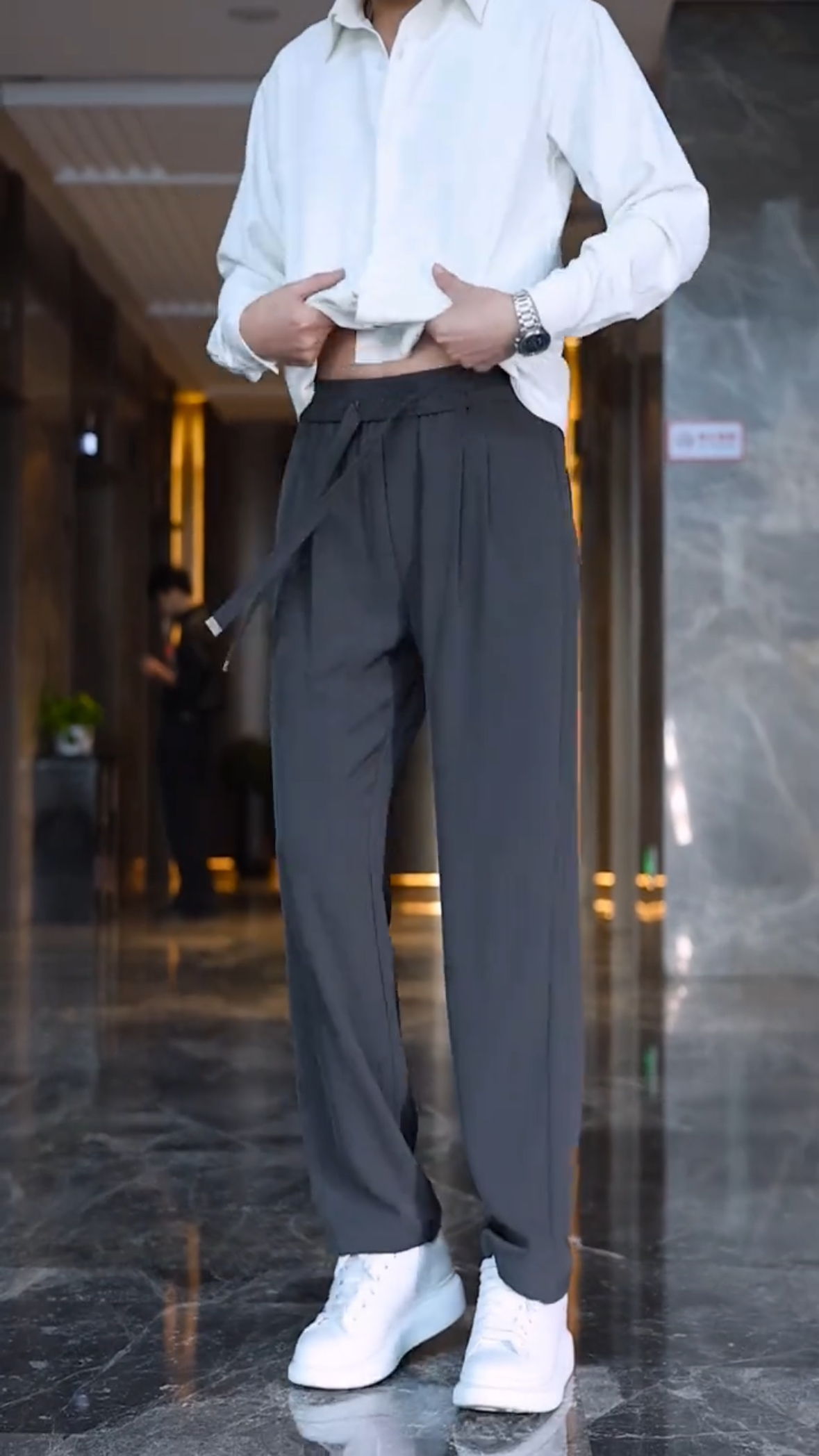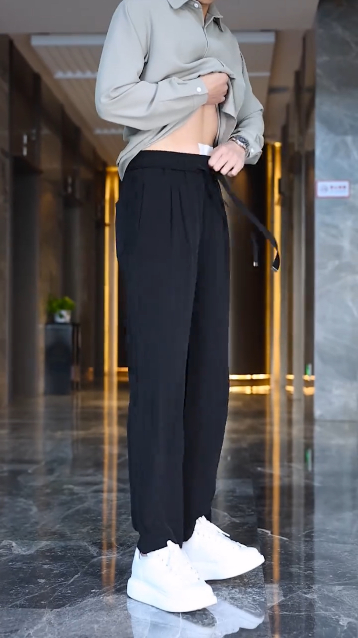 春夏新款丝滑垂感抗皱直筒西裤男简约宽松显瘦百搭透气小脚休闲裤