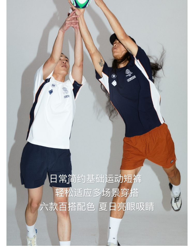 oneup 沙滩裤男女士夏季透气户外跑步速干短裤蓝色休闲运动五分裤