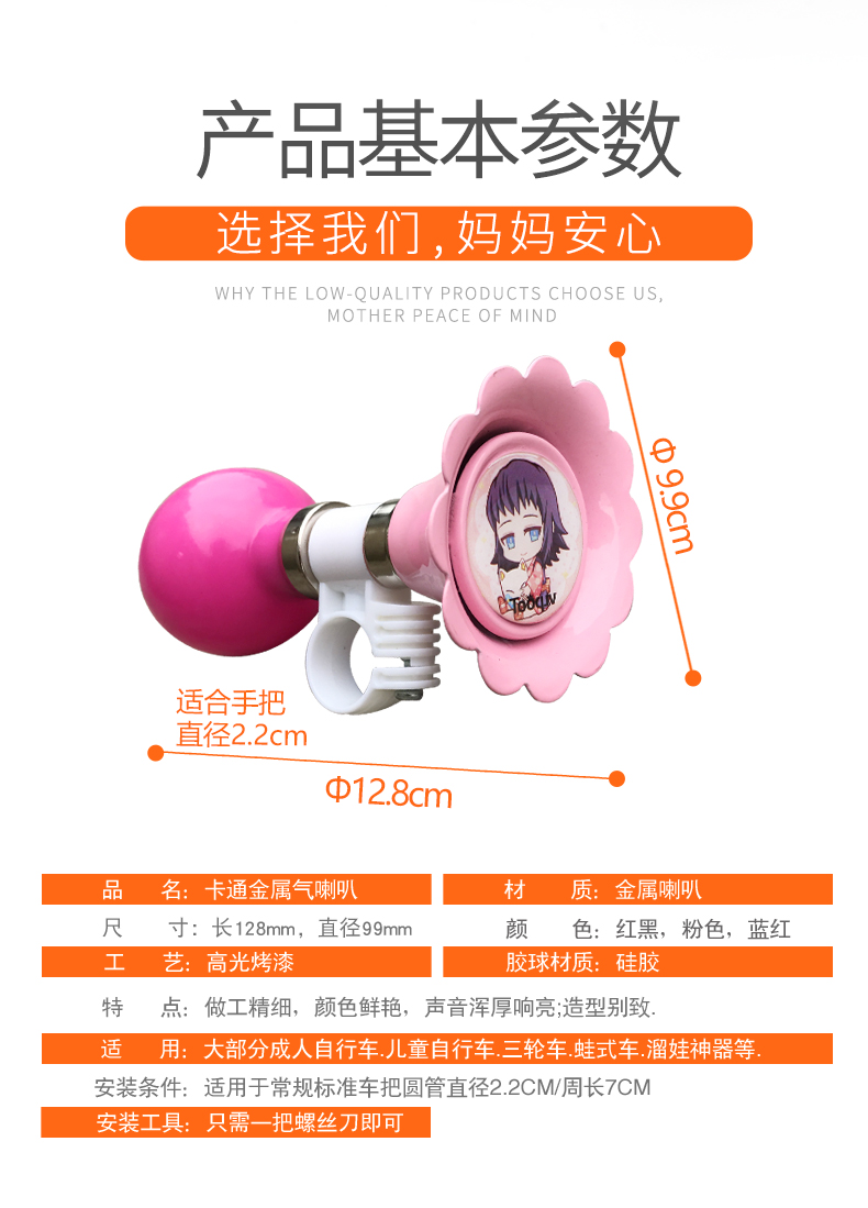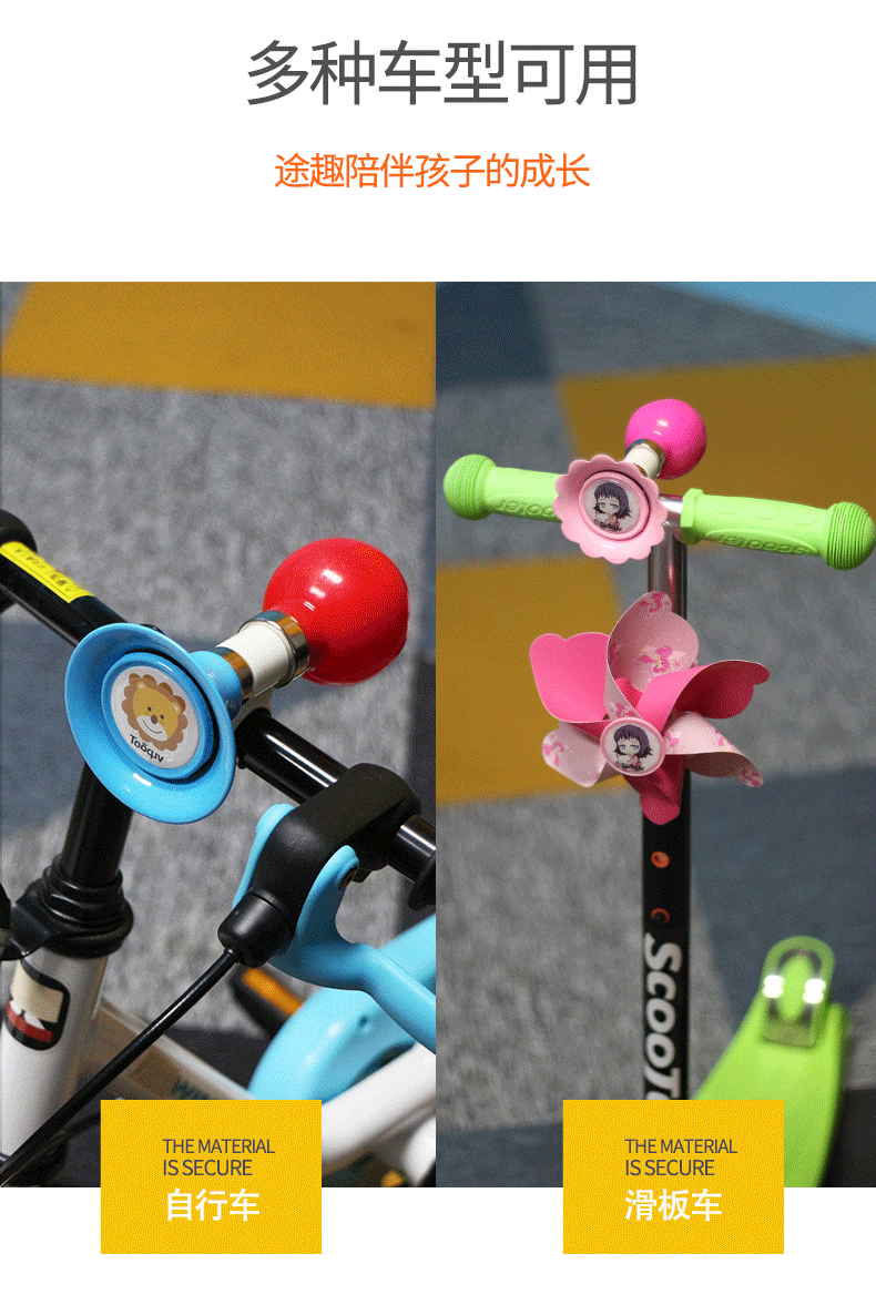儿童自行车气喇叭平衡车超响亮铃铛滑板车卡通气喇叭童车响铃配件