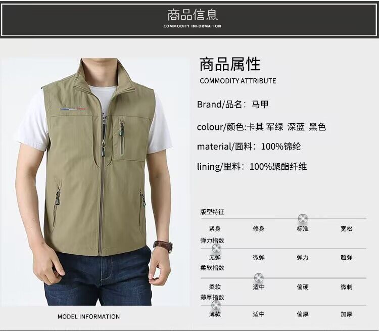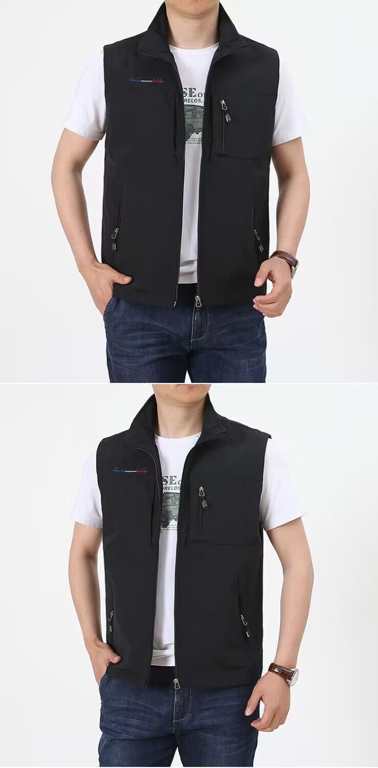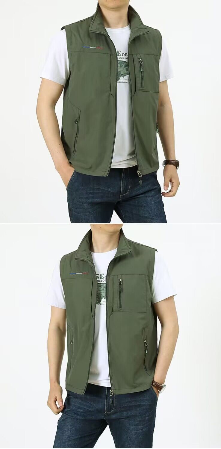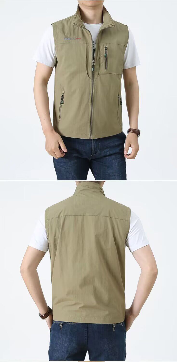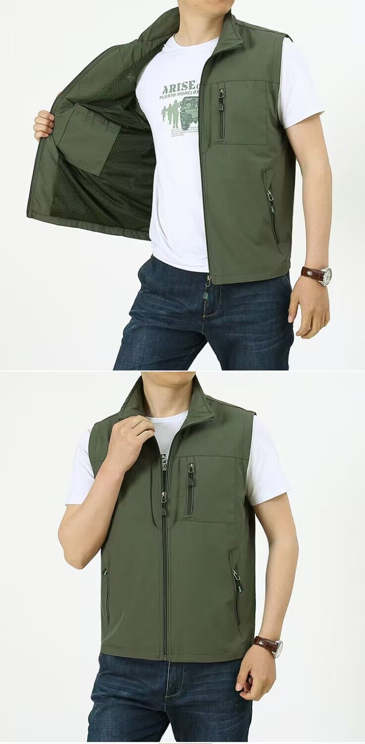男士马甲秋冬季加绒加厚户外摄影运动背心中老年工装坎肩休闲外套