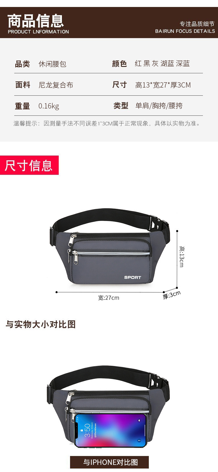 男士腰包防水加厚大容量摆摊生意手机收钱包户外休闲运动斜挎胸包