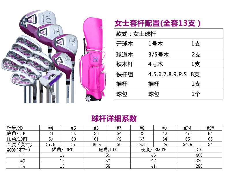 高尔夫球杆 Golf女士成人套杆初学练习杆 套练习球具套装配球包