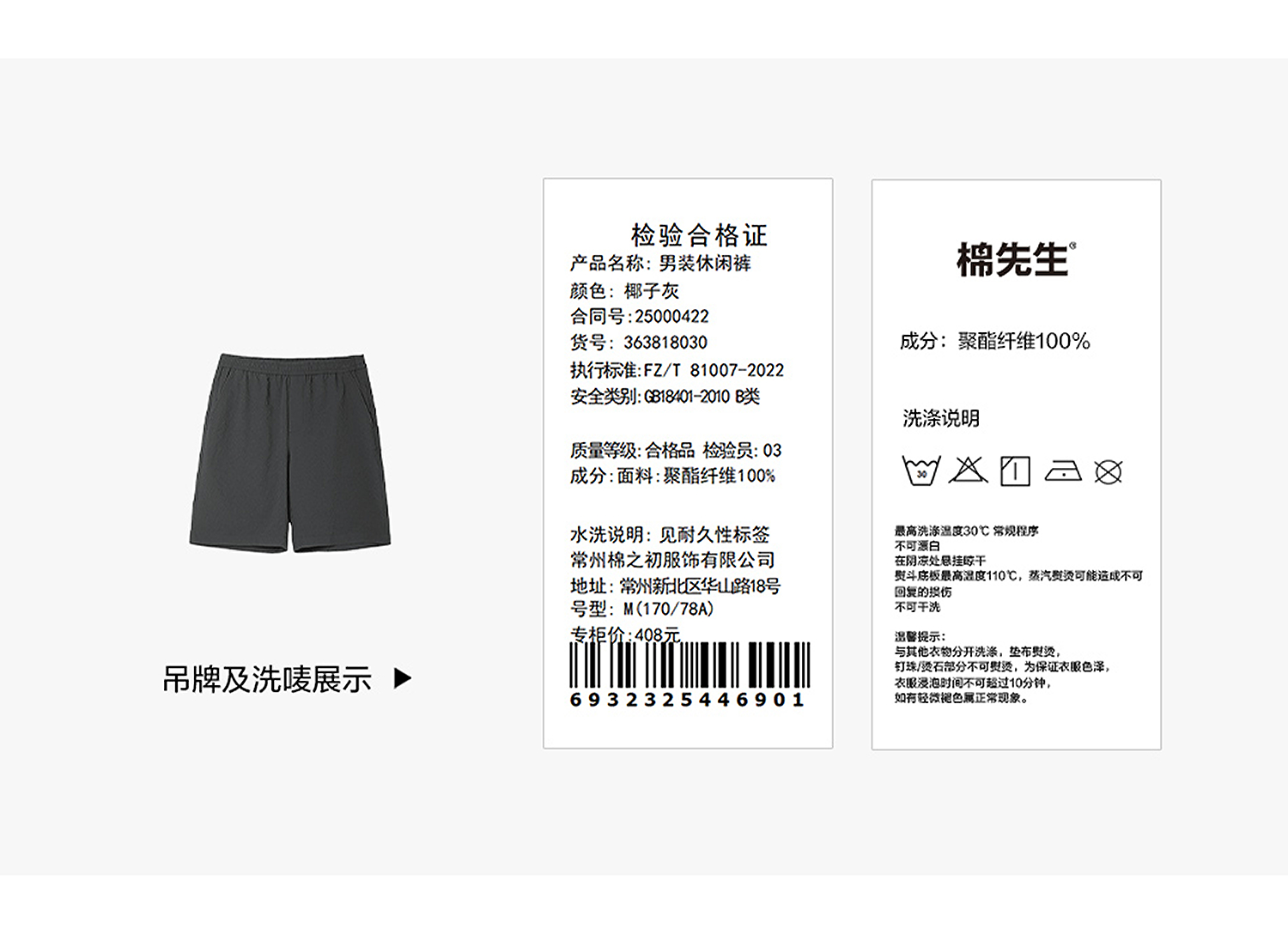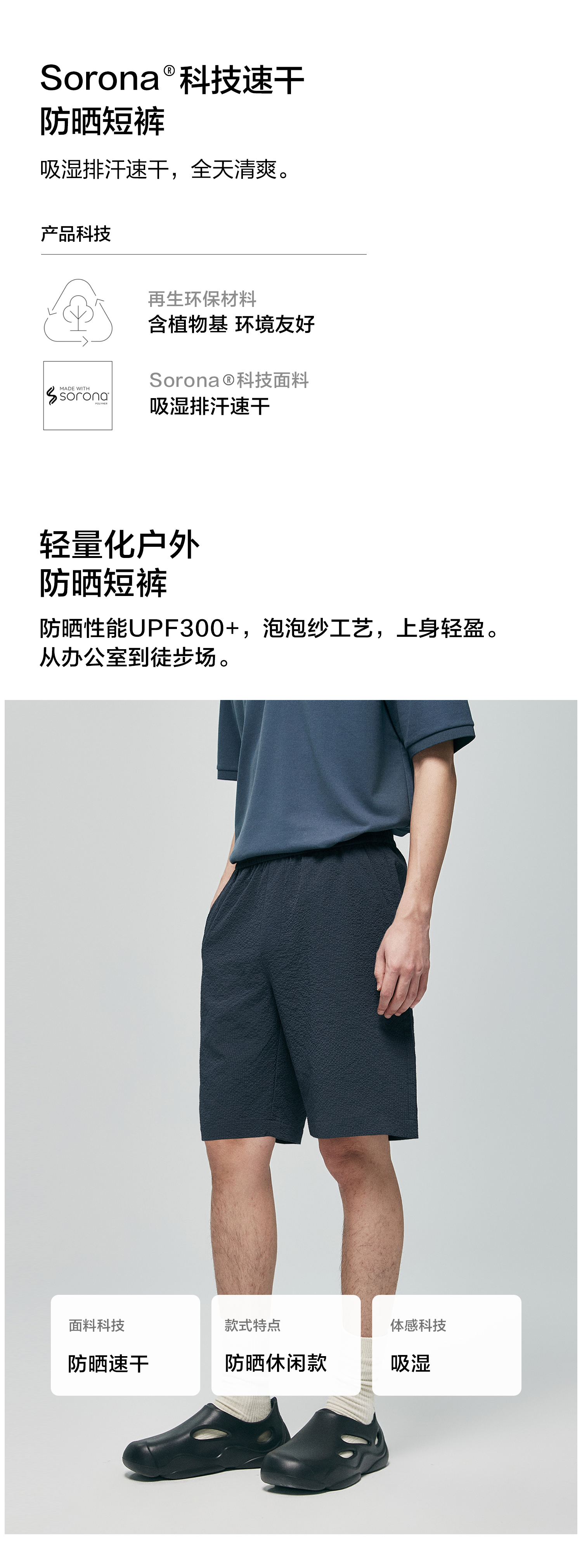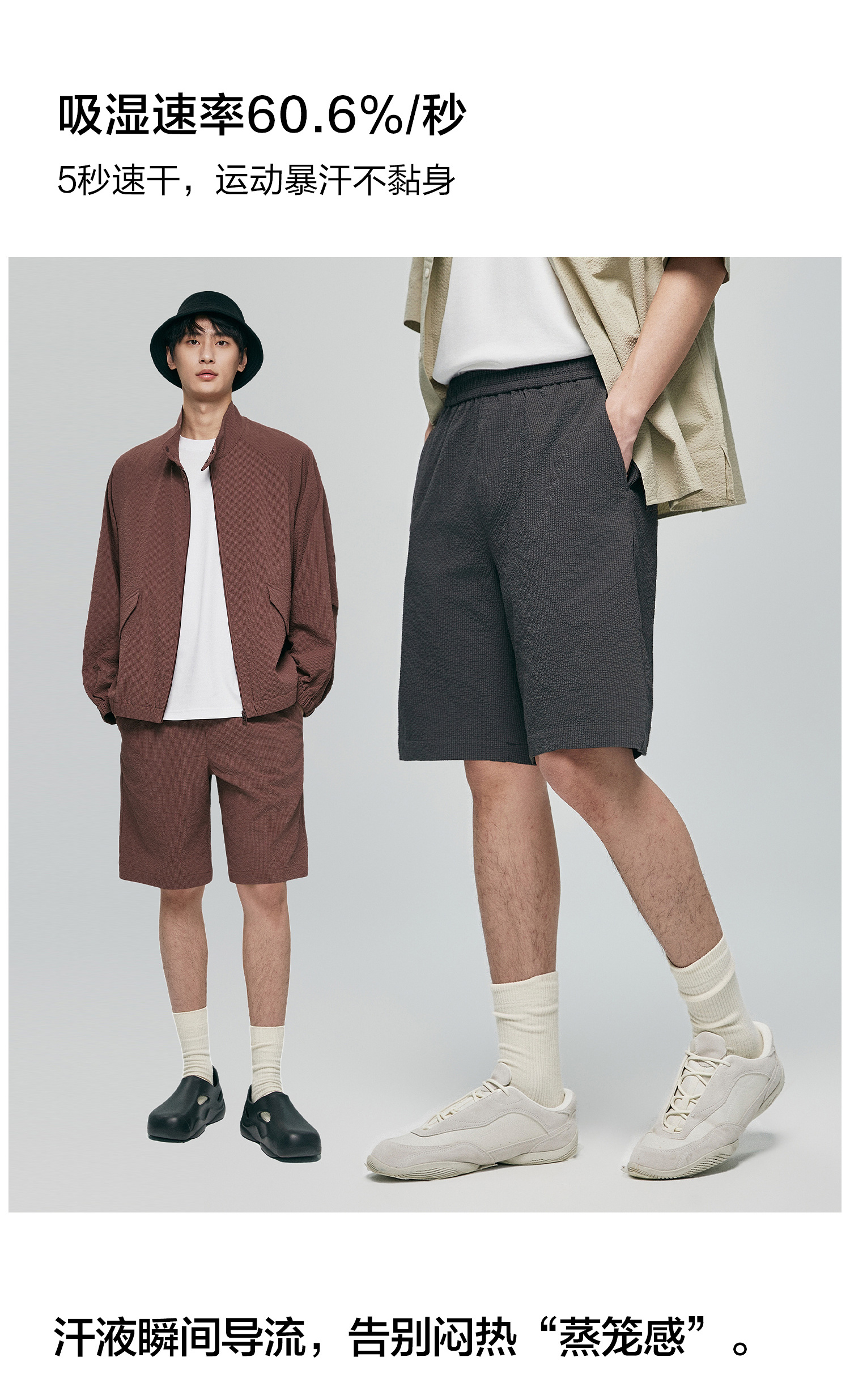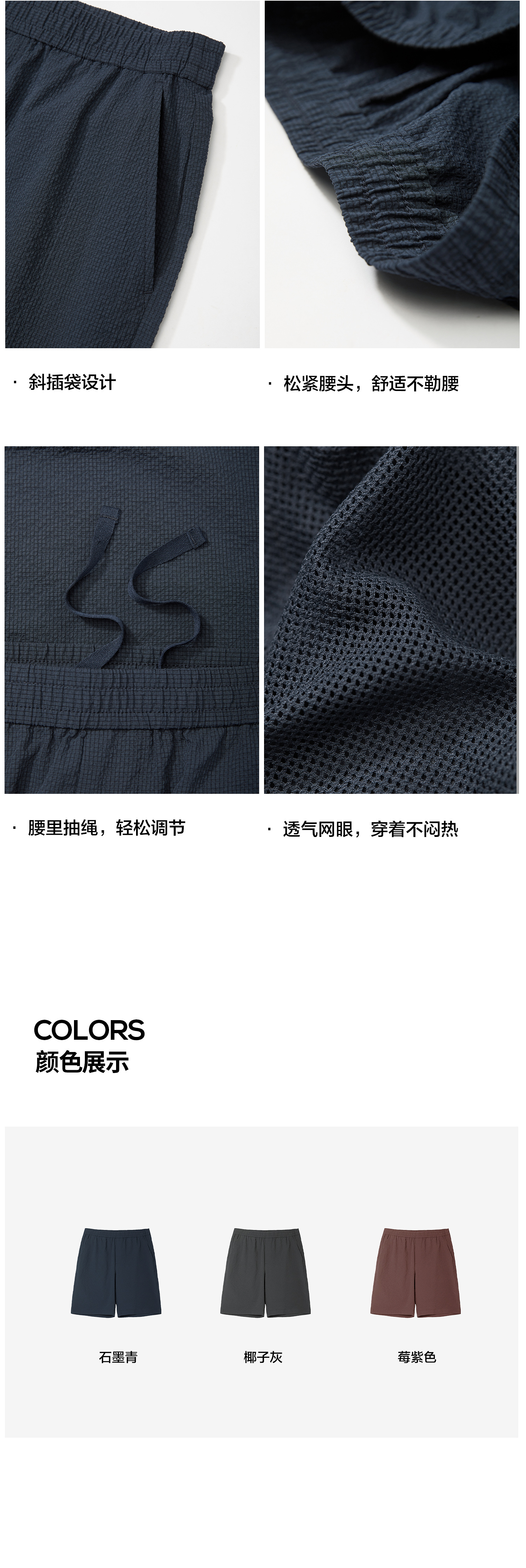 棉先生3系泡泡纱肌理感休闲短裤男 夏季薄款轻量户外速干五分裤